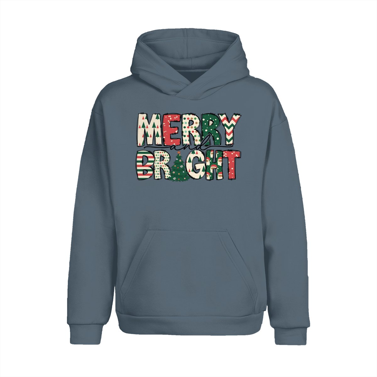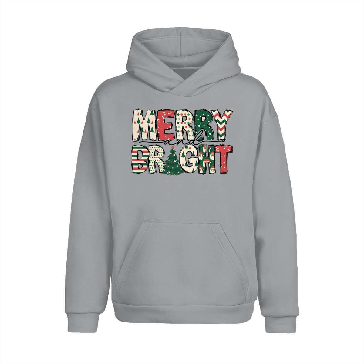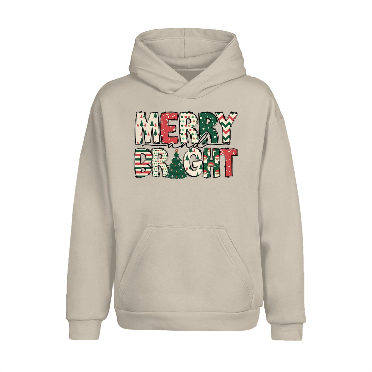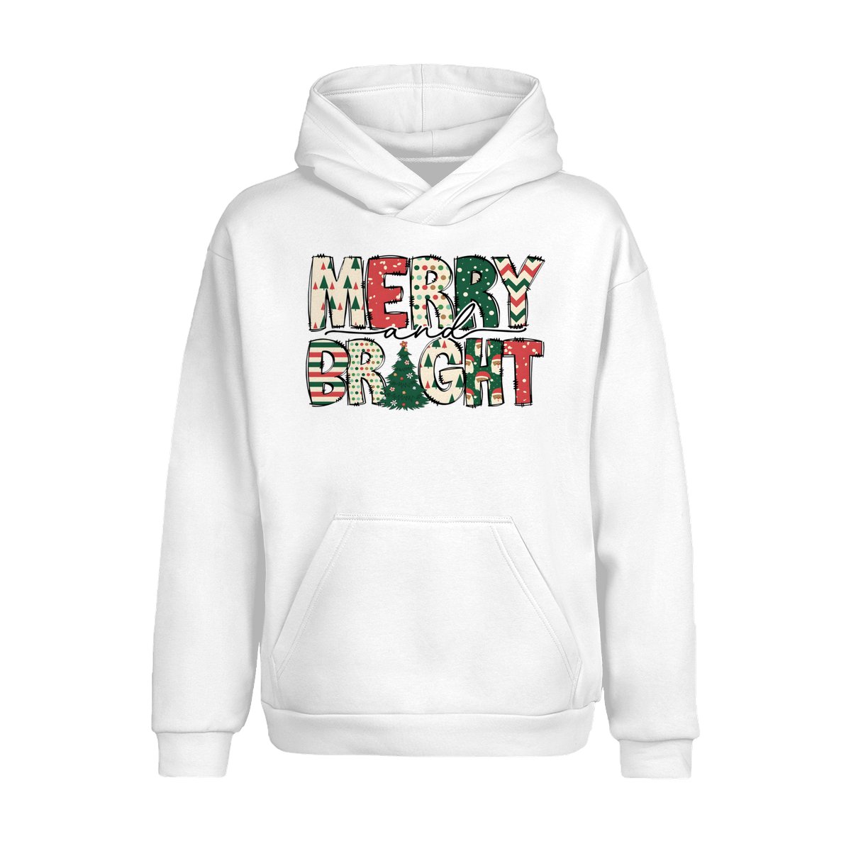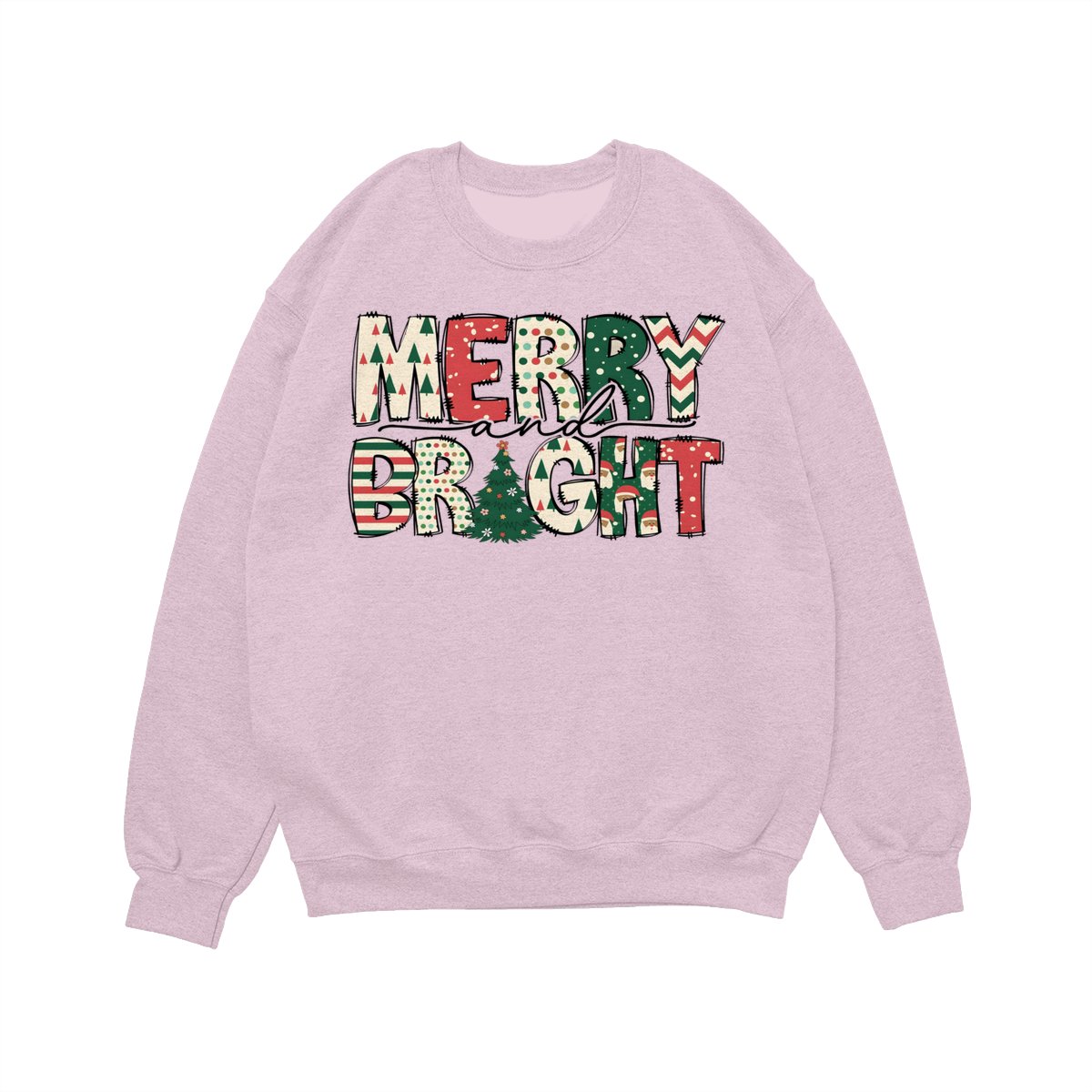Merry and Bright Christmas Sweatshirt, Trendy Christmas Season Graphic Design Unisex Sweatshirt for Women for Men Womenswear Menswear
