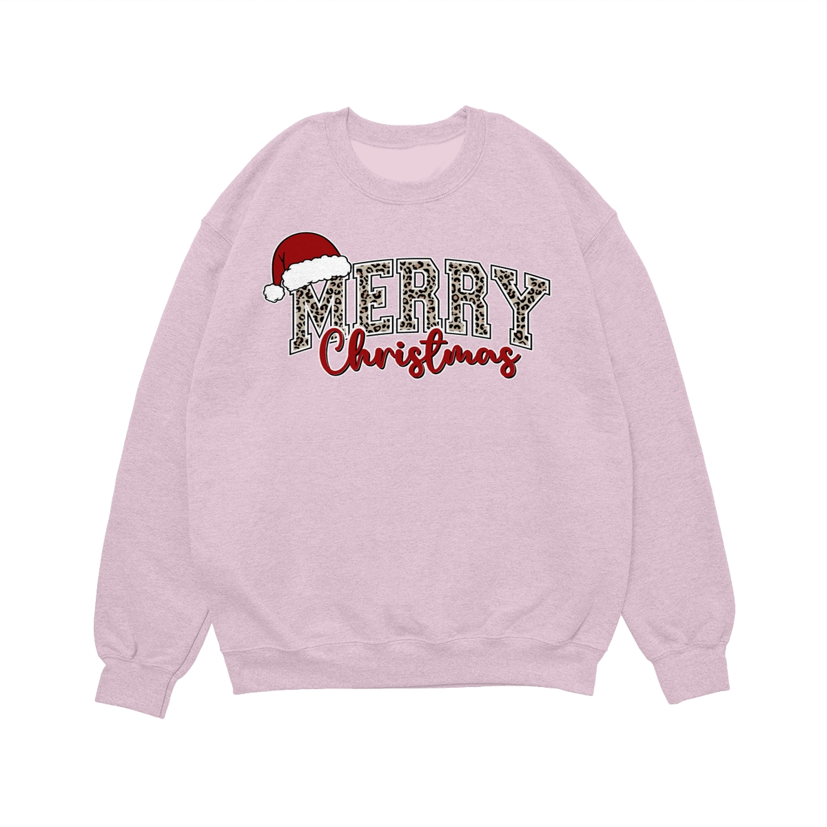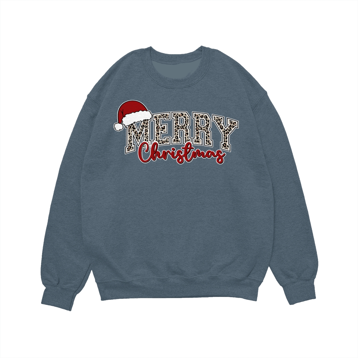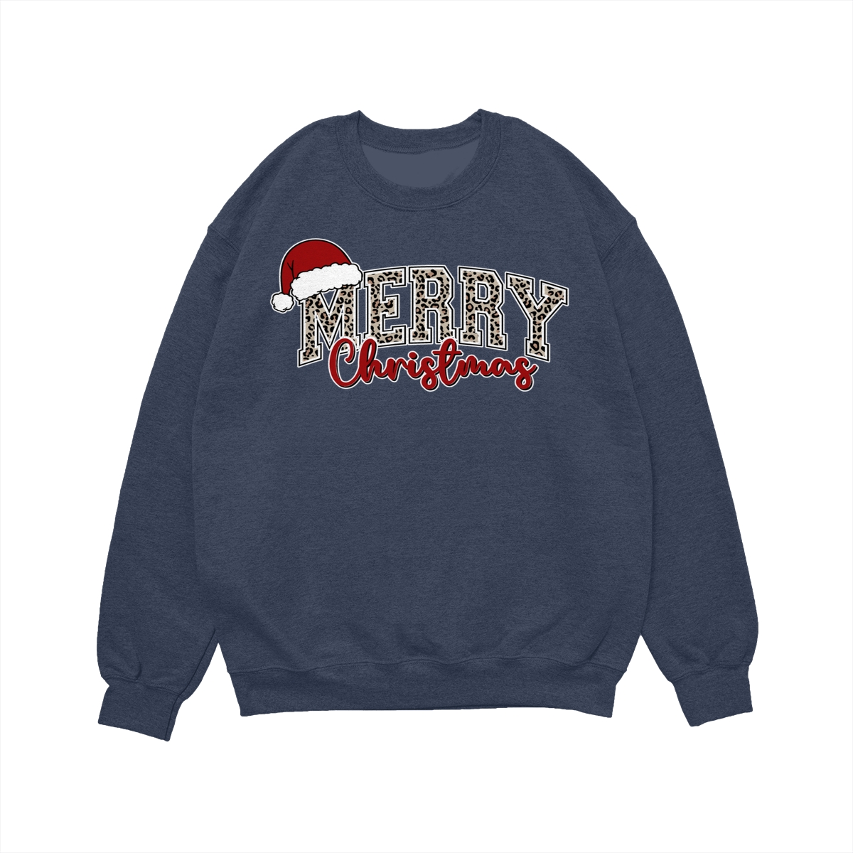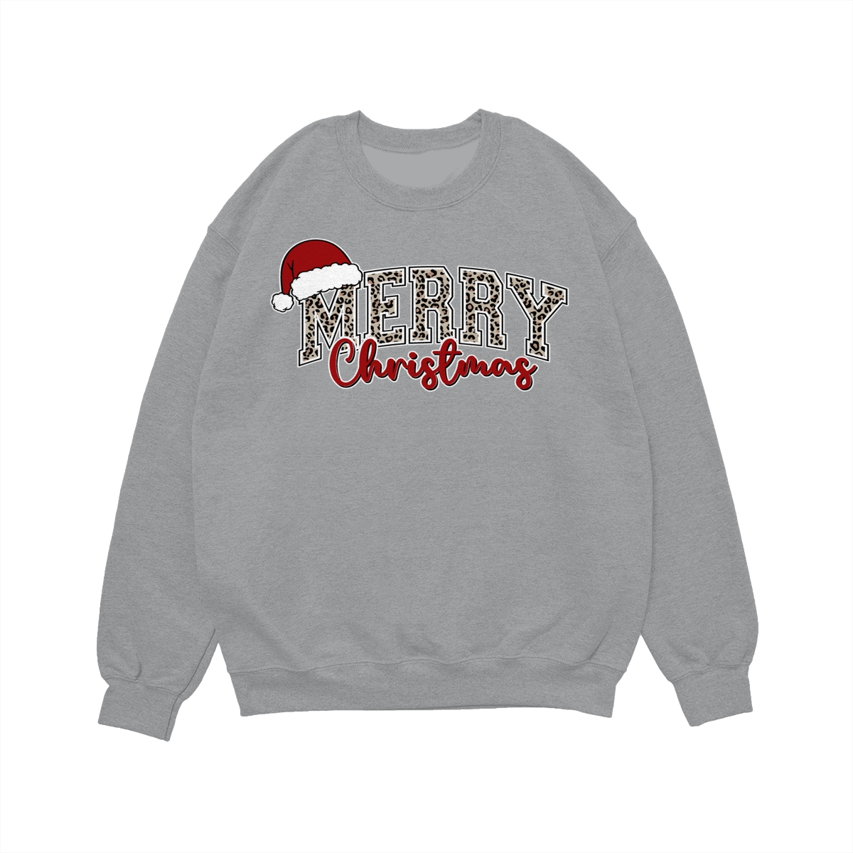 Merry Christmas Sweatshirt – Leopard Print Holiday Graphic Shirt with Santa Hat, Cozy Winter Pullover, Cute Xmas Outfit, Trending TikTok Unisex Streetwear Cotton Womenswear