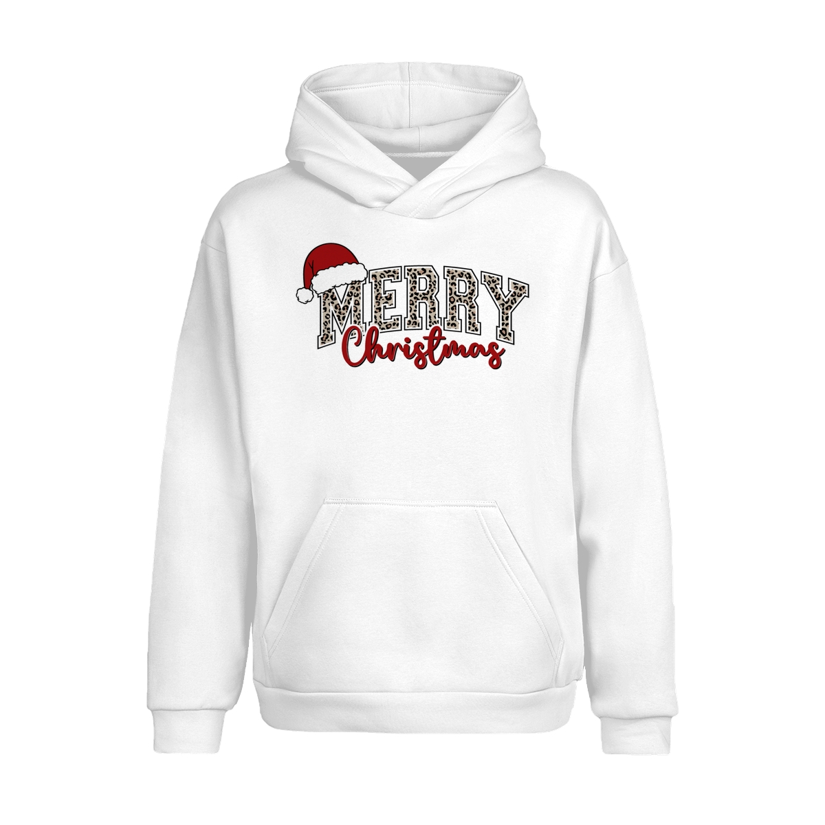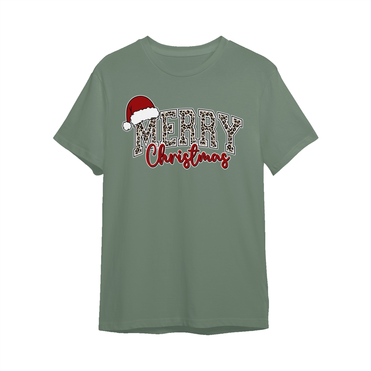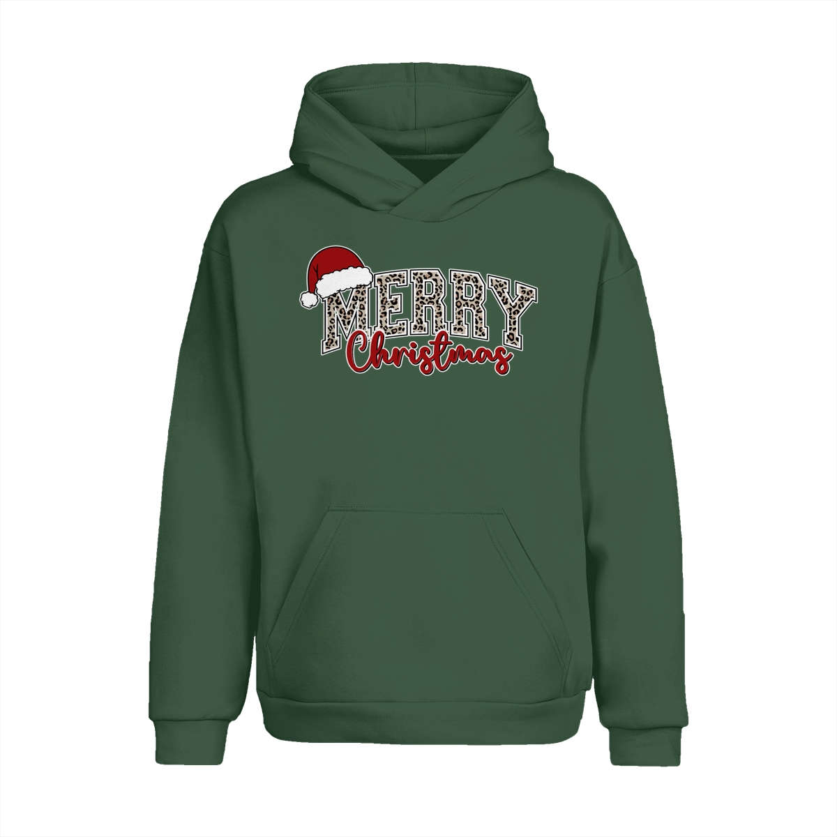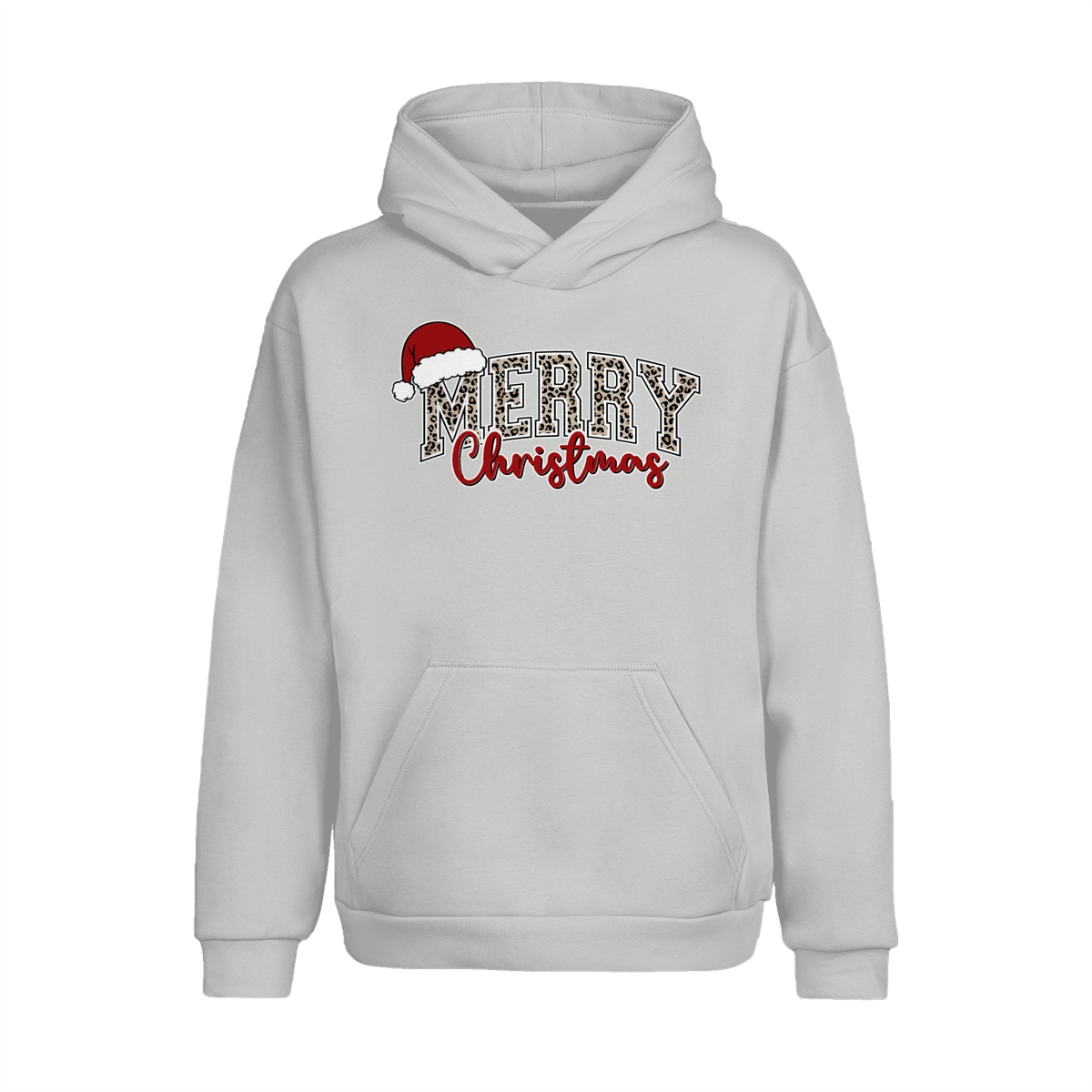 Merry Christmas Sweatshirt – Leopard Print Holiday Graphic Shirt with Santa Hat, Cozy Winter Pullover, Cute Xmas Outfit, Trending TikTok Unisex Streetwear Cotton Womenswear