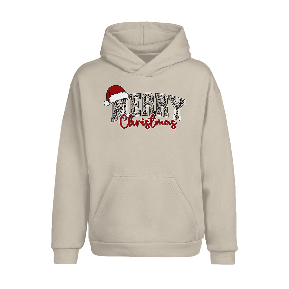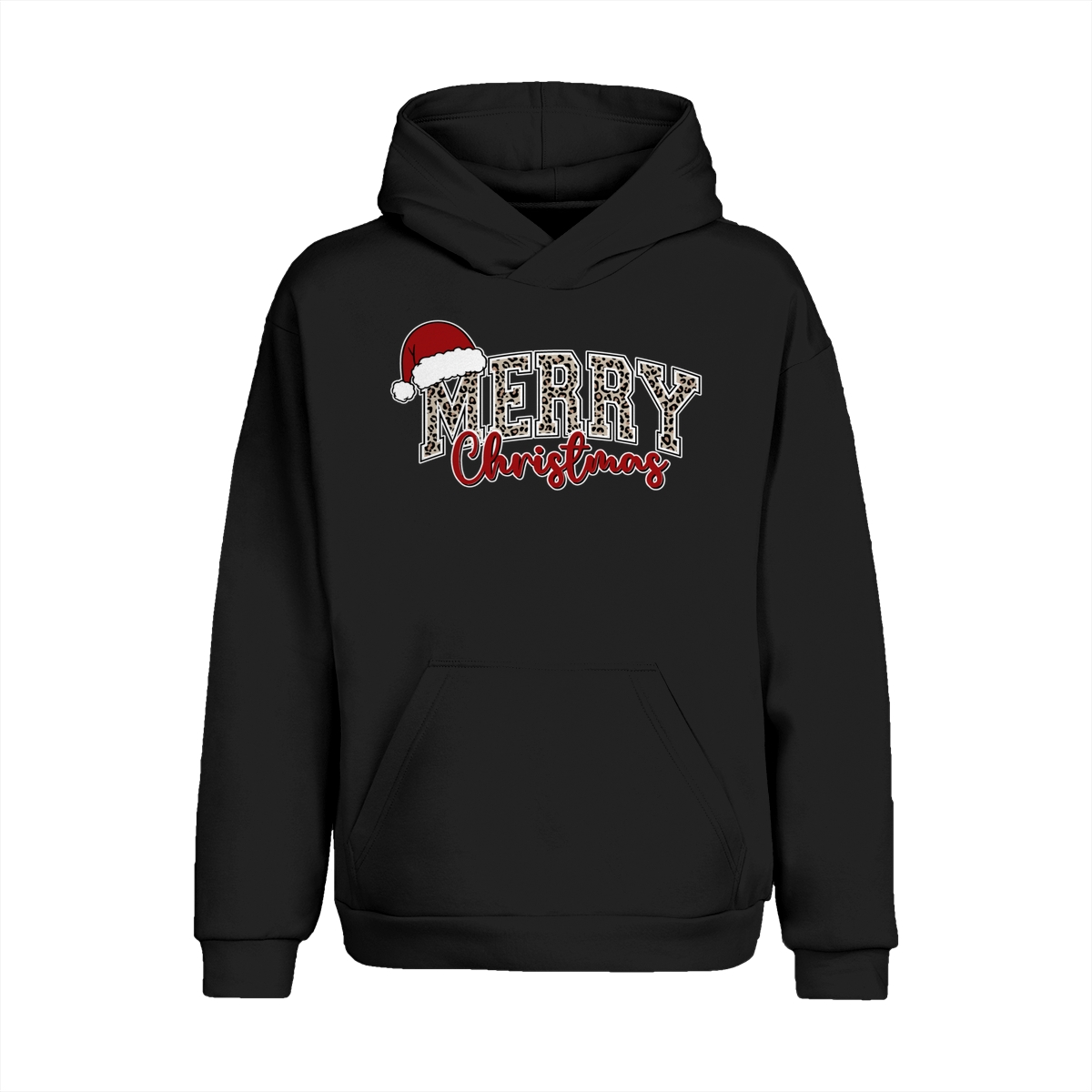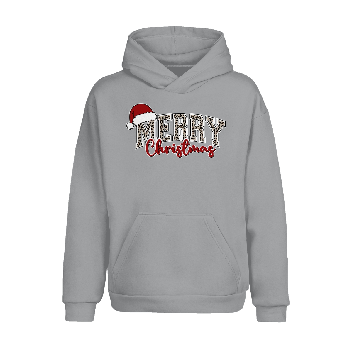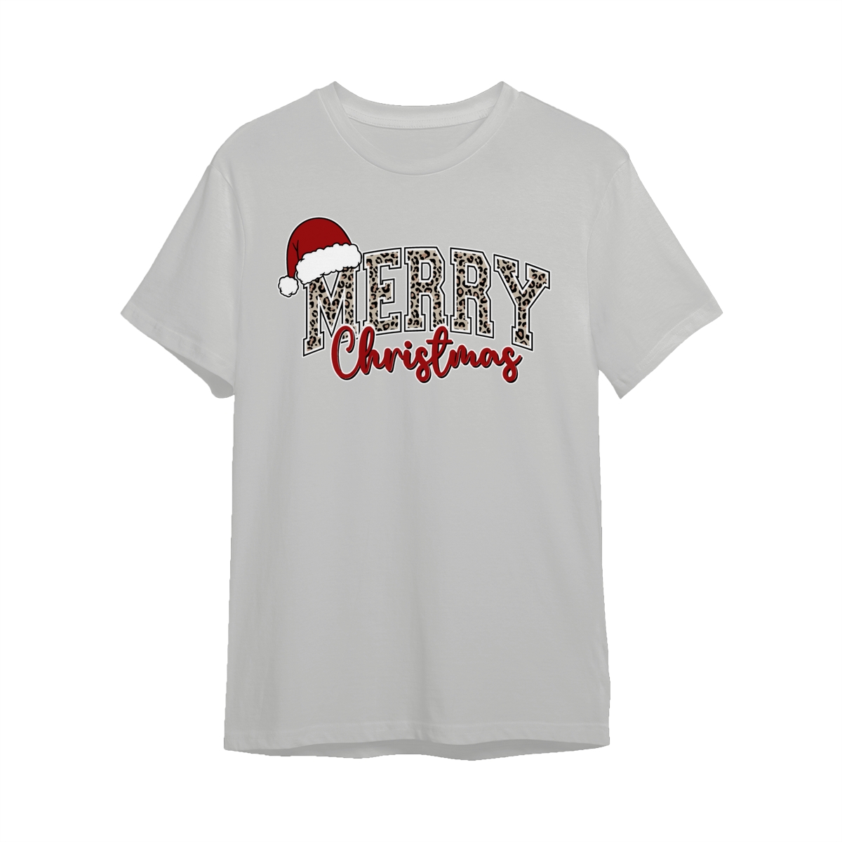 Merry Christmas Sweatshirt – Leopard Print Holiday Graphic Shirt with Santa Hat, Cozy Winter Pullover, Cute Xmas Outfit, Trending TikTok Unisex Streetwear Cotton Womenswear