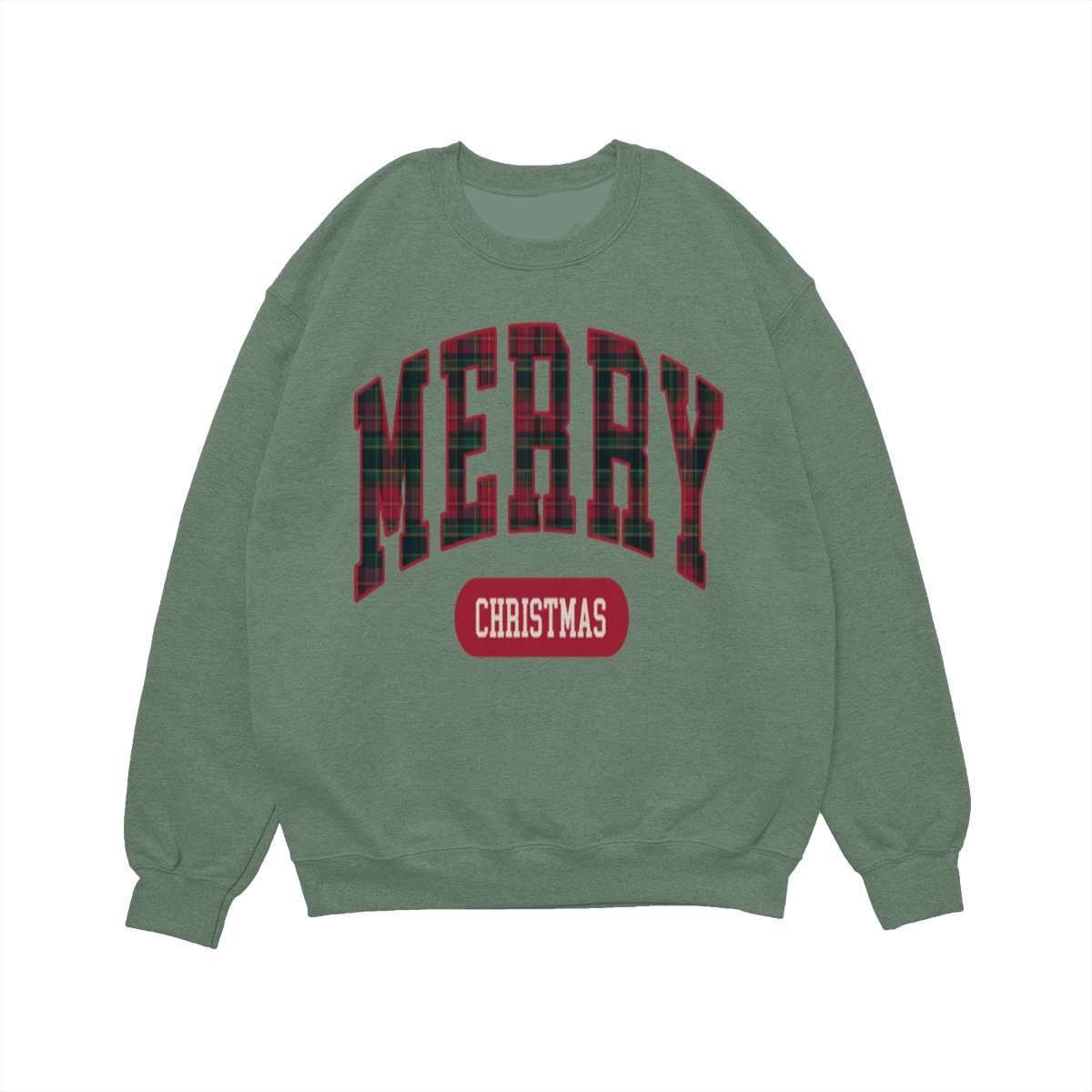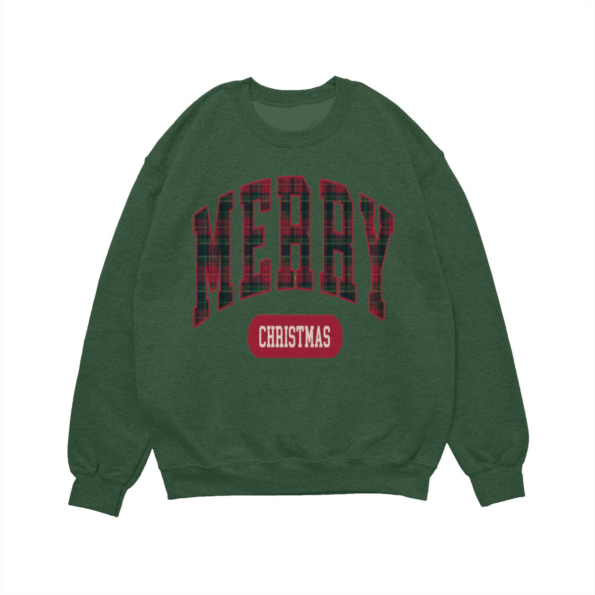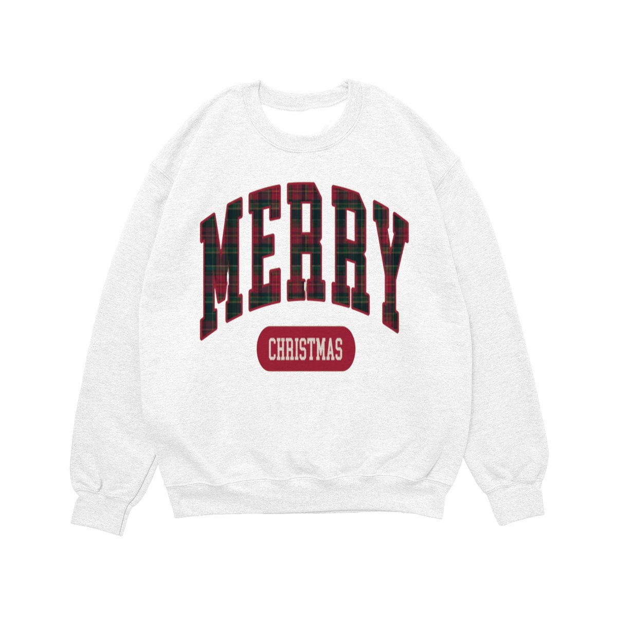Merry Christmas Sweatshirt Tartan Plaid Sweater Ralph Holiday Striped Xmas Pullover Cozy Holly Jolly Vintage Horse Girl Aesthetic Crewneck