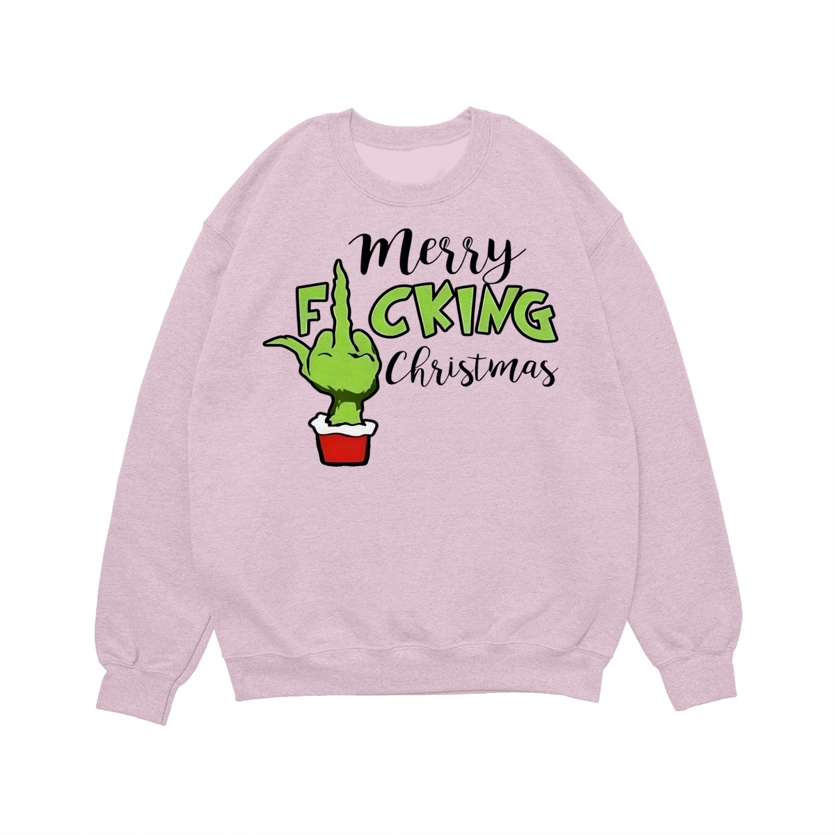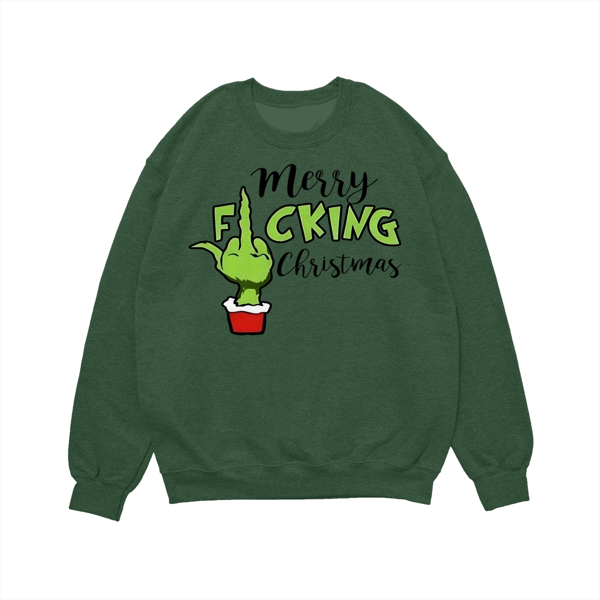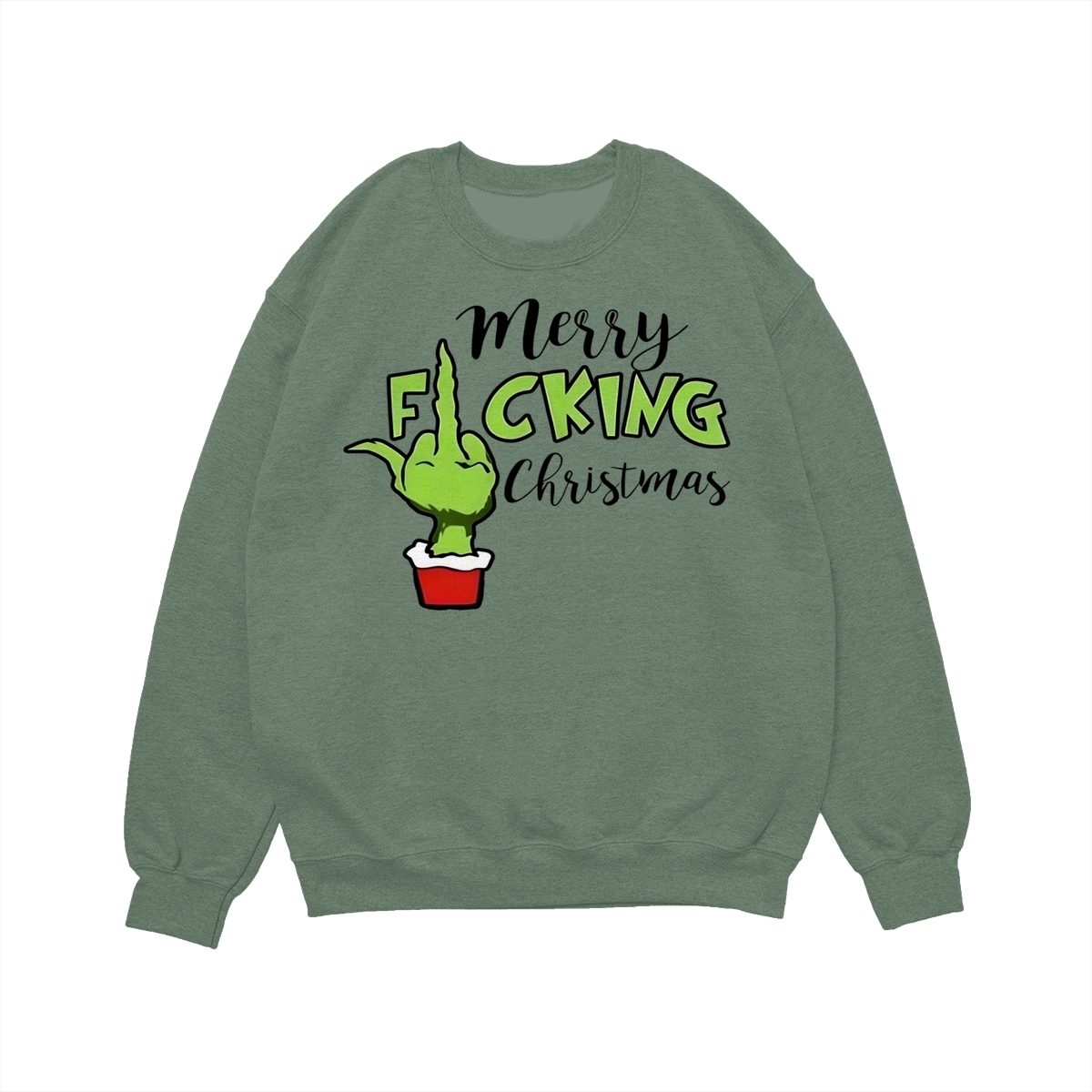 Merry Fucking Christmas Sweatshirt, Christmas Gift Idea, Xmas Grinch Funny Sweatshirt, Green Middle Finger Long Sleeve Tee Lightweight and comfortable