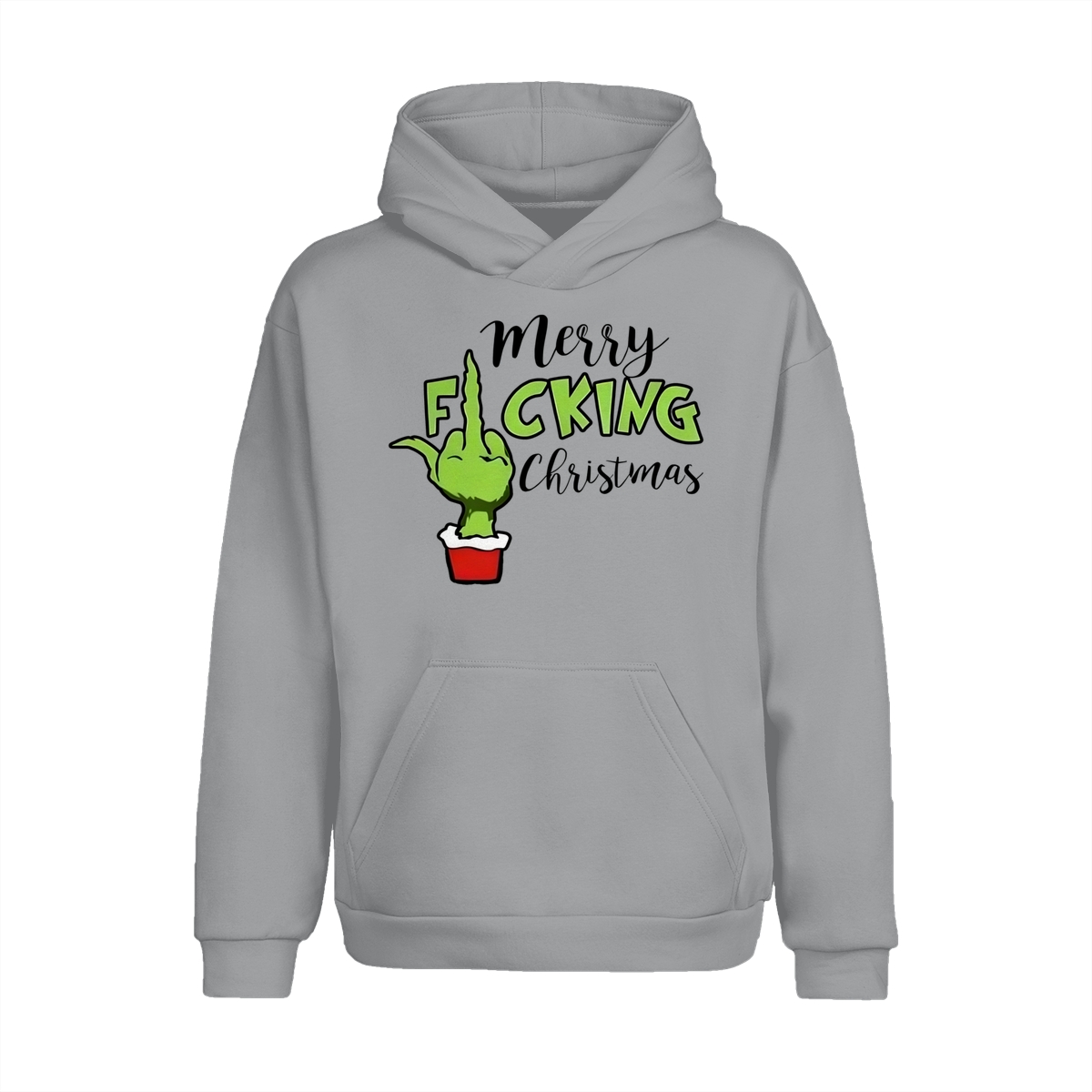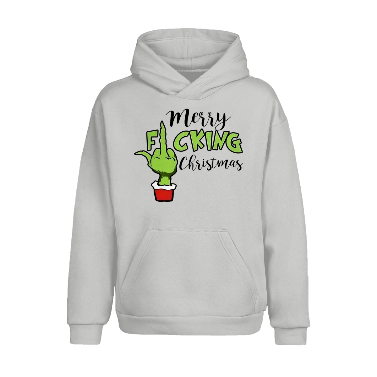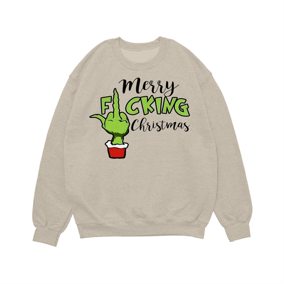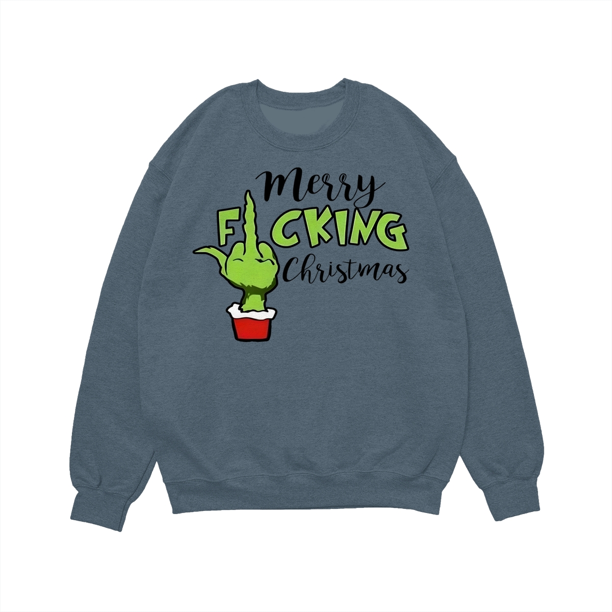 Merry Fucking Christmas Sweatshirt, Christmas Gift Idea, Xmas Grinch Funny Sweatshirt, Green Middle Finger Long Sleeve Tee Lightweight and comfortable
