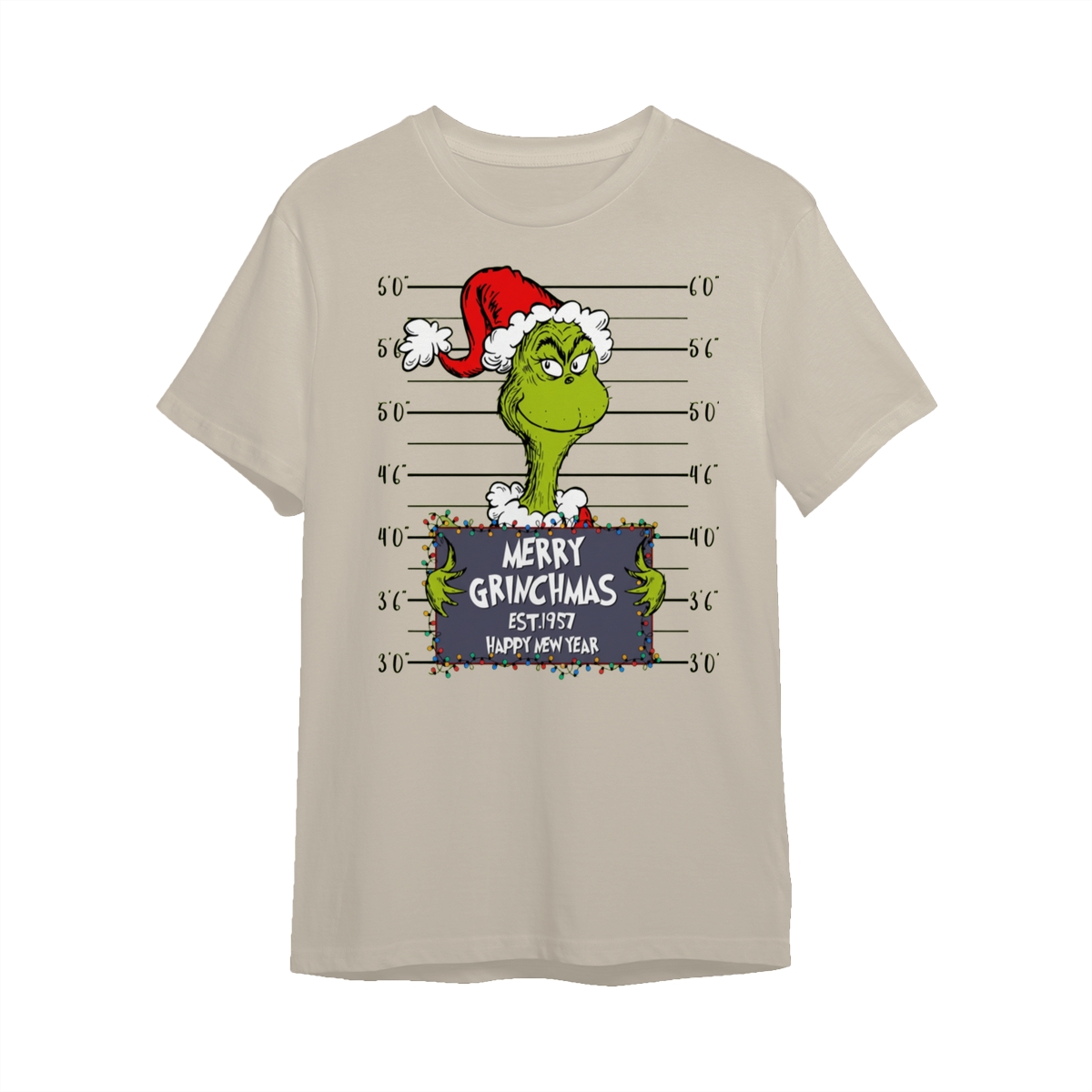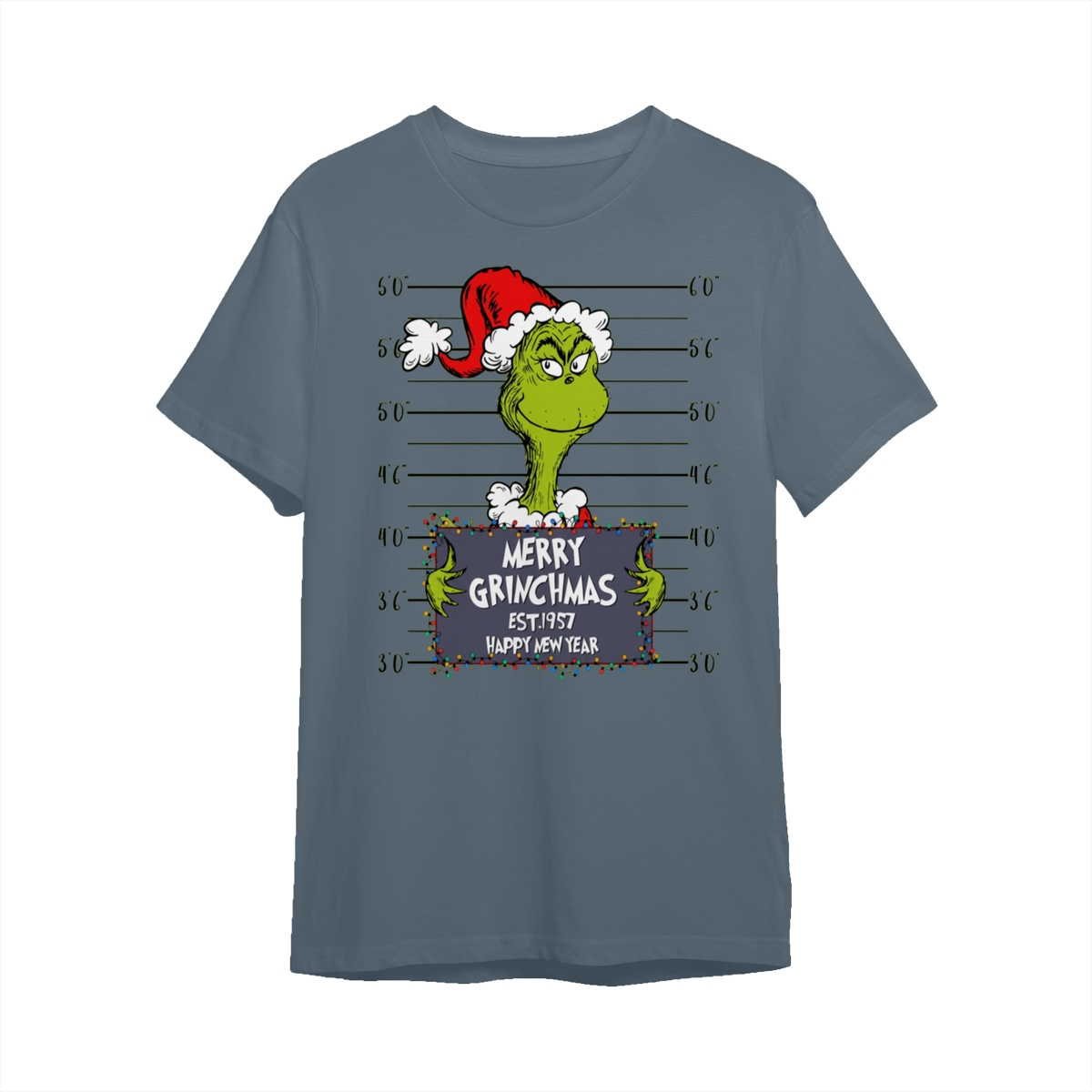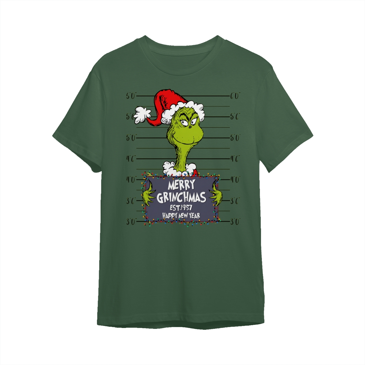 Merry Grinchmas EST 1957 Mugshort Shirt, Christmas Mugshot Shirt, Preppy Christmas Shirt Design, Trendy Holiday Character, Gift For Women, For Men