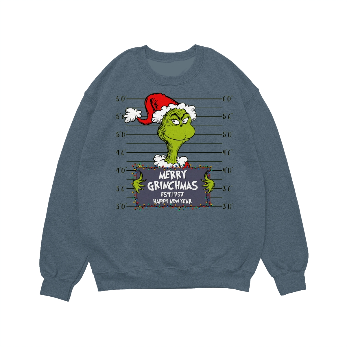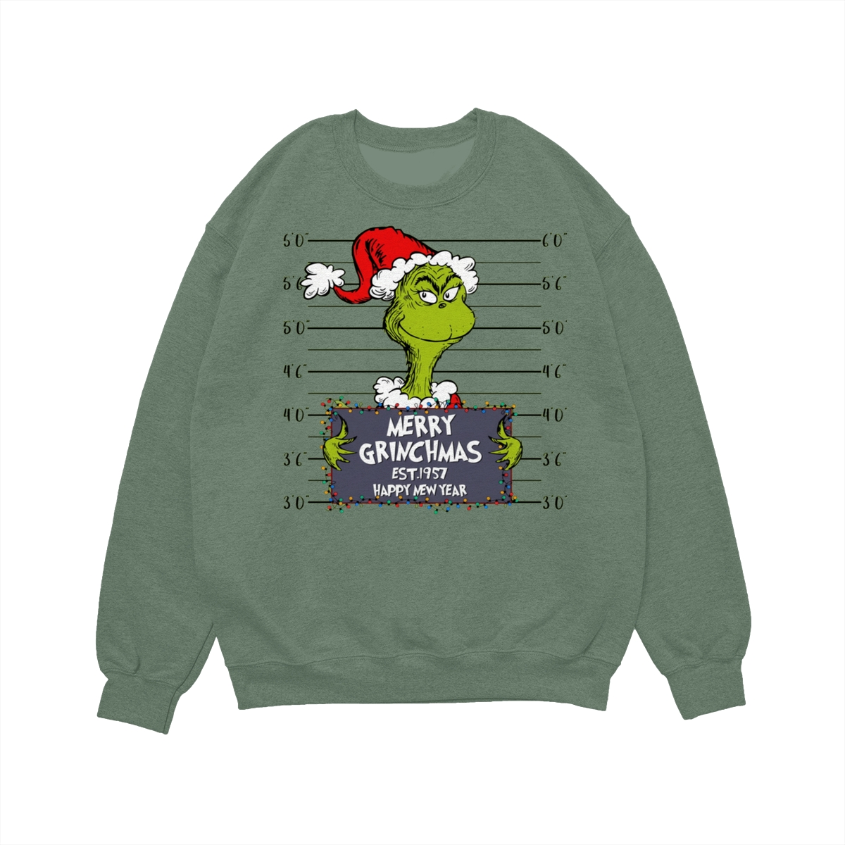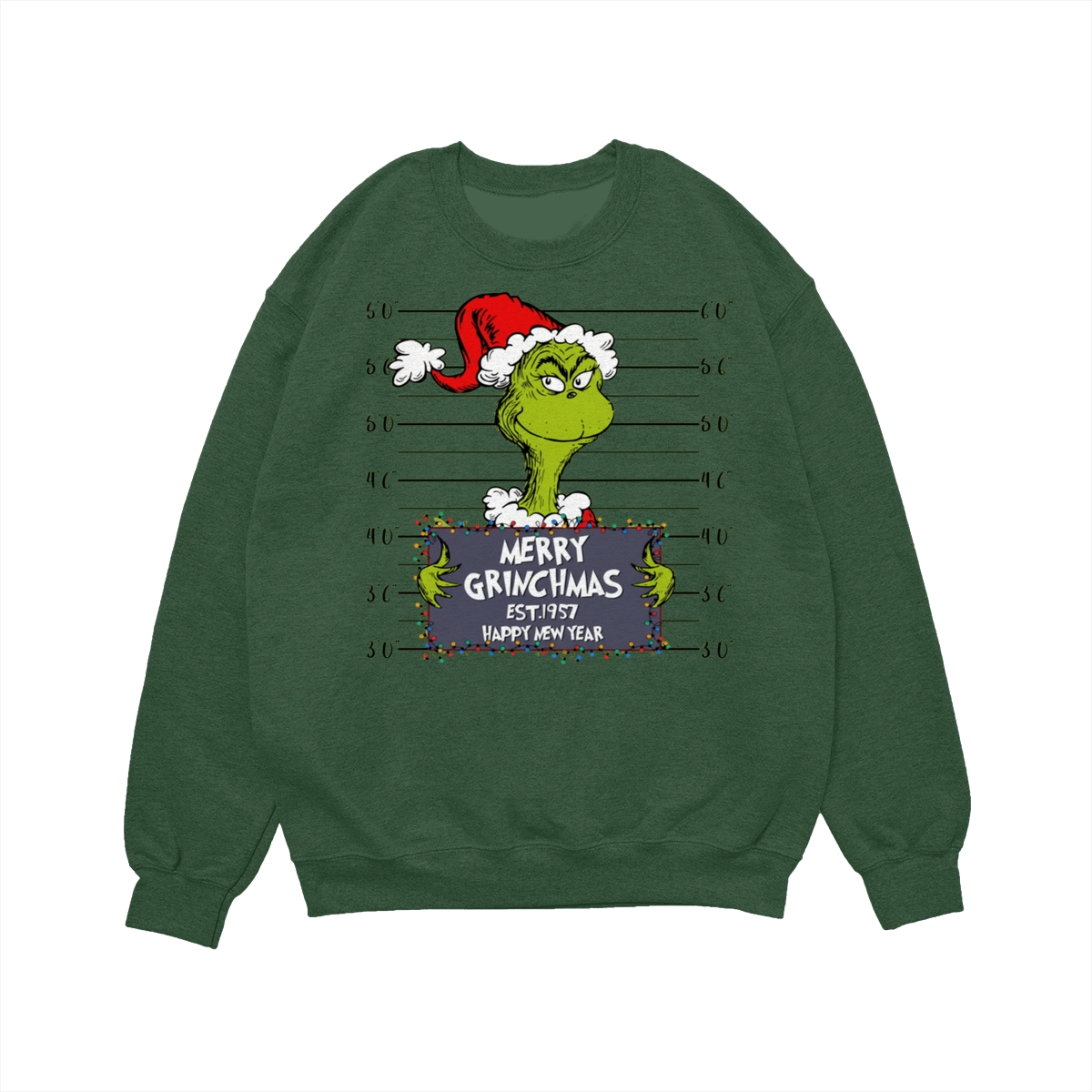 Merry Grinchmas EST 1957 Mugshort Shirt, Christmas Mugshot Shirt, Preppy Christmas Shirt Design, Trendy Holiday Character, Gift For Women, For Men