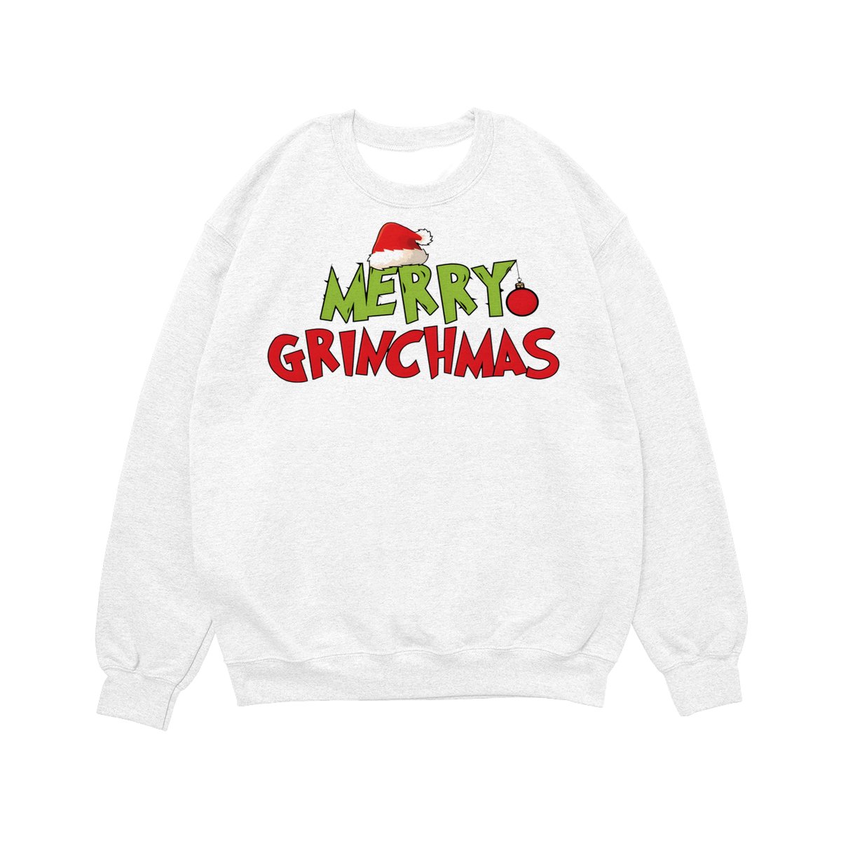 Merry Grinchmas Sweatshirt, Funny Christmas Crewneck, Holiday Grinch Shirt, Santa Hat Pullover, Xmas Sweater, Cozy Winter Gift for Her & Him