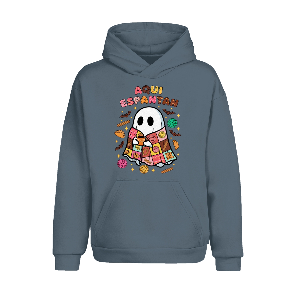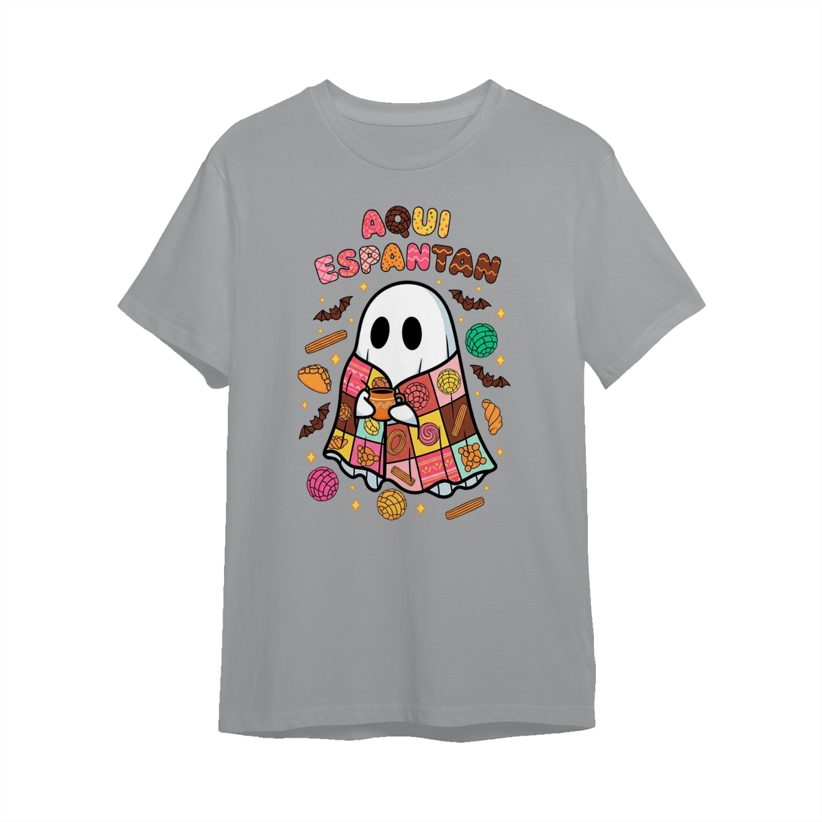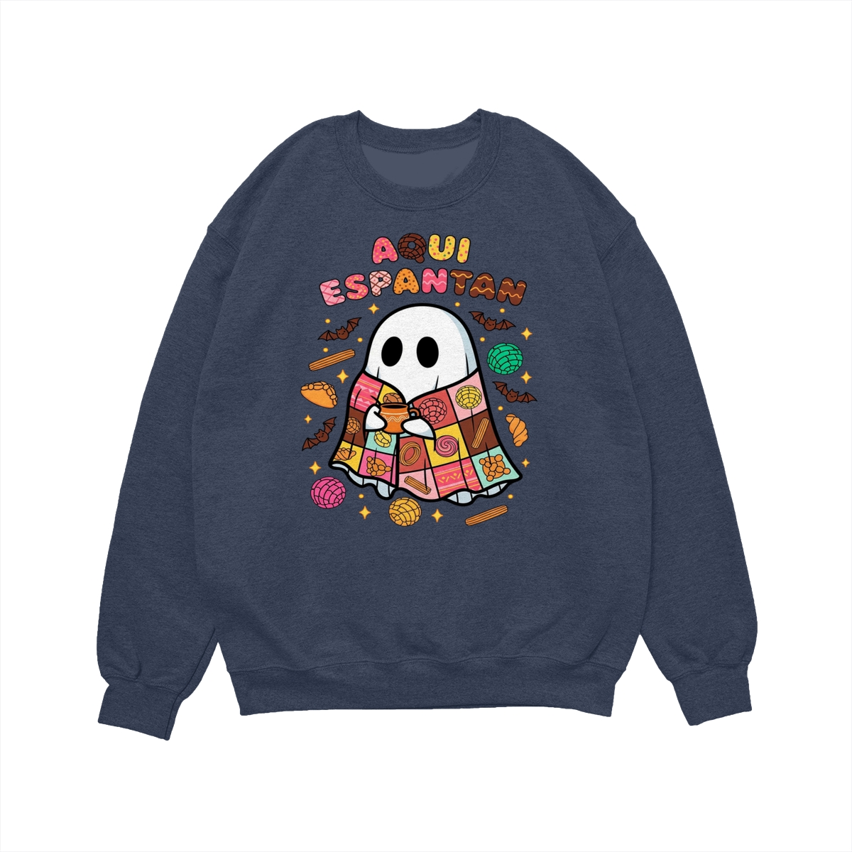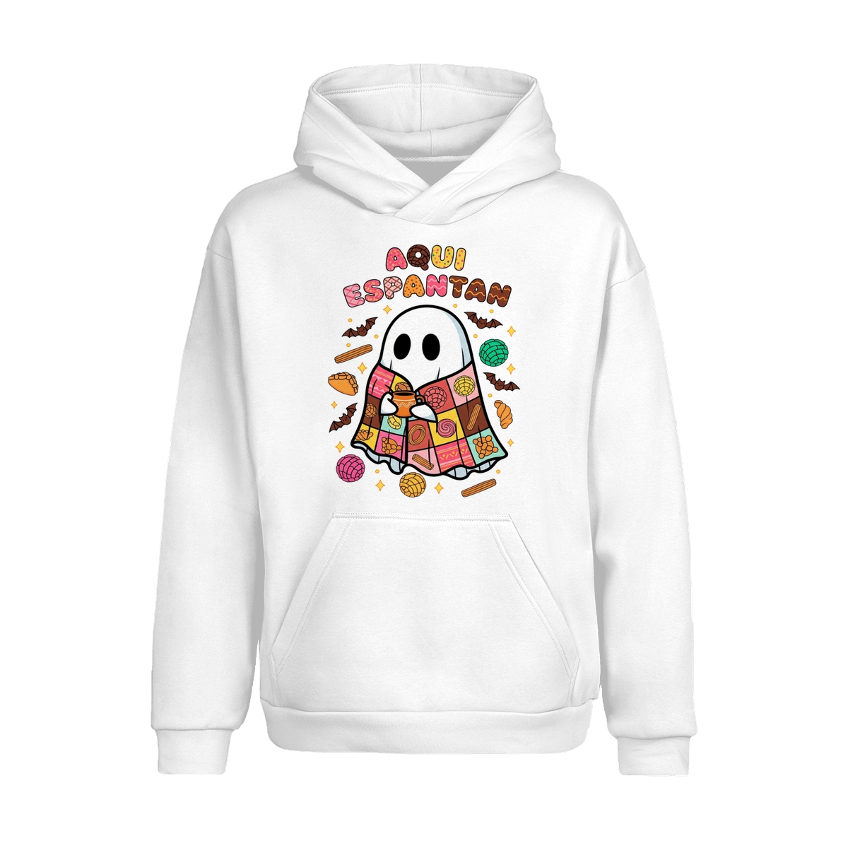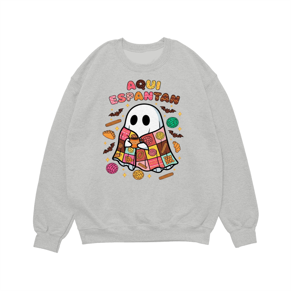 Mexican Patchwork Ghost Aqui Espantan Tshirt, Mexican Halloween, Spanish Halloween Shirt, Halloween Gift, Spooky Latina Sweater, Spooky Conchas Hoodie