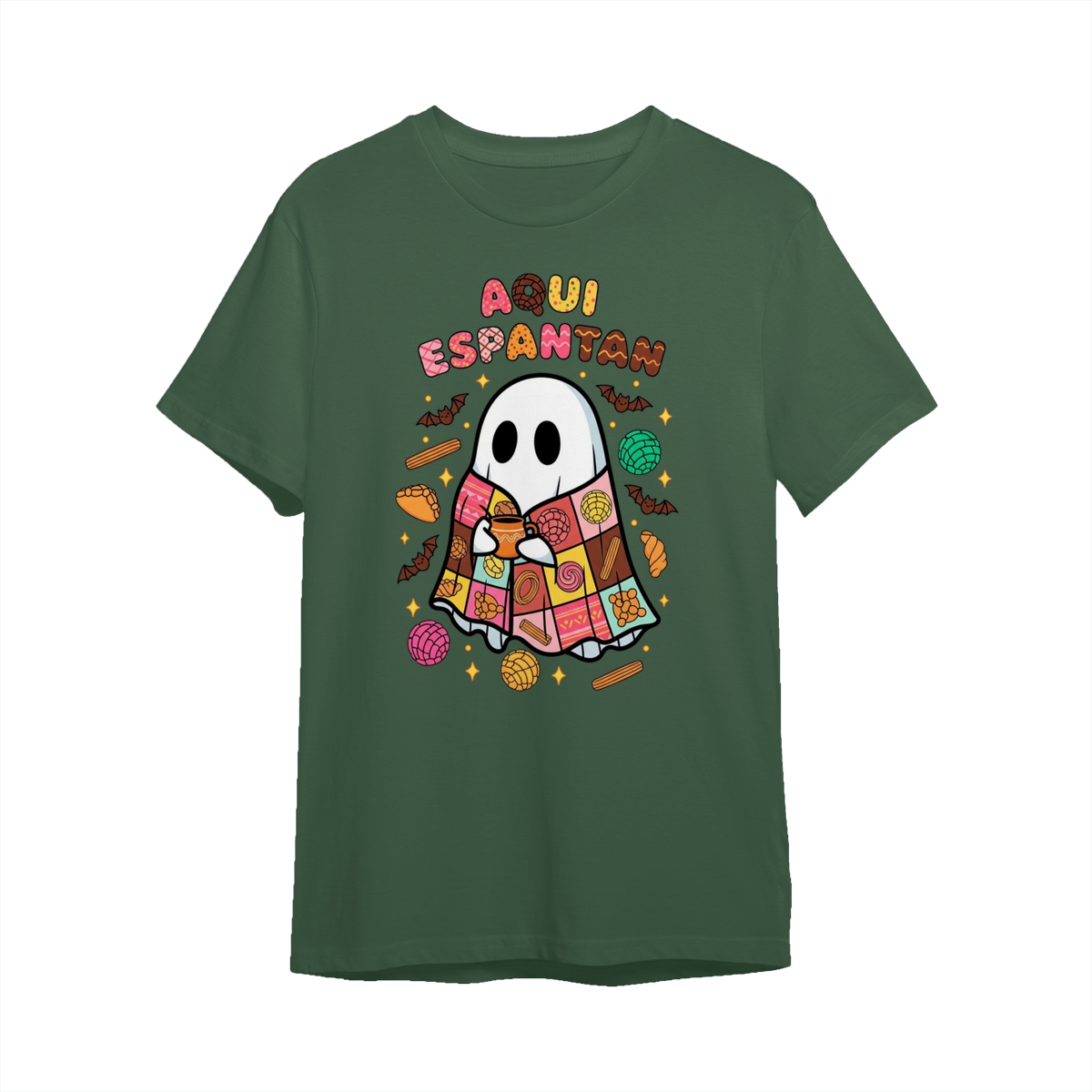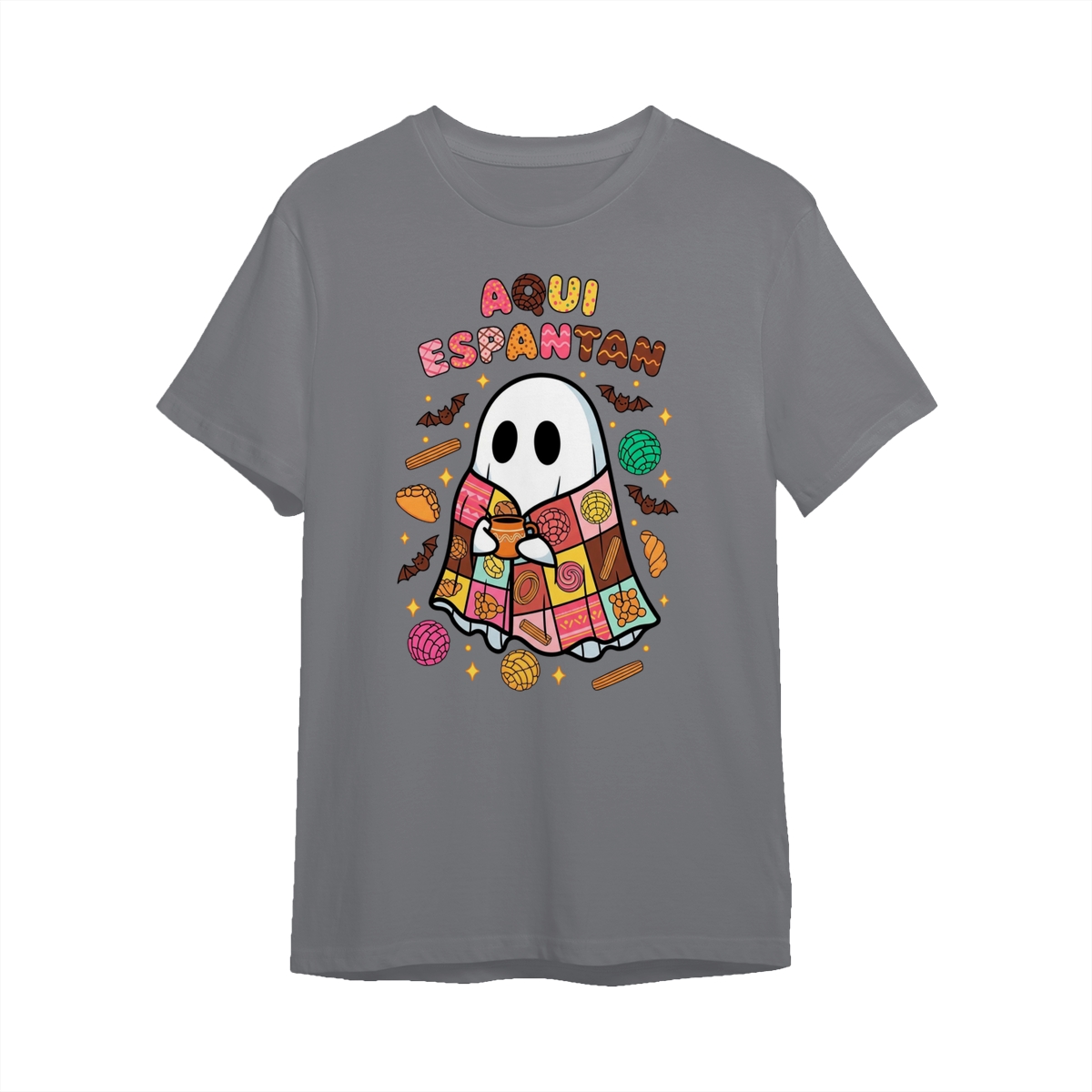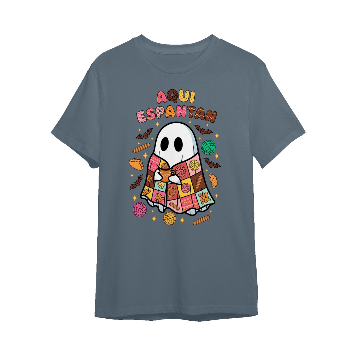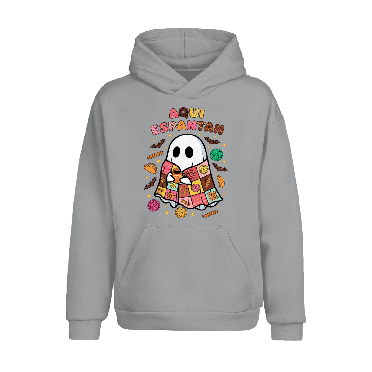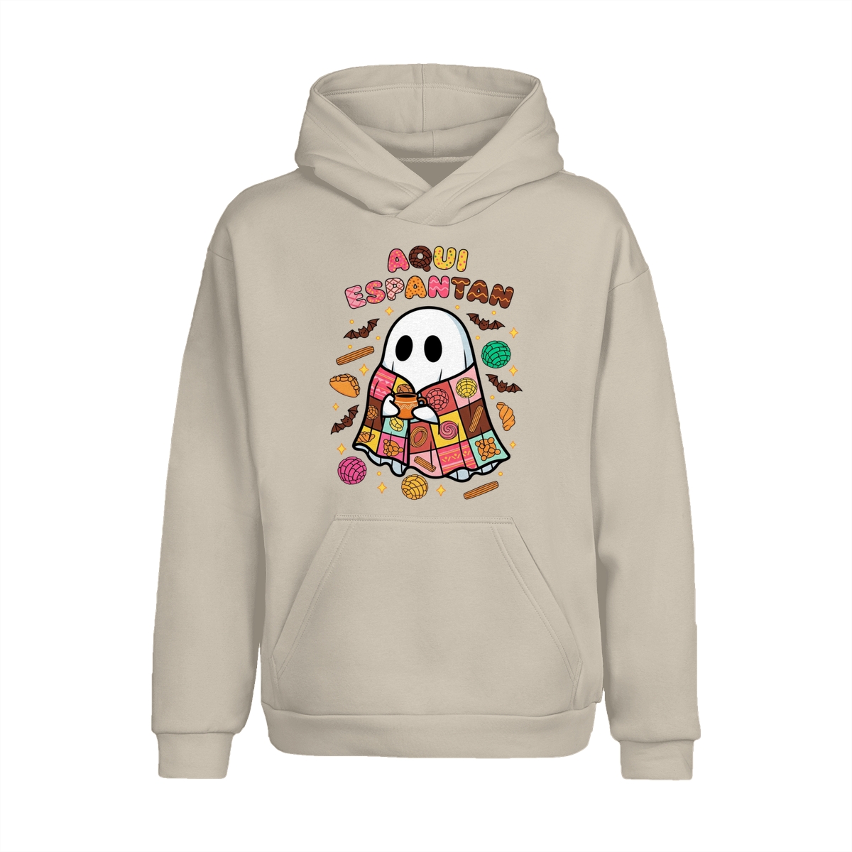 Mexican Patchwork Ghost Aqui Espantan Tshirt, Mexican Halloween, Spanish Halloween Shirt, Halloween Gift, Spooky Latina Sweater, Spooky Conchas Hoodie