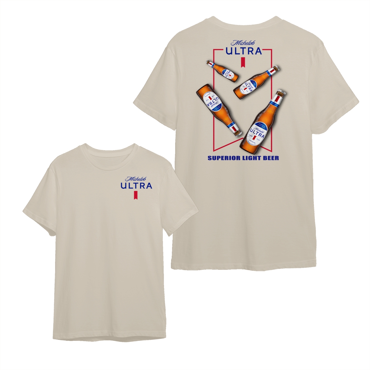 Michelob Ultra 2 Sided T-Shirt, Superior Light Beer T-Shirt, Alcoholic Beverage T-Shirt, Funny Shirts, Men’s Graphic Round Neck T-shirt