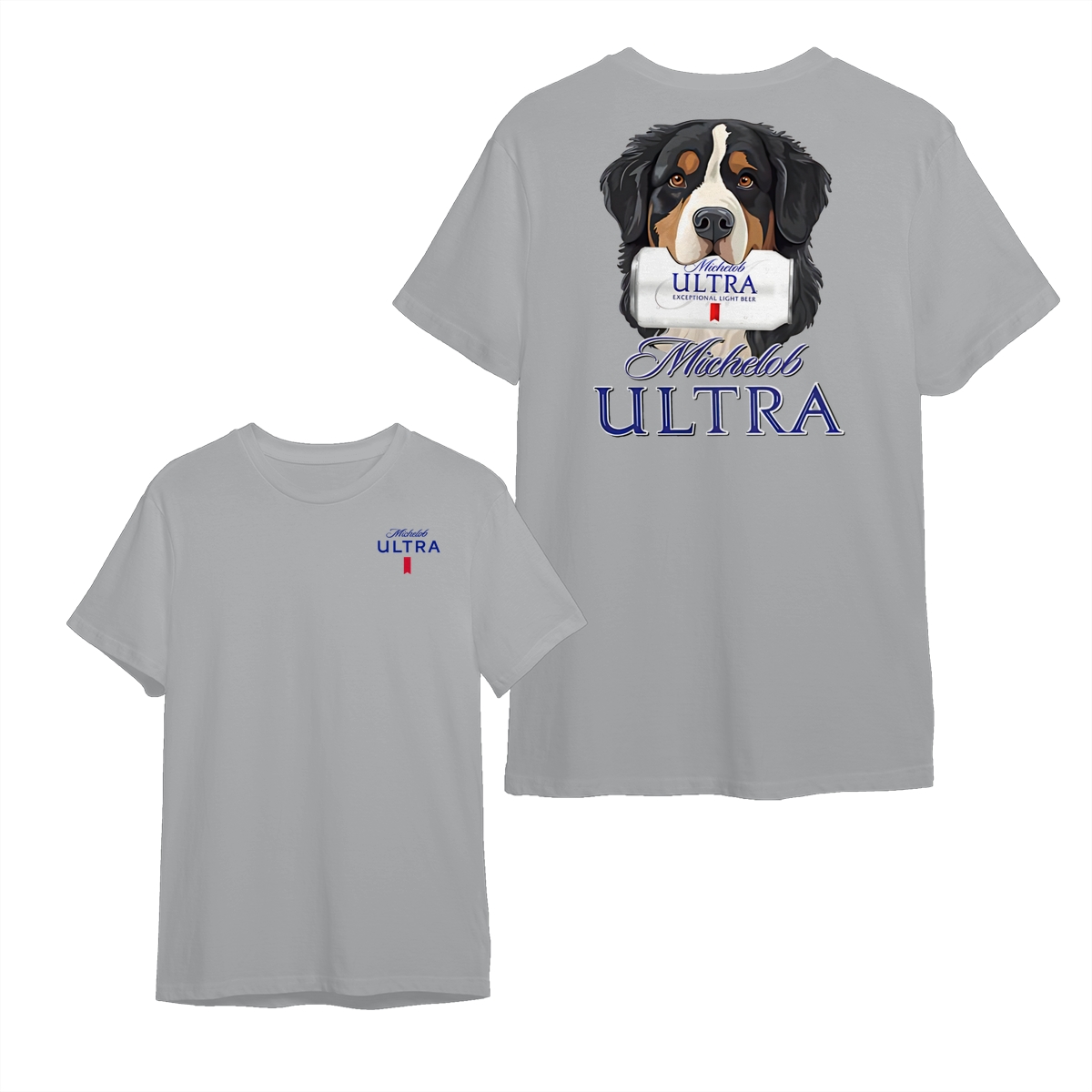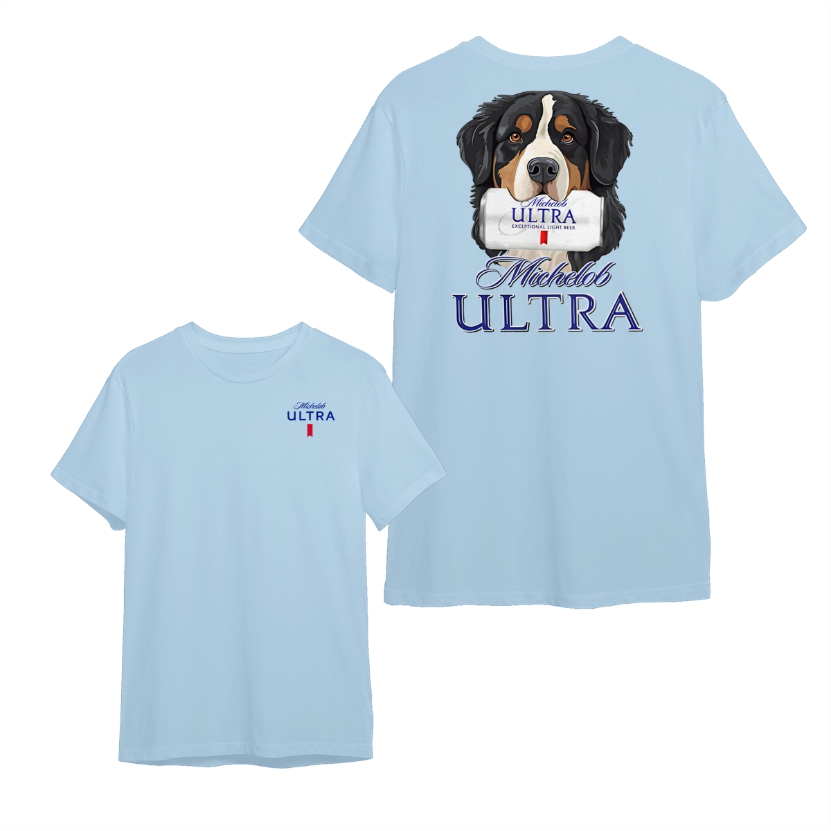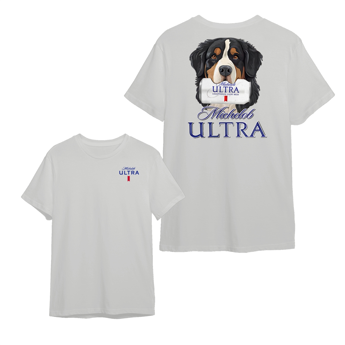 Michelob Ultra Bernese Mountain Dog Tee, 2-Sided Graphic Shirt, Funny Beer Lover’s Unisex Cotton Top, Men’s & Women’s Gift, Casual Short Sleeve T-Shirt