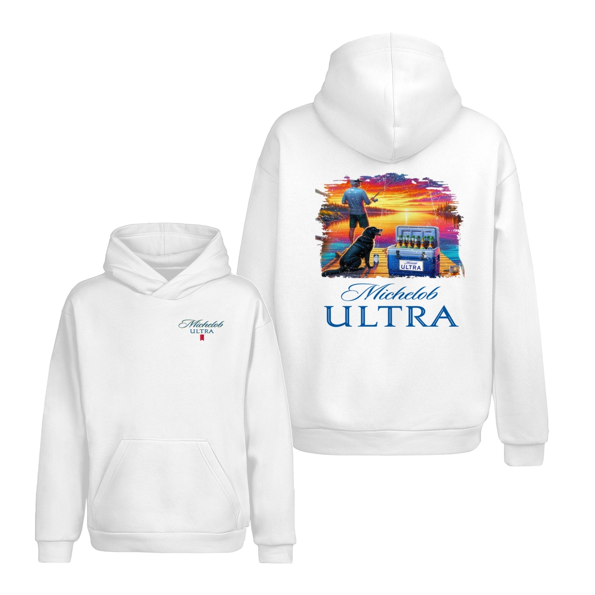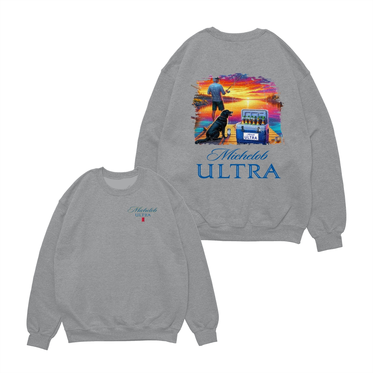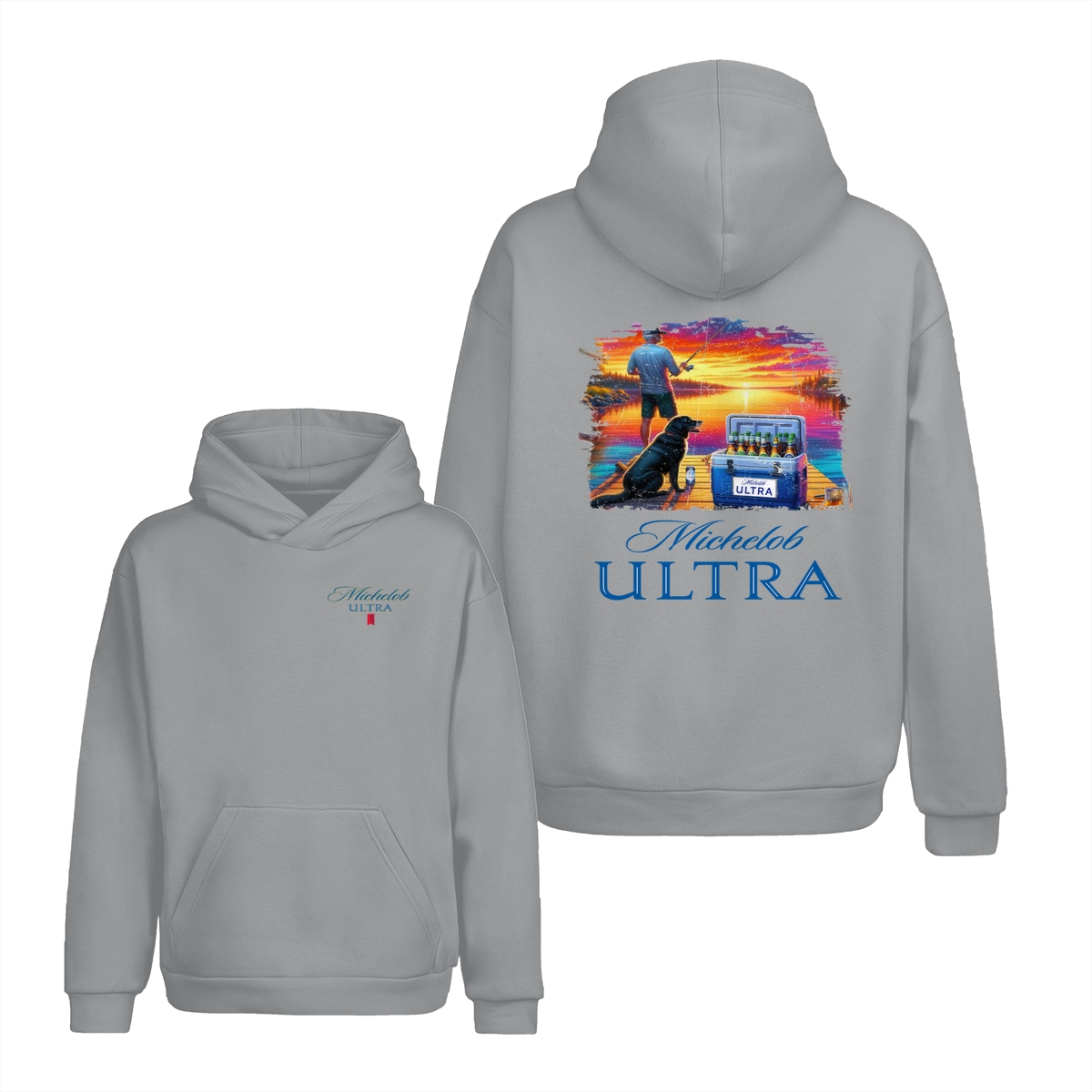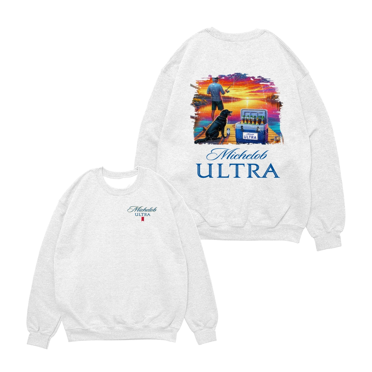 Michelob Ultra Fishing T-Shirt , Scenic Sunset Graphic With Dog And Beer Cooler , Relaxed Fit For Men , Ideal For Outdoor Adventures , Lake Days , Fishing Trips , Summer Casual Wear Tops Menswear
