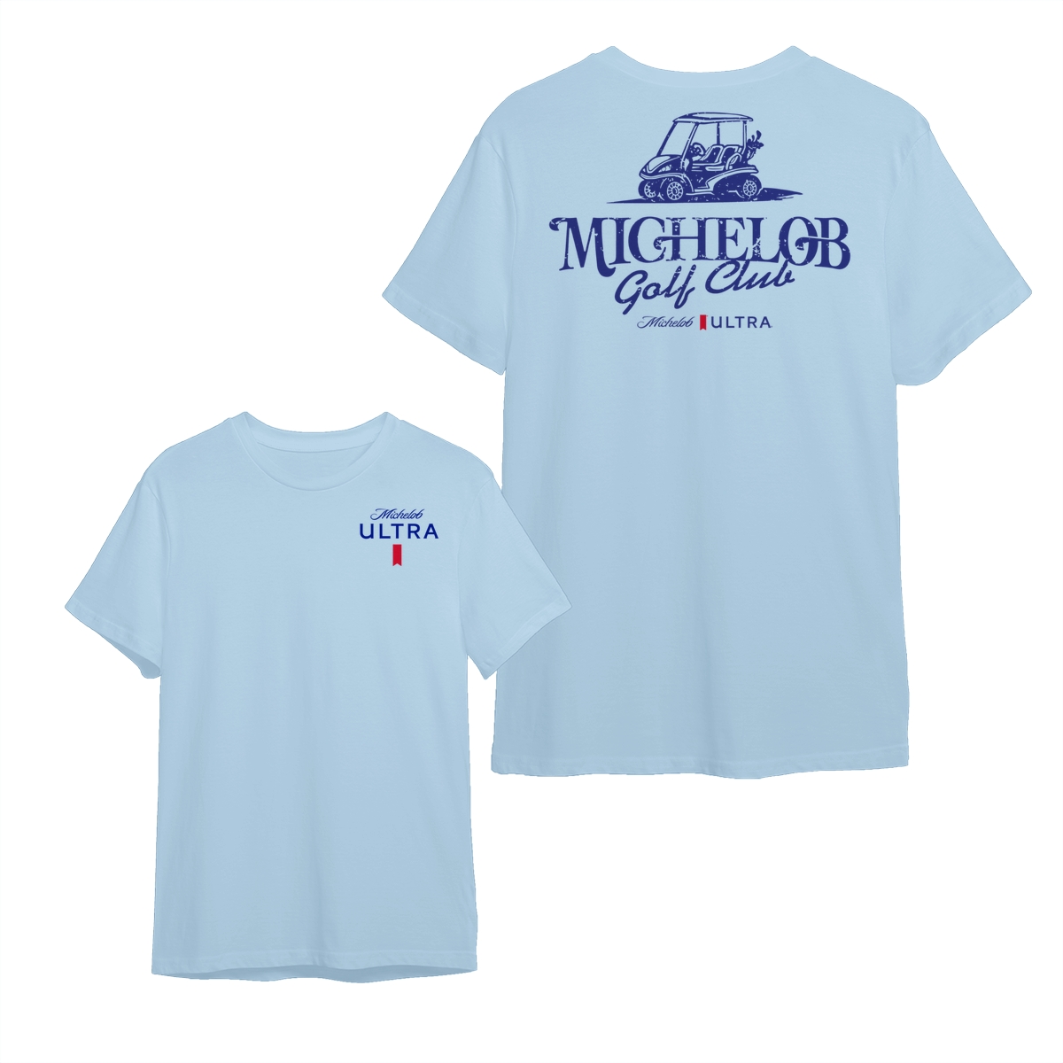 Michelob Ultra Golf T-Shirt, 2-Sided Graphic Tee with Golf Cart & Club Design, Classic Cotton Menswear, Gift for Men