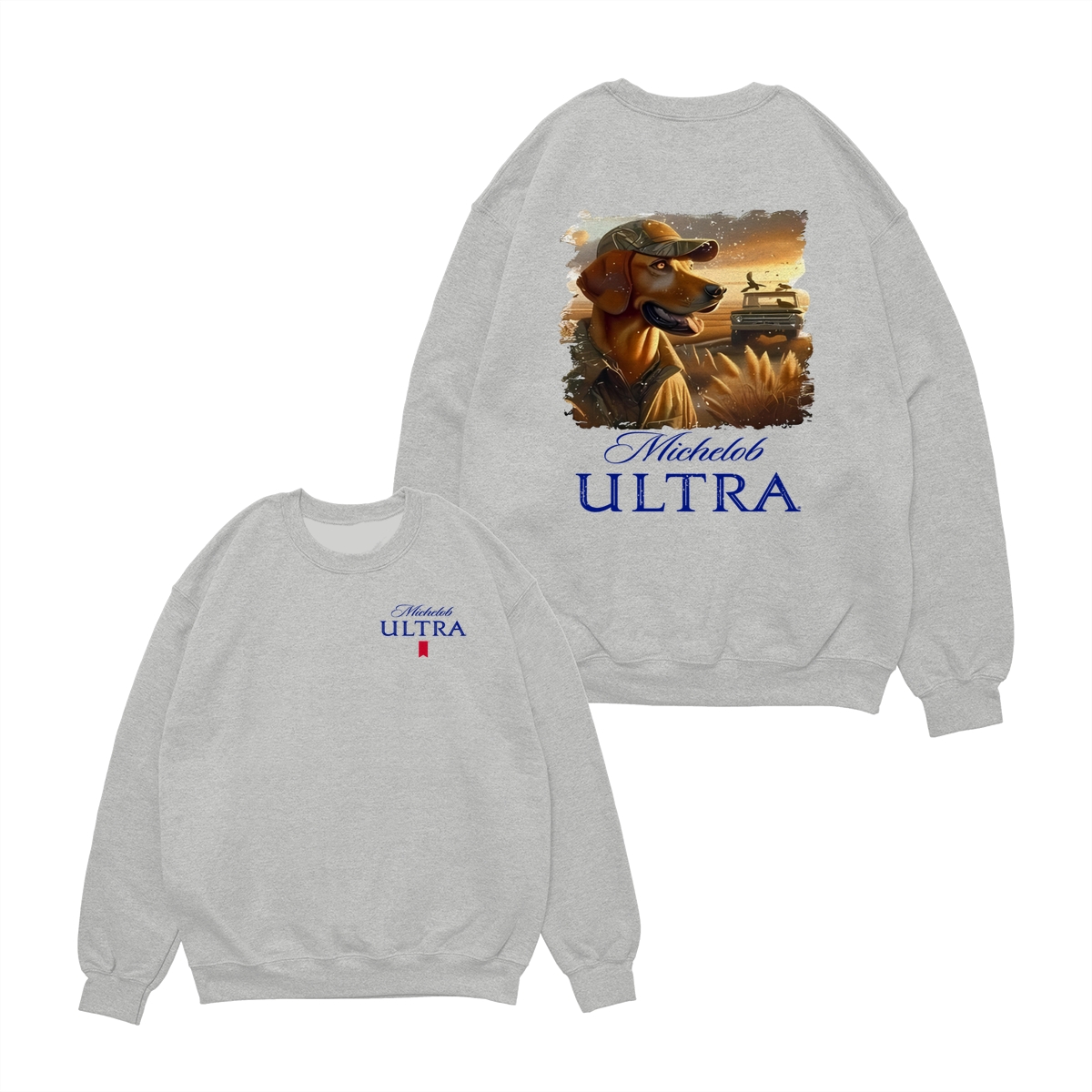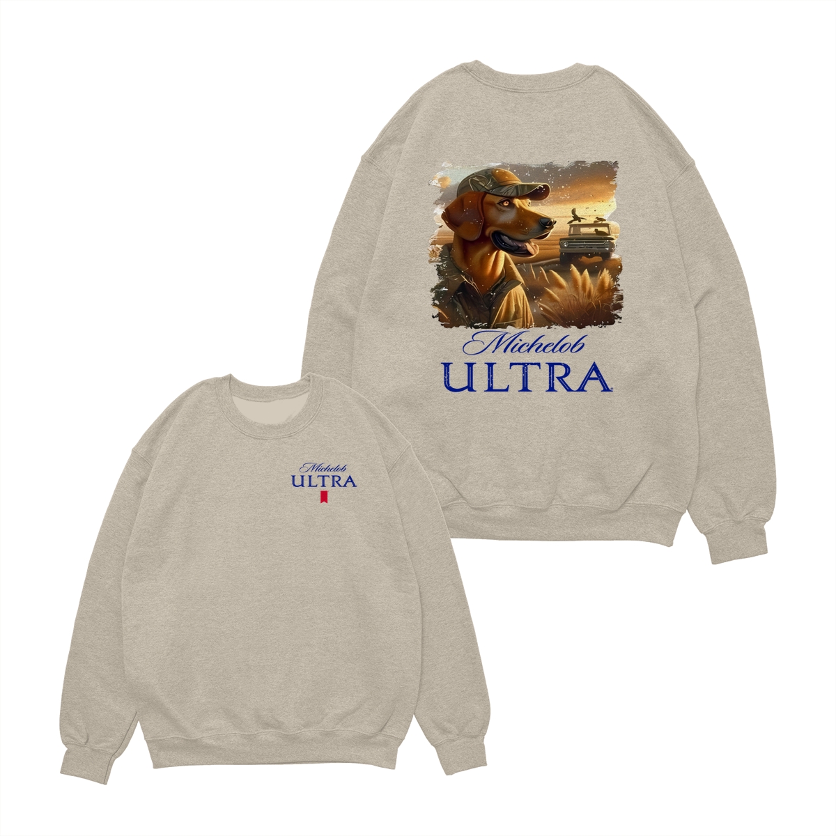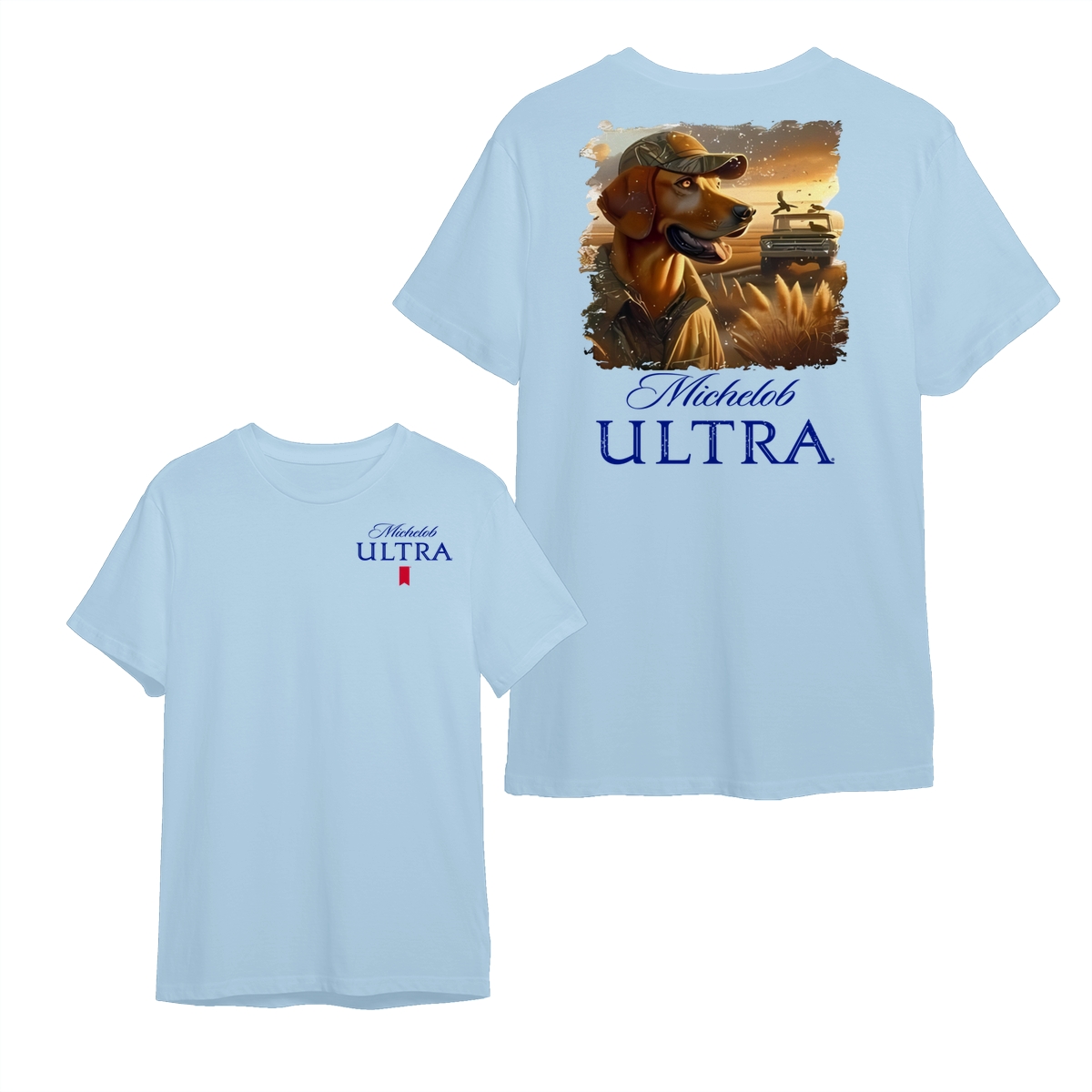 Michelob Ultra Hunter Dog T-Shirt – Military Style Sunset Graphic Tee. Soft Cotton Shirt for Outdoorsmen, Beer Lovers, and Country Lifestyle Fans.