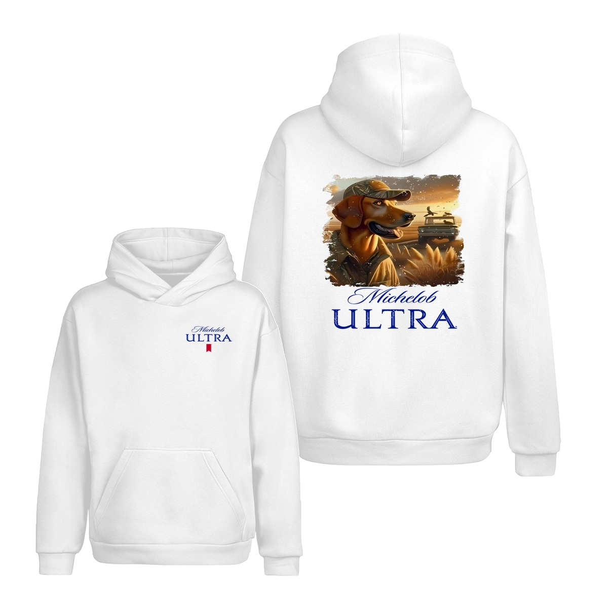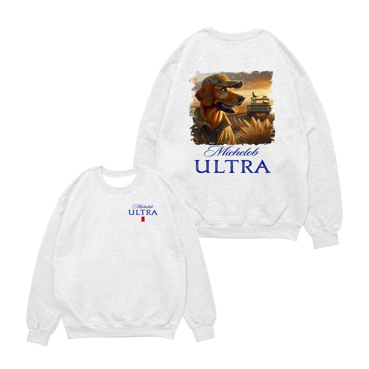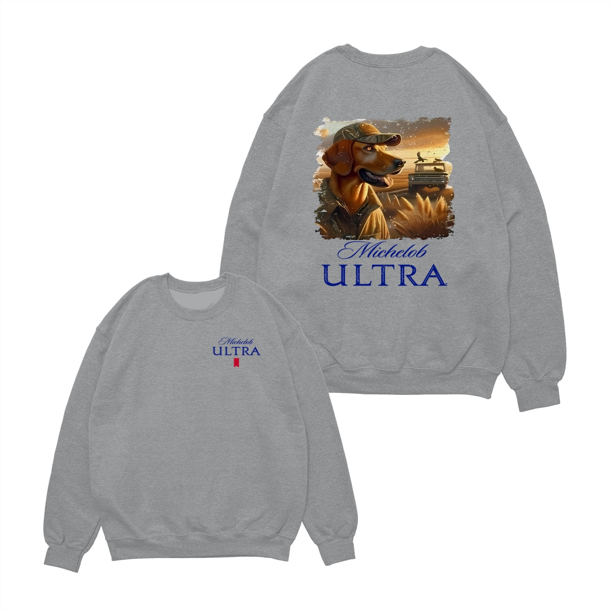 Michelob Ultra Hunter Dog T-Shirt – Military Style Sunset Graphic Tee. Soft Cotton Shirt for Outdoorsmen, Beer Lovers, and Country Lifestyle Fans.