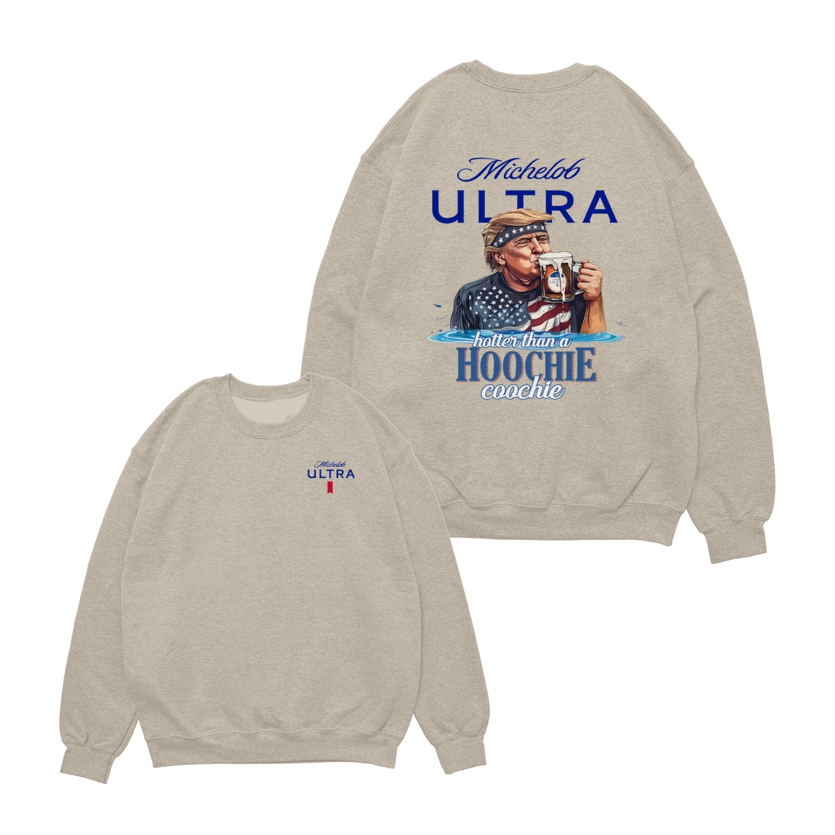 Michelob Ultra Patriotic T-Shirt – Funny Beer Tee, Soft Cotton Unisex Fit, “Hotter Than a Hoochie Coochie” Design for Beer Lovers & Trumm Fans