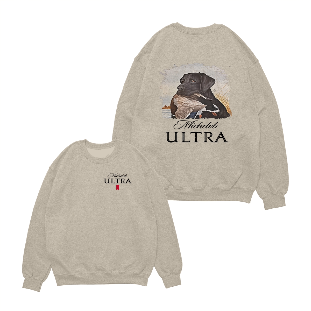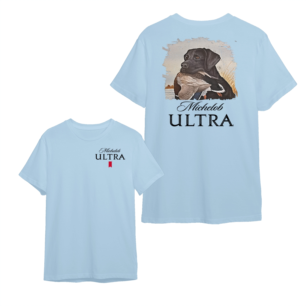 Michelob Ultra Vintage Hunting Graphic Tee, Funny 2-Sided Mallard and Dog T-Shirt, Perfect Gift for Men and Women, Casual Daily Wear