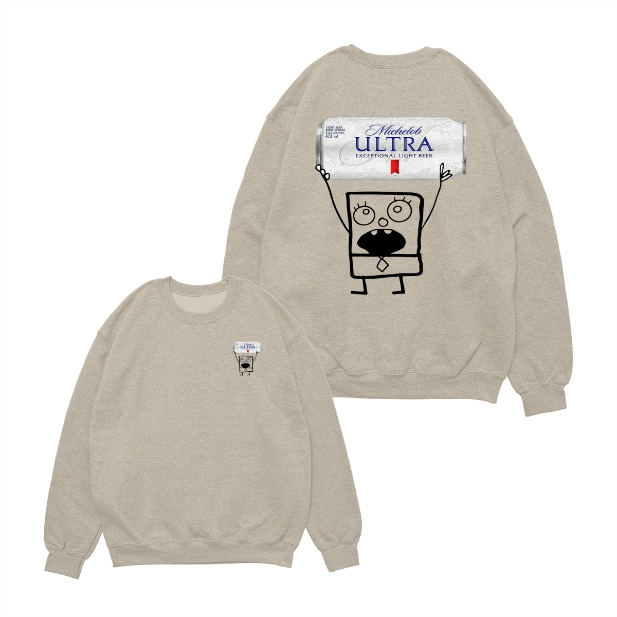 Michelob Ultra x Doodlebob Spongebob Cartoon T-Shirt, Graphic Printed Tee For Women, Cotton Fabric, Daily Wear, Comfortable and Stylish, Gift For Her