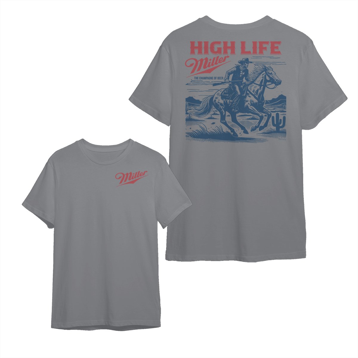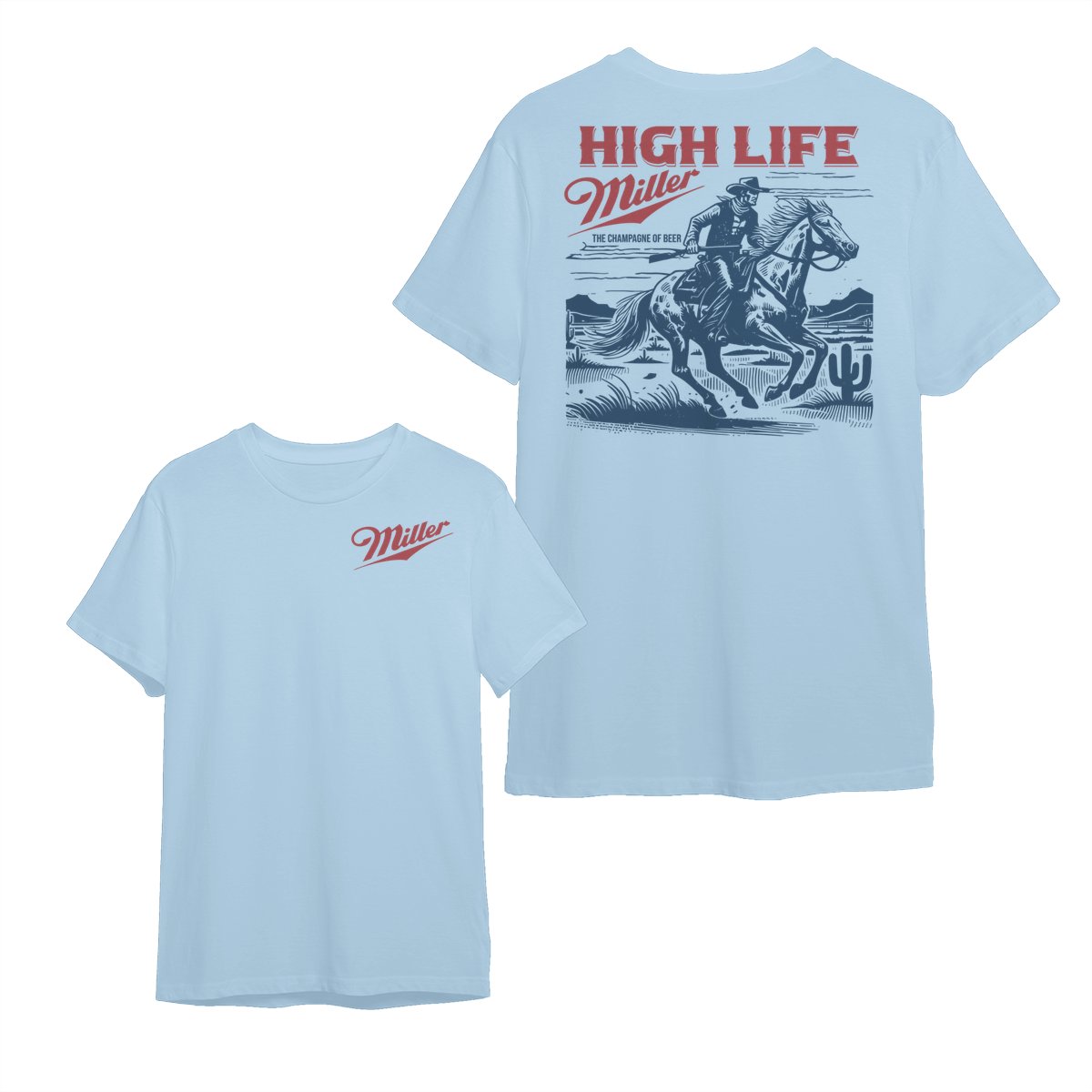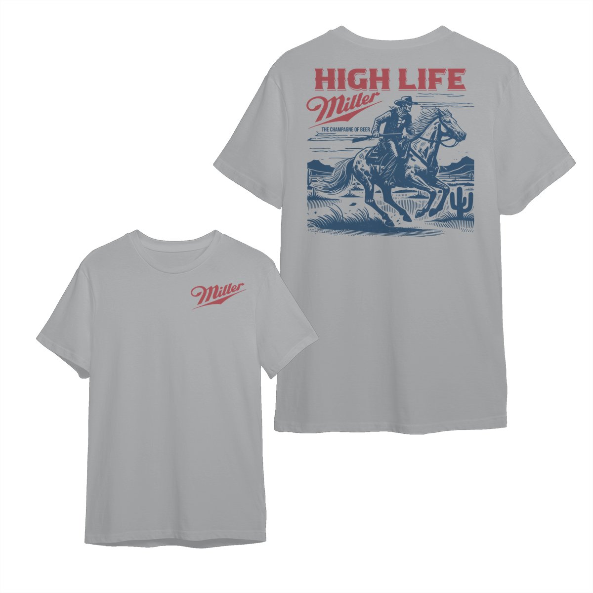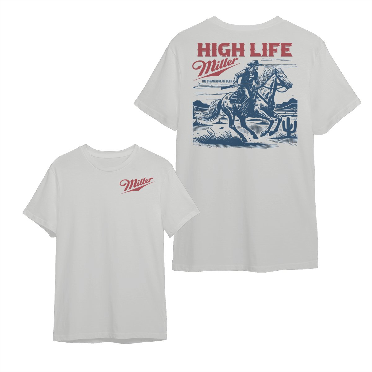 Miller-High Life T-Shirt – Western-Inspired Design, Soft Cotton, Great for Outdoor Adventures, Unisex Menswear Top Casual Crewneck