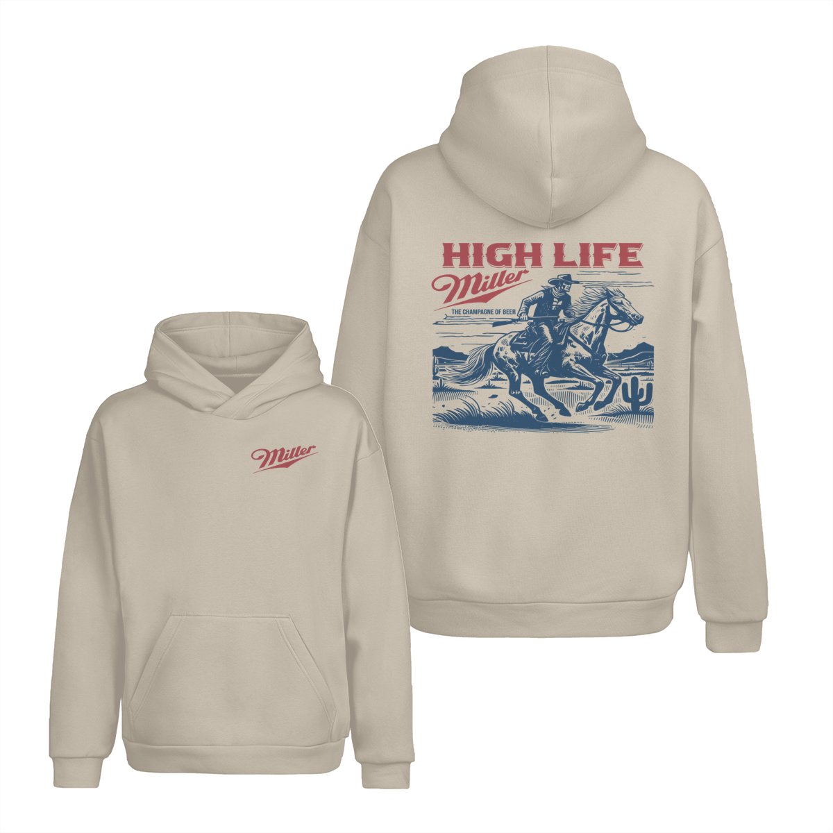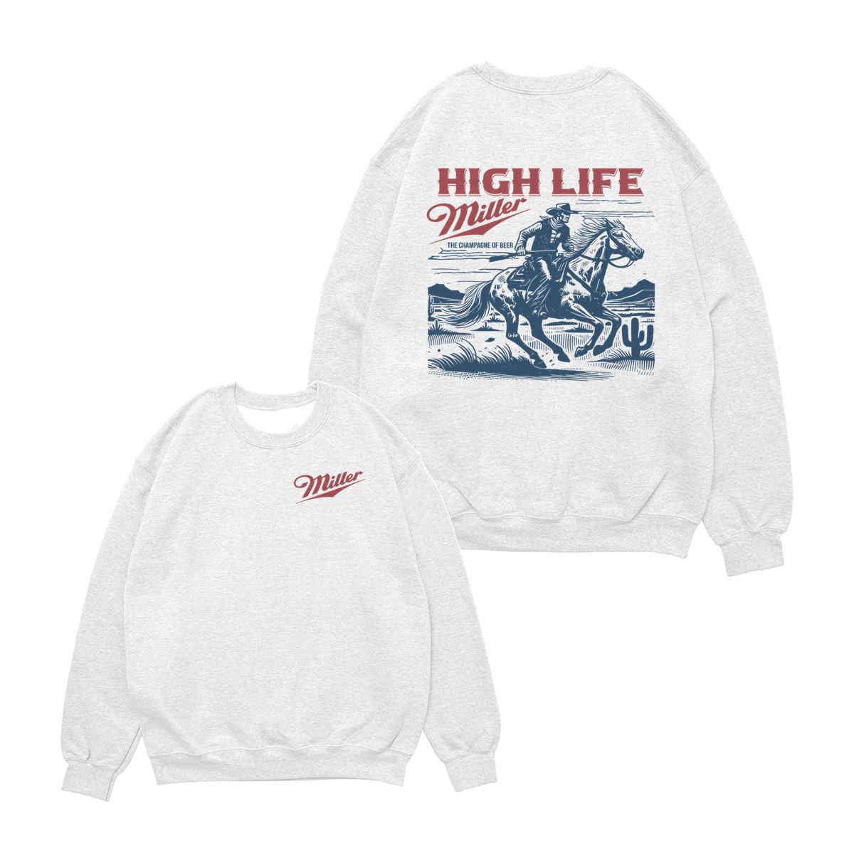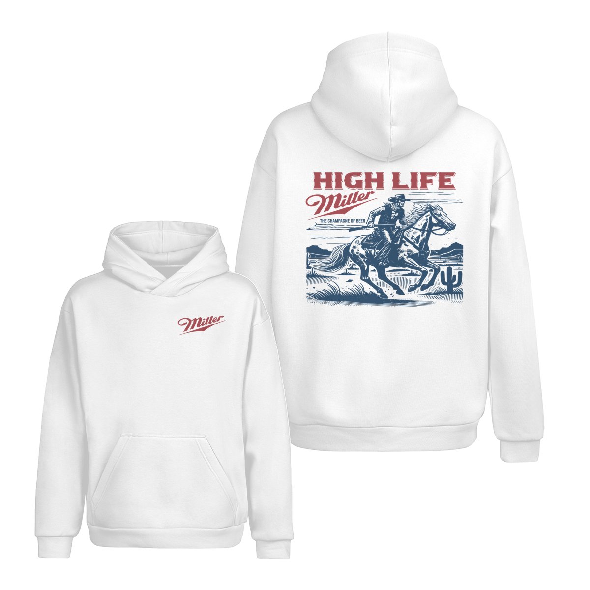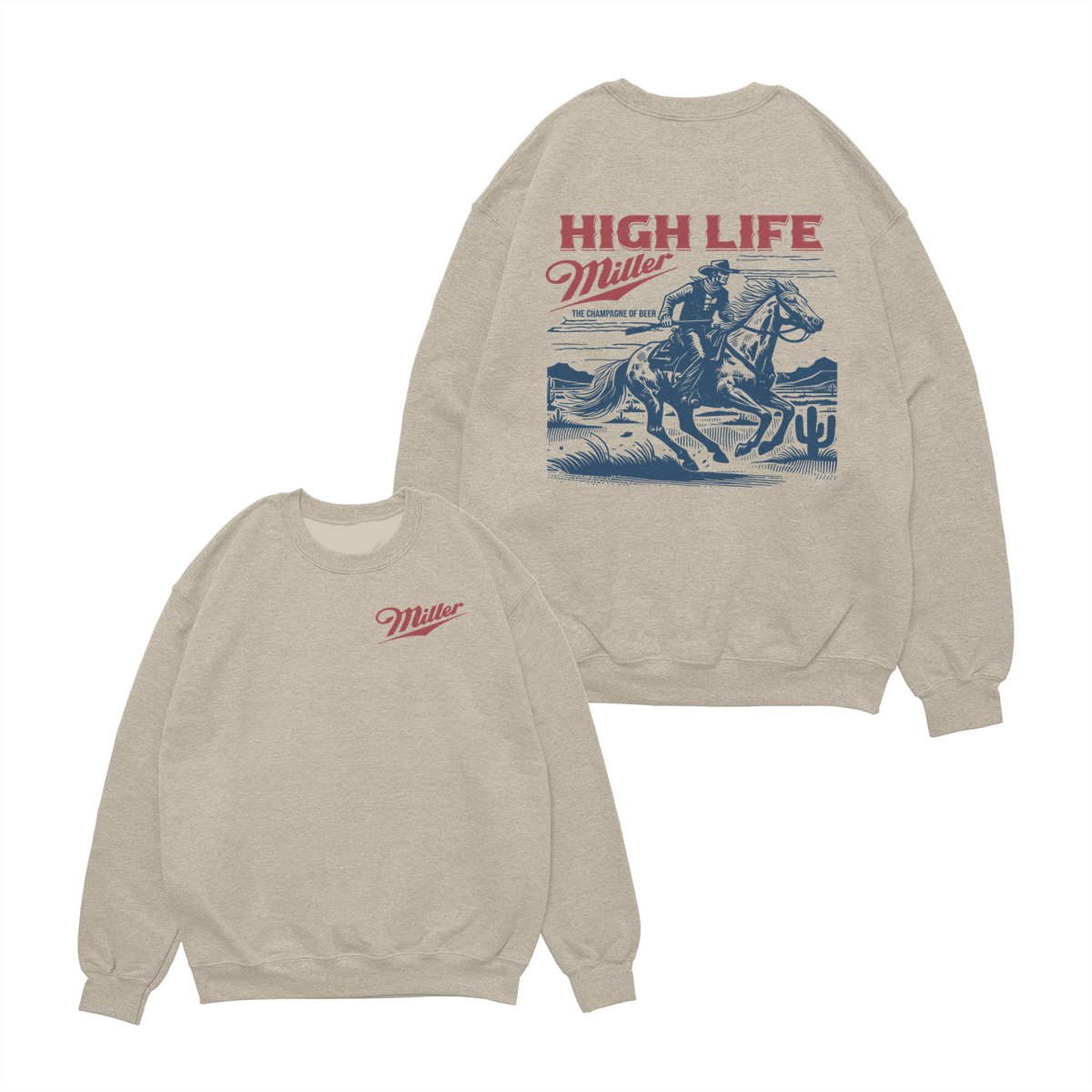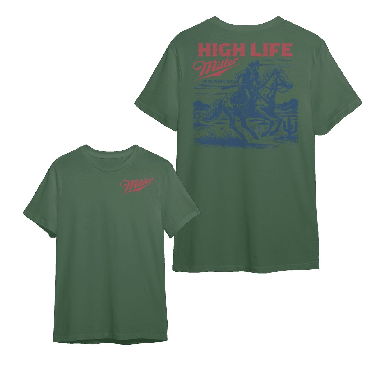 Miller-High Life T-Shirt – Western-Inspired Design, Soft Cotton, Great for Outdoor Adventures, Unisex Menswear Top Casual Crewneck
