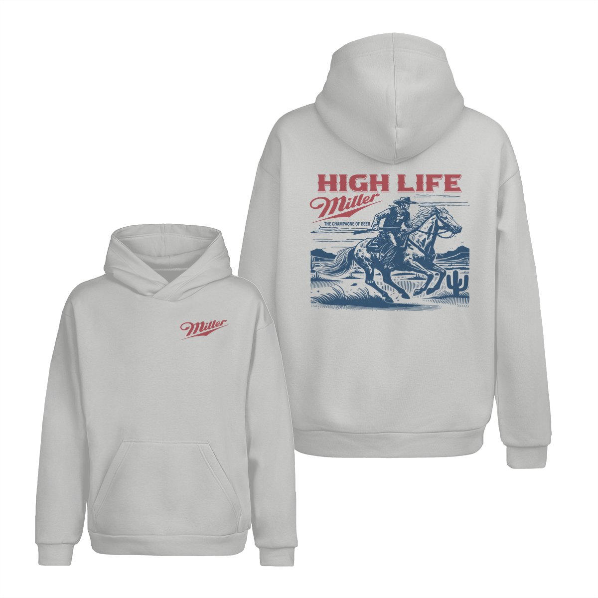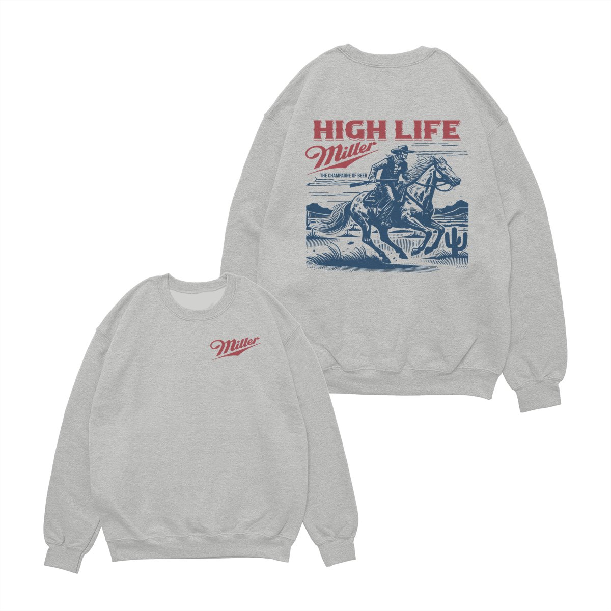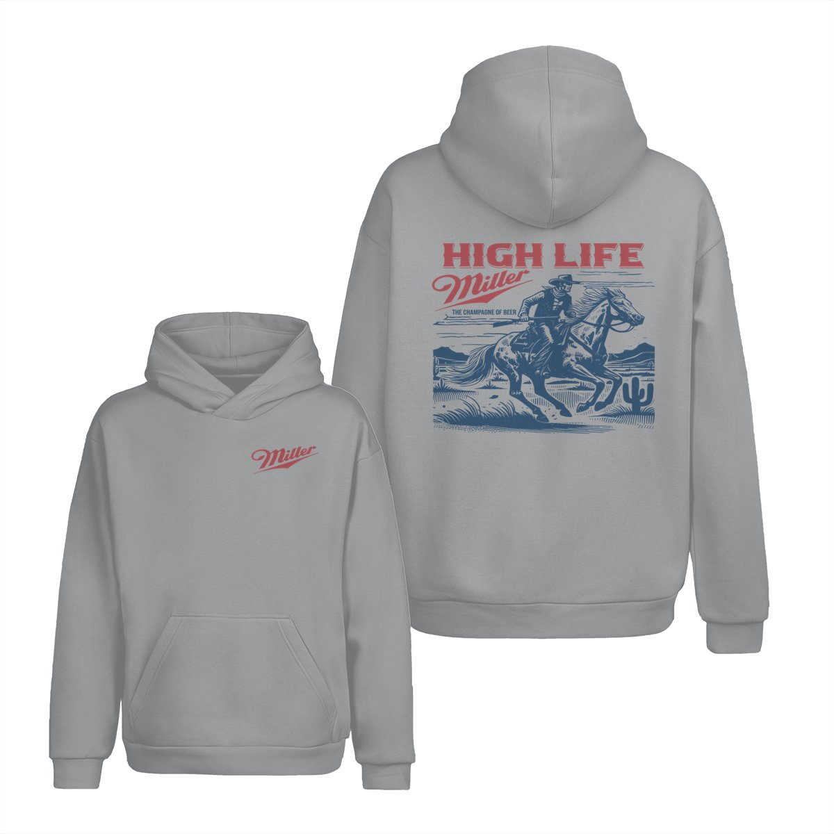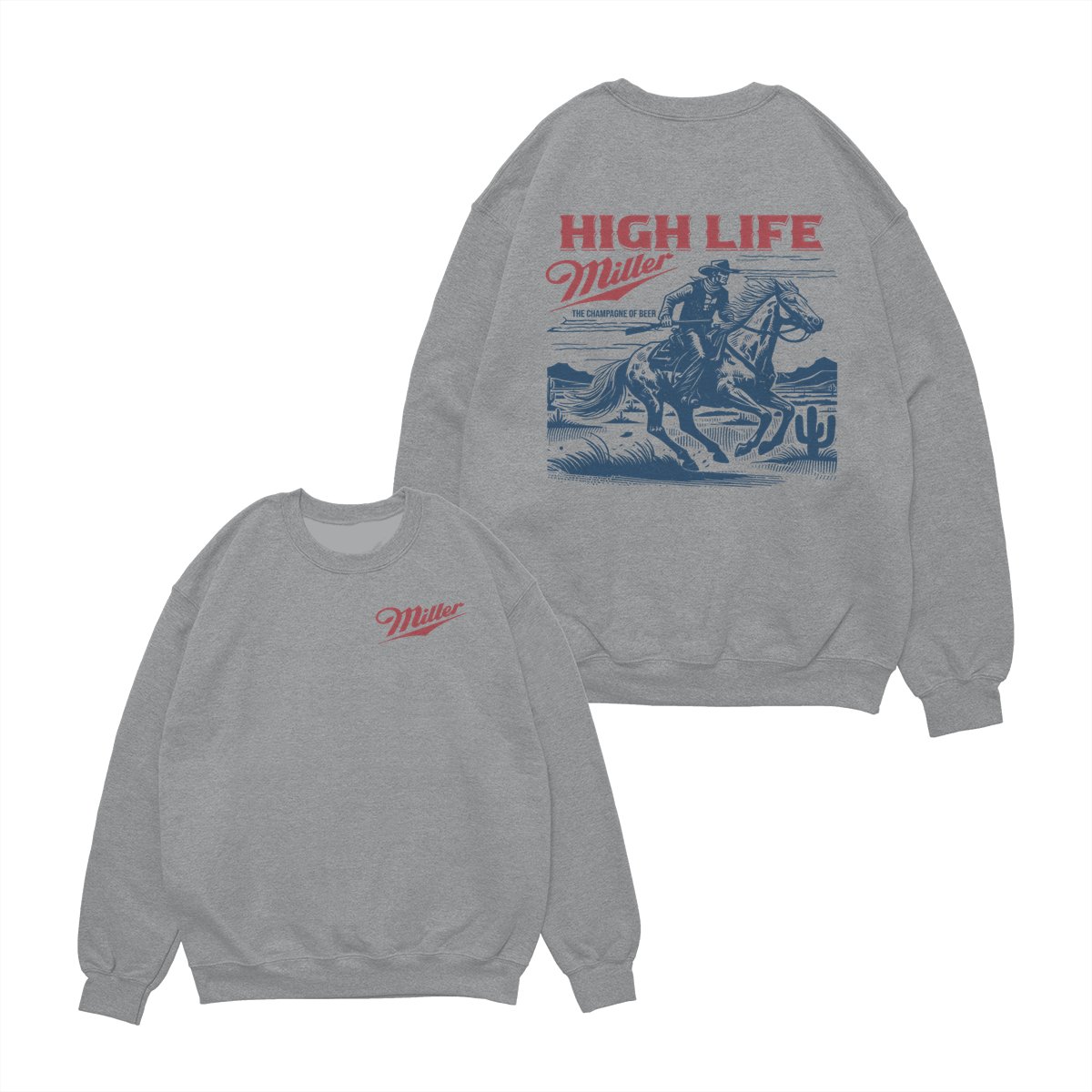 Miller-High Life T-Shirt – Western-Inspired Design, Soft Cotton, Great for Outdoor Adventures, Unisex Menswear Top Casual Crewneck