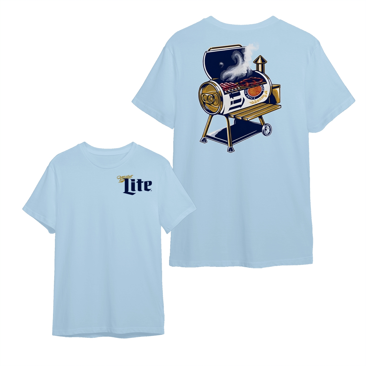 Miller-Lite BBQ T-Shirt – Funny Beer Can Smoker Tee for Cookouts, Tailgates, Backyard Parties – Cotton Comfort – Unisex Menswear Top Casual Crewneck vintage