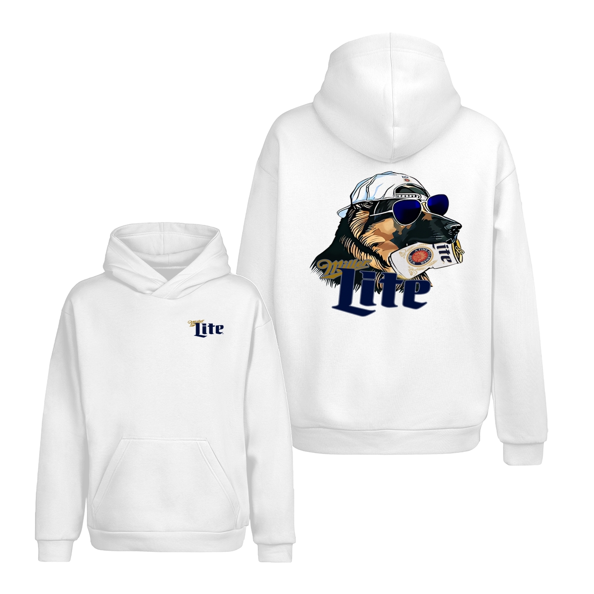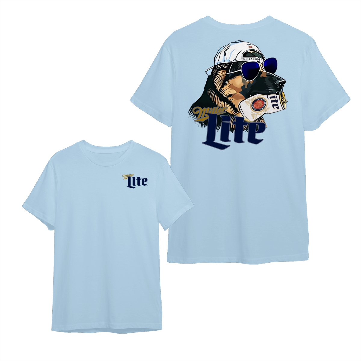 Miller-Lite Chill Dog T-Shirt – Trendy Drinking Buddy Tee for Beer and Dog Enthusiasts, Unisex Streetwear, Short Sleeve, Casual Wear, Machine Washable. Boyfriend Gift. Top – Menswear