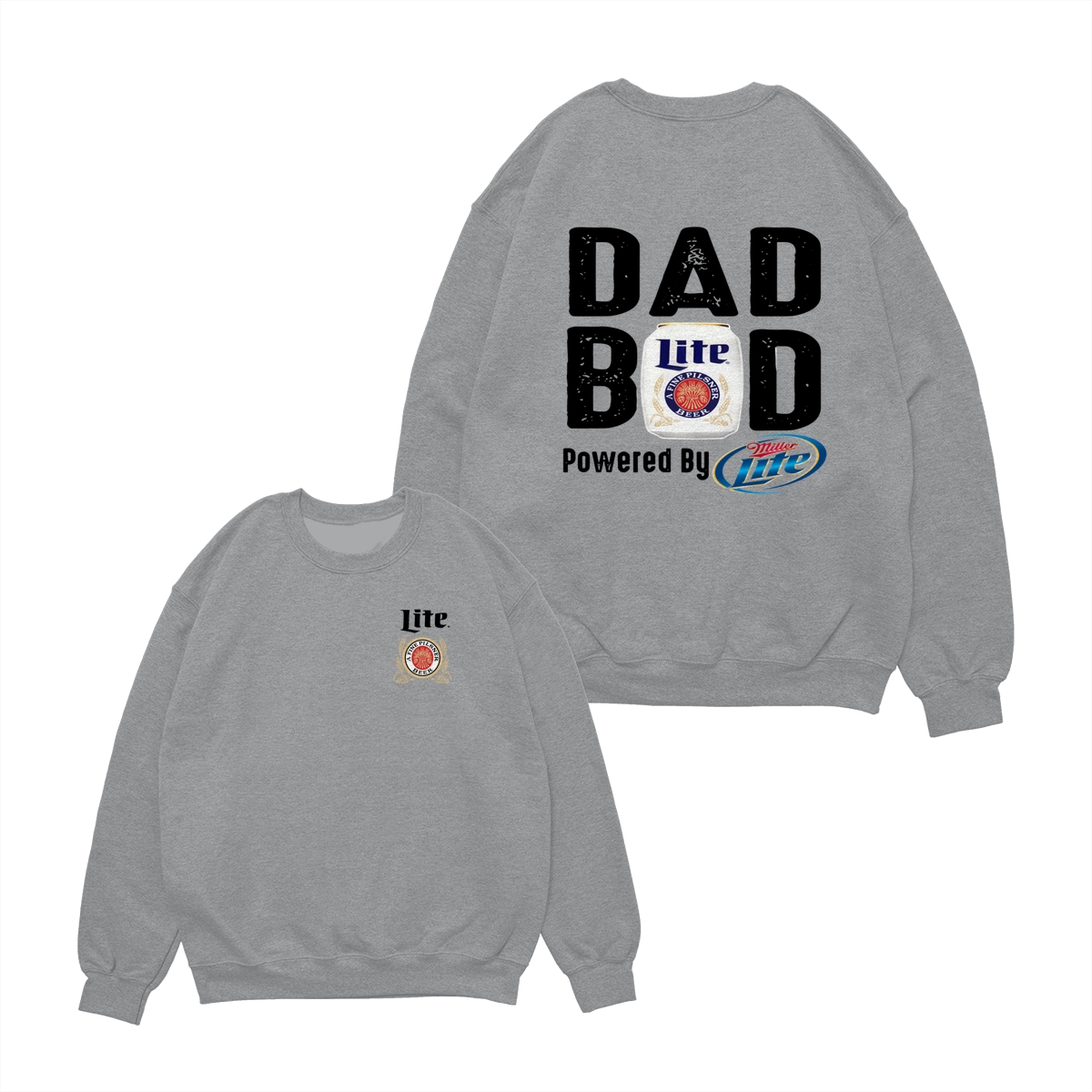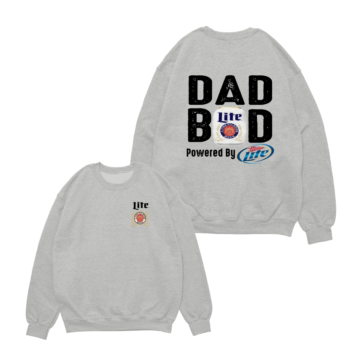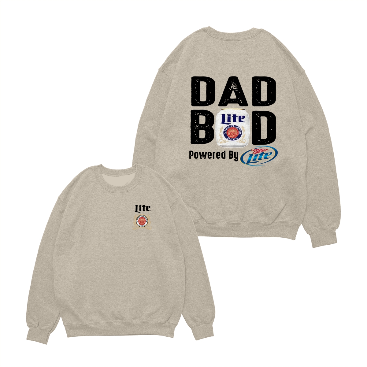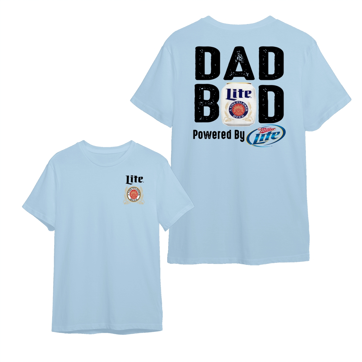 Miller-Lite Dad Bod T-Shirt – Funny Beer Lover Graphic Tee for Dads, Powered by Miller-Lite, Unisex Sand Shirt, Father’s Day Menswear Top