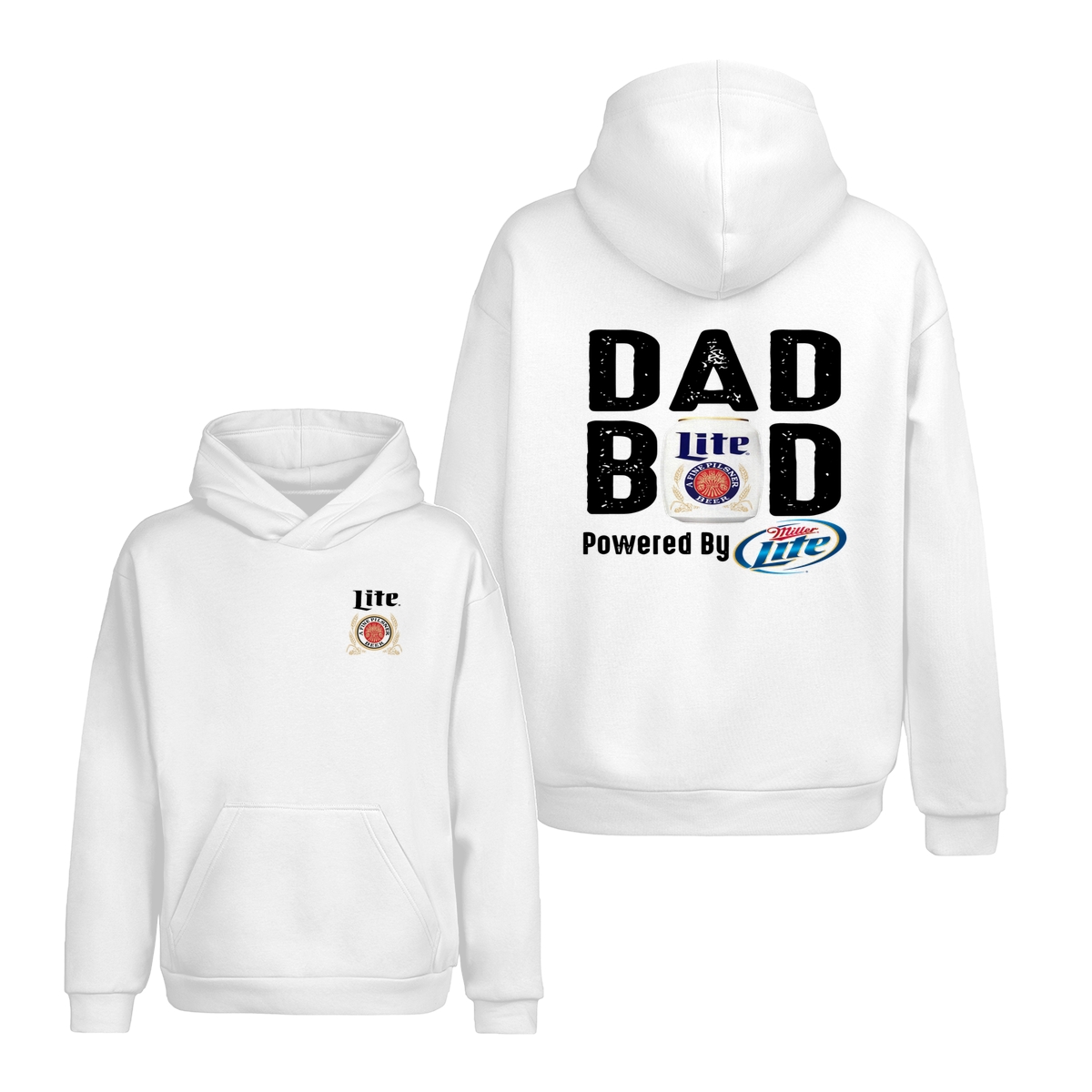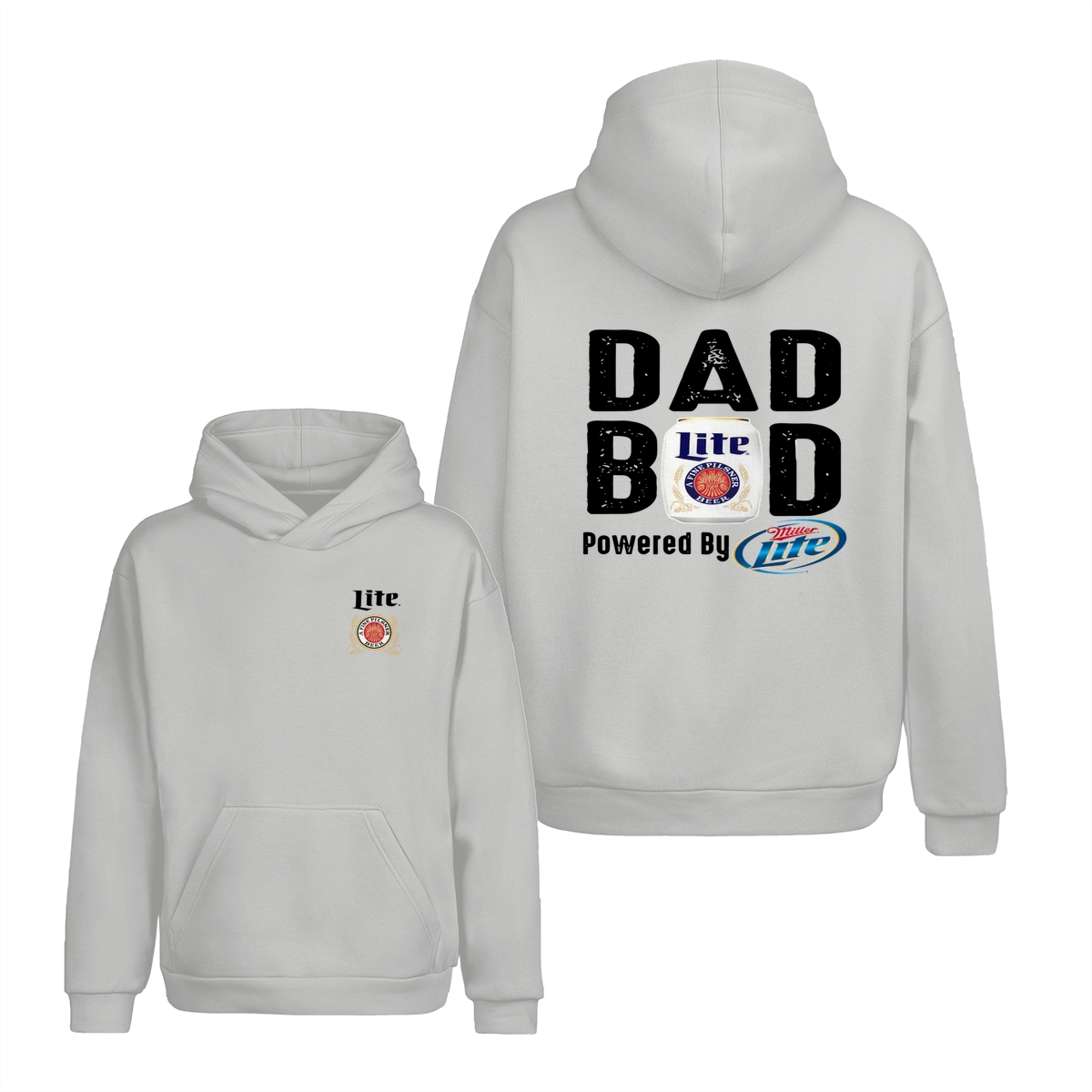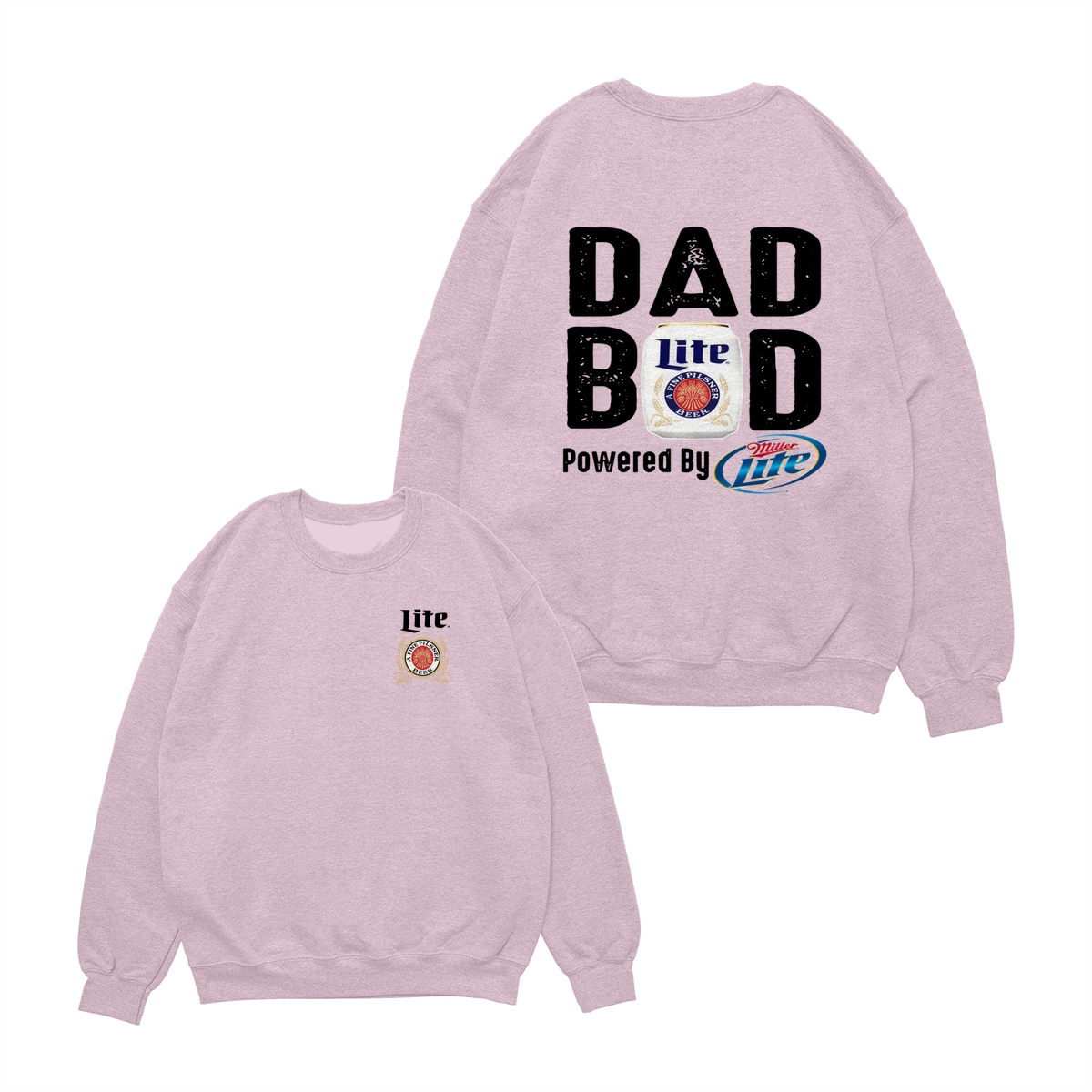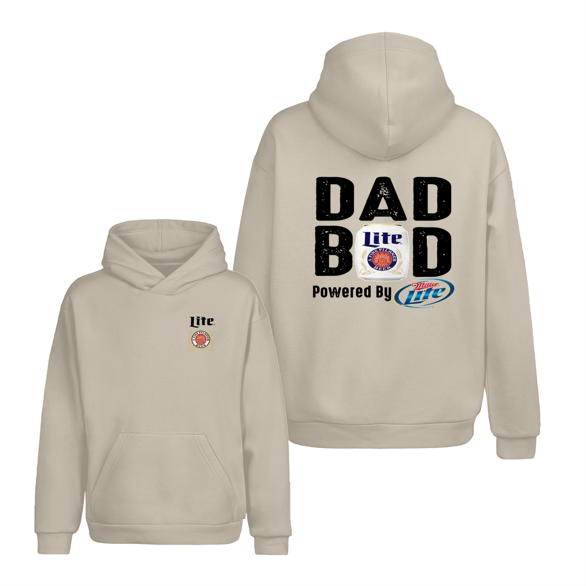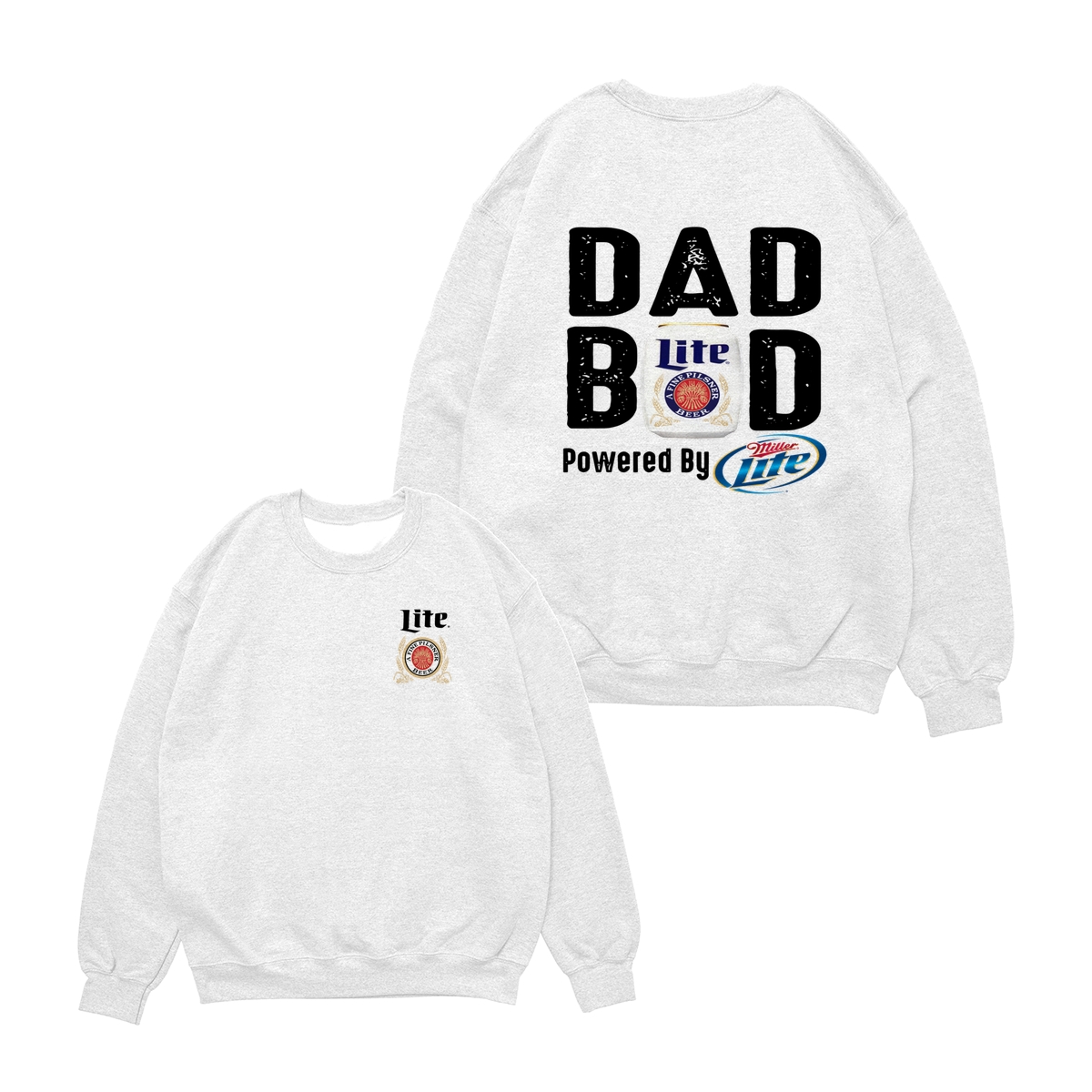 Miller-Lite Dad Bod T-Shirt – Funny Beer Lover Graphic Tee for Dads, Powered by Miller-Lite, Unisex Sand Shirt, Father’s Day Menswear Top
