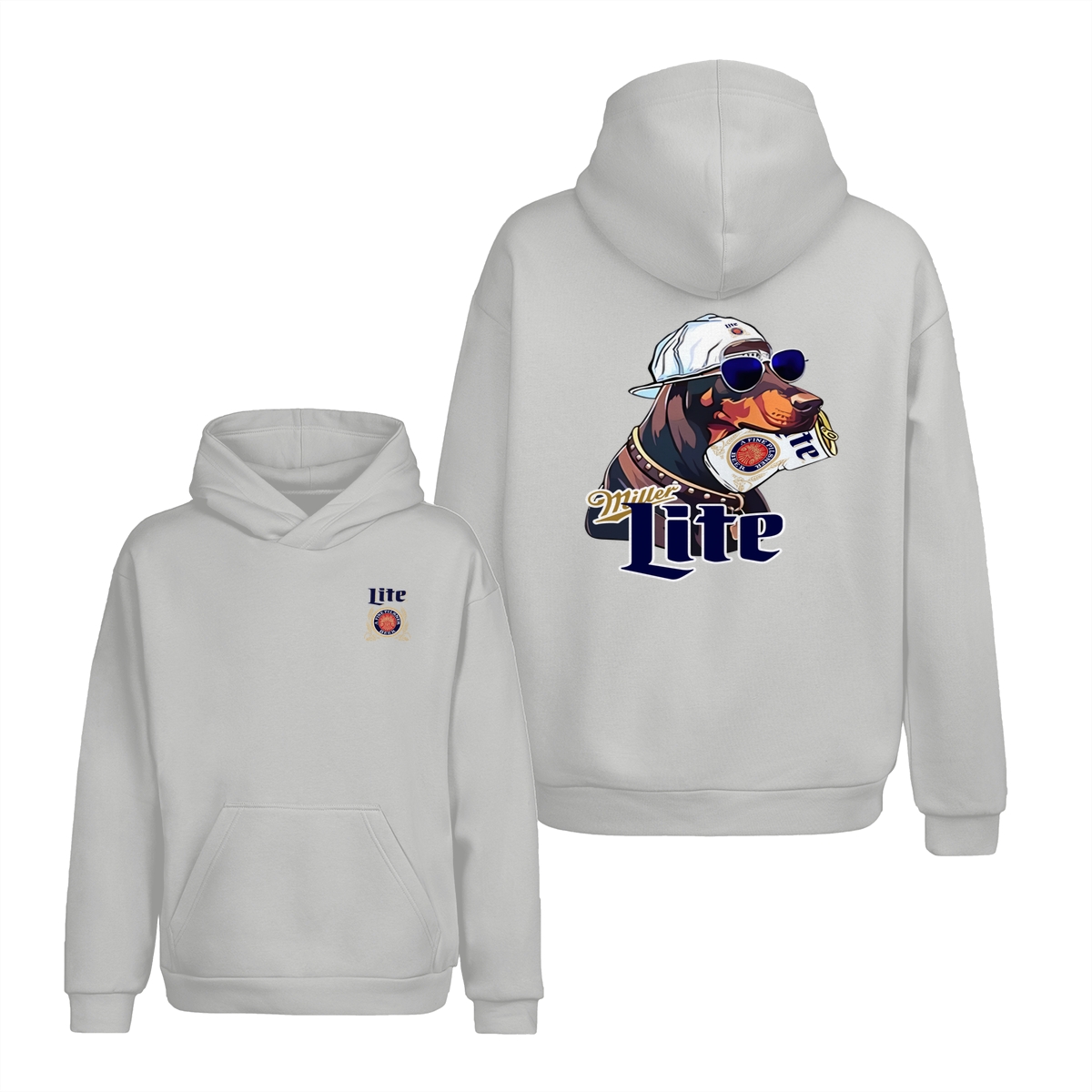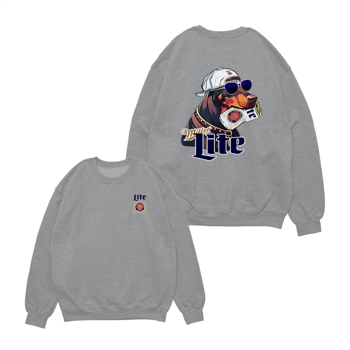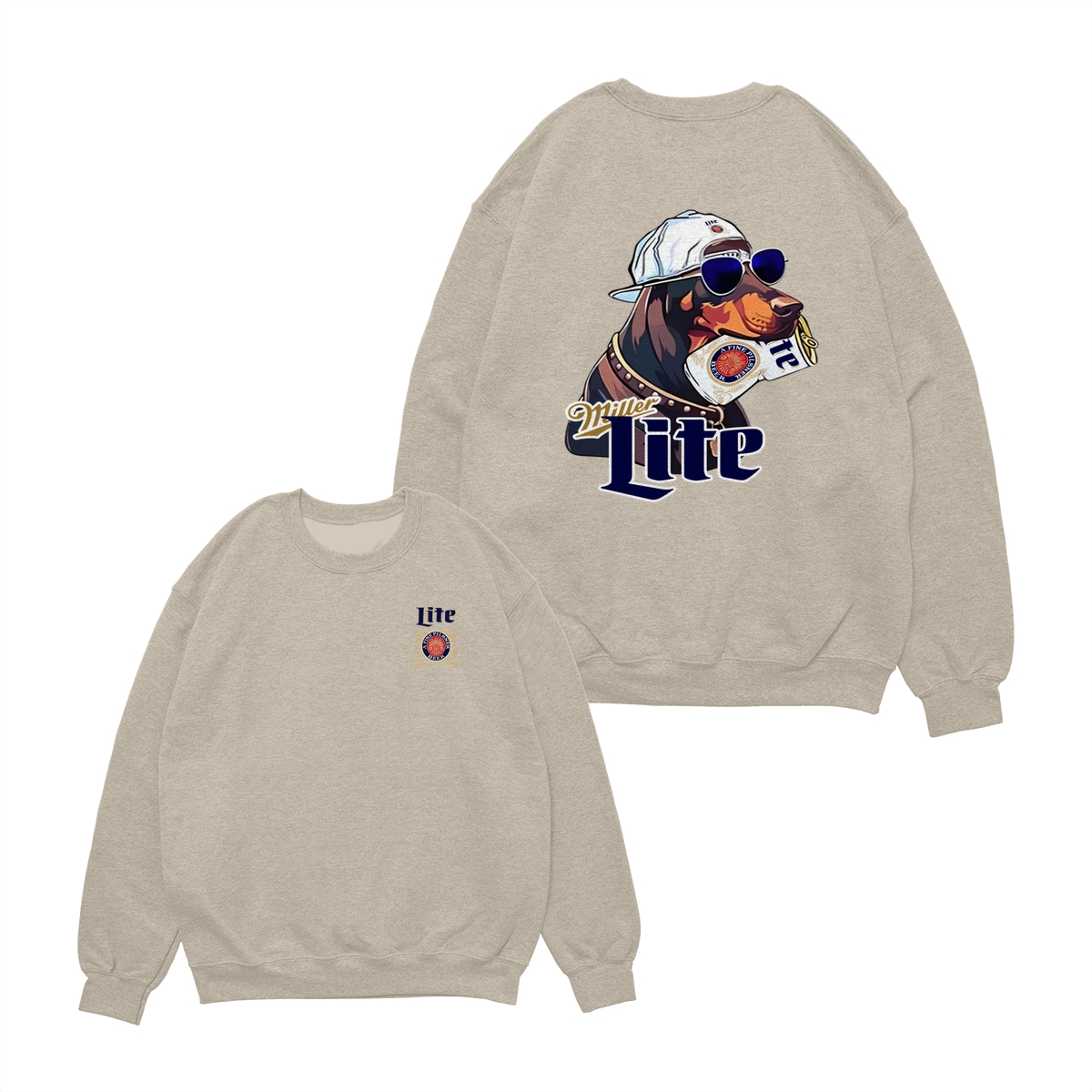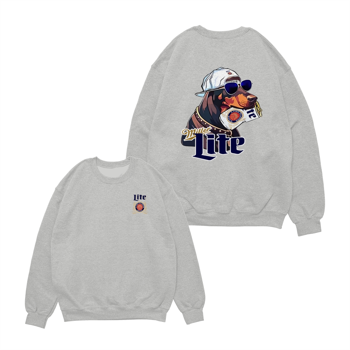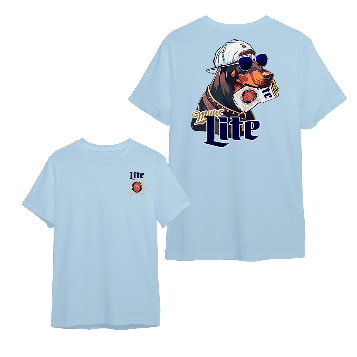 Miller-Lite Doberman Dog Unisex Cotton Tshirt 2 sides, Funny Miller Beer, All Season, Unisex Cotton fit, Full Colors menswear shirts