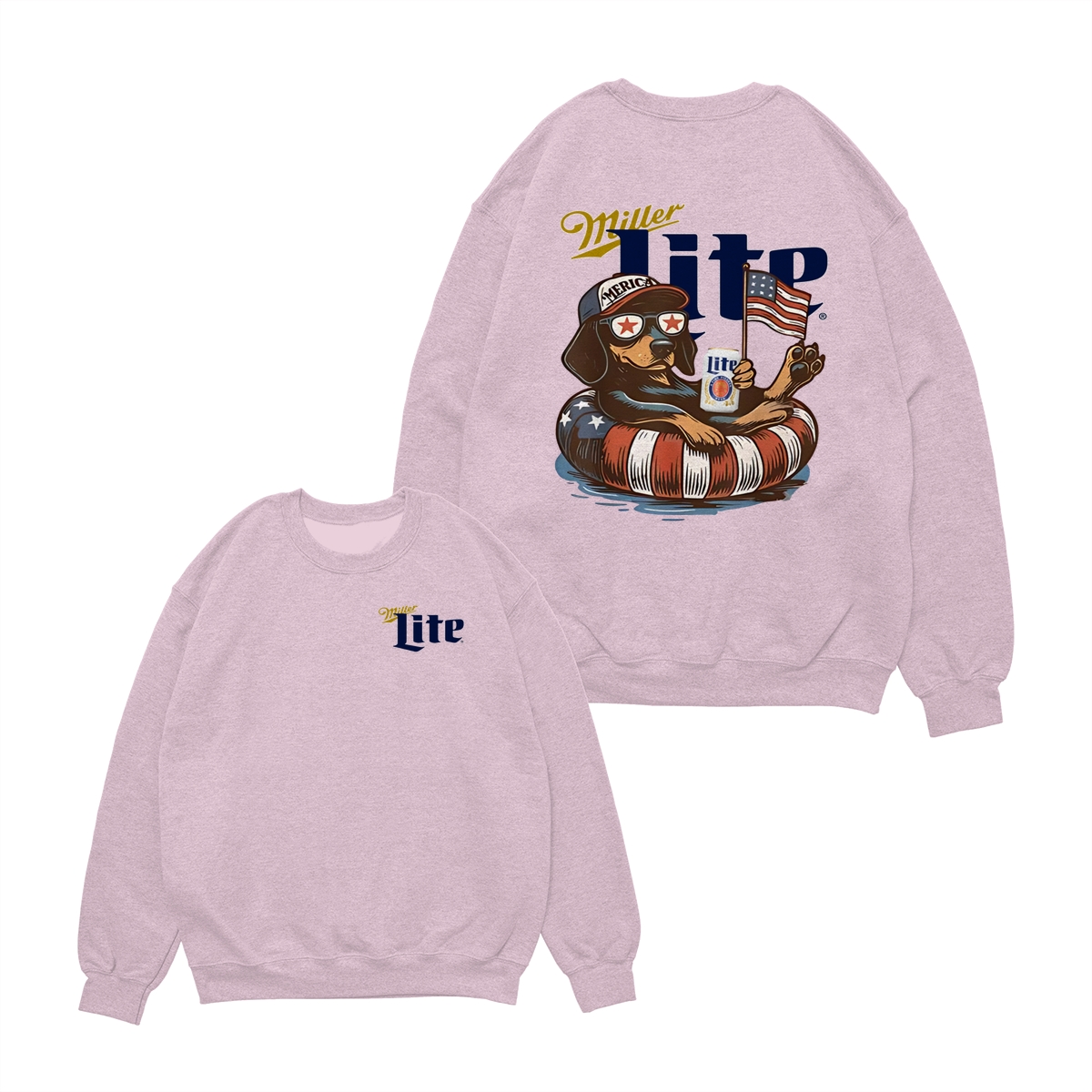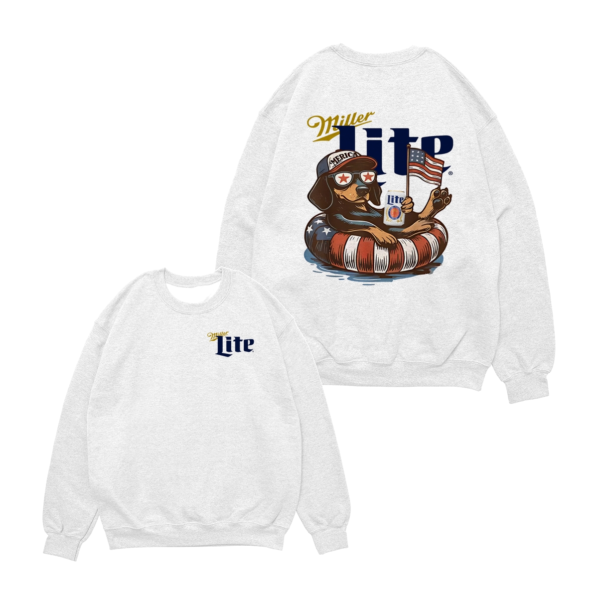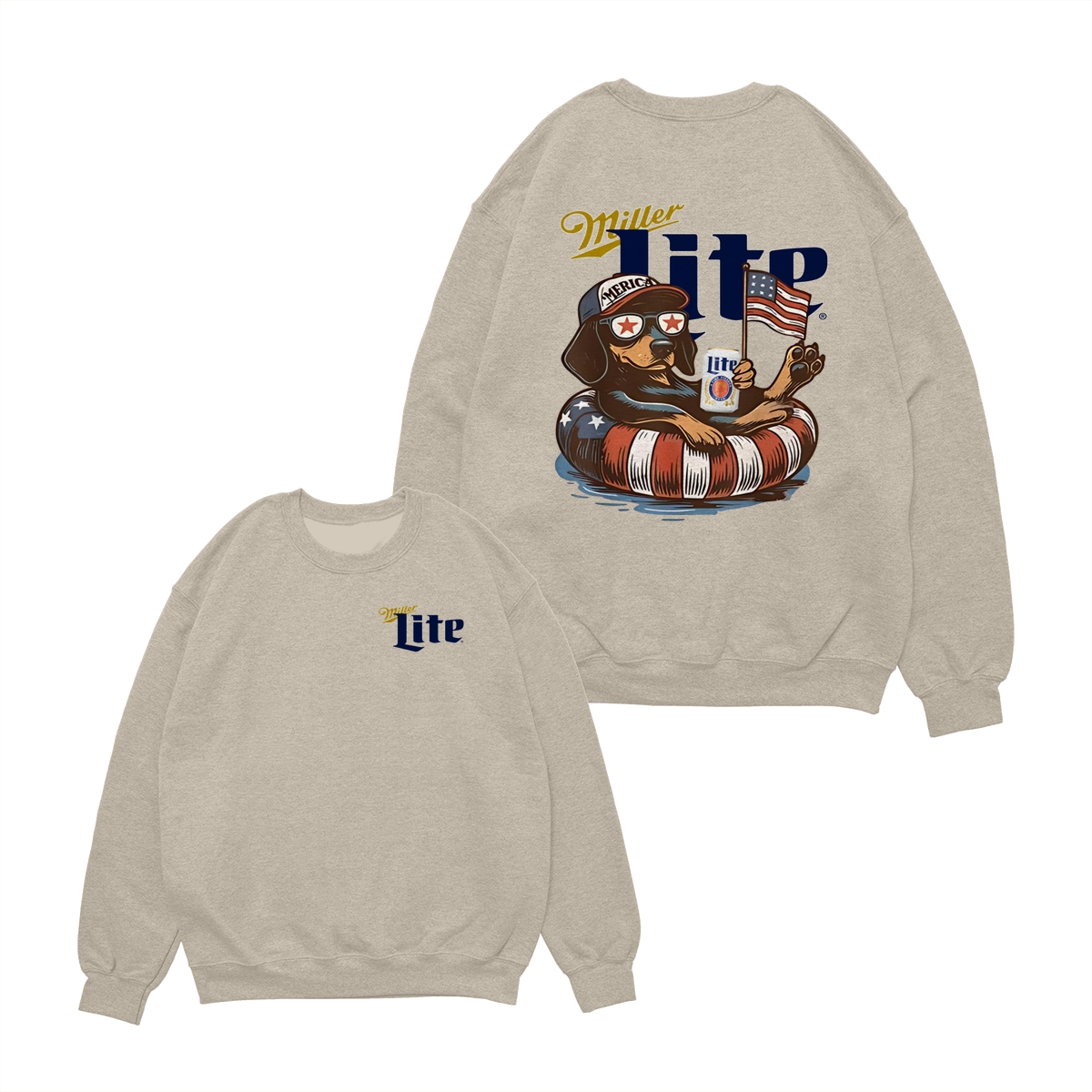 Miller-Lite Dog Beer T-Shirt, American Vibes, Dog Lovers Tee, Miller-Lite, Beer And Freedom, Father’s Day, Summer Tee, Cotton, Comfort, For Men, For Women, Unisex