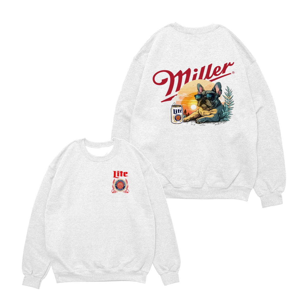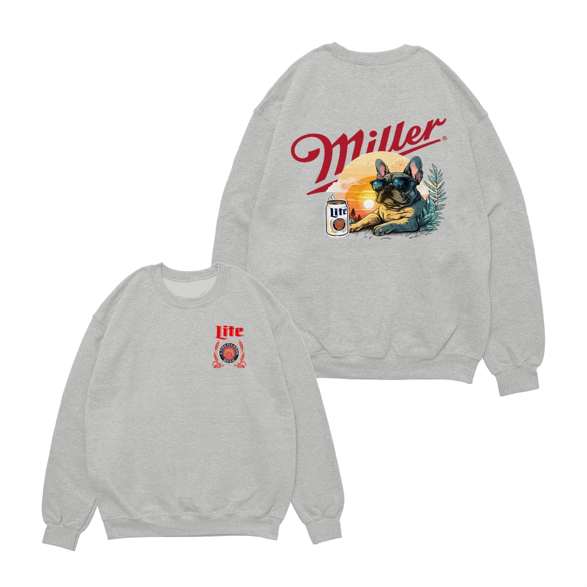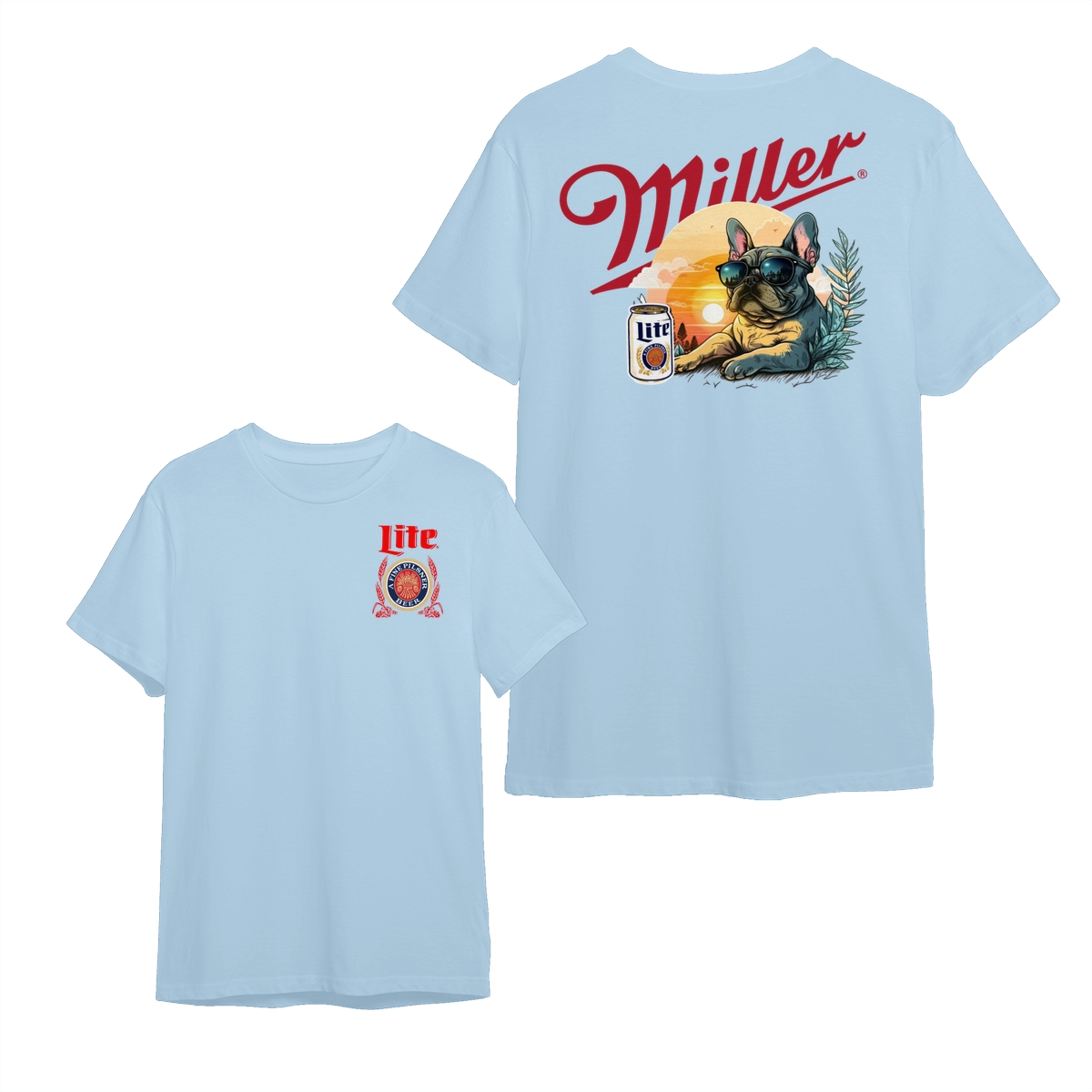 Miller-Lite Dog Shirt, Chill Frenchie Tee, Beer Lover Gift, Summer Vibes Shirt, Dog Dad Shirt, Relaxed Sunset T-Shirt, Funny Dog & Beer Tee. Top – Menswear, Streetwear