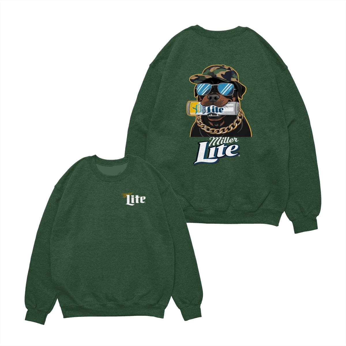 Miller-Lite Dog T-Shirt – Bold Rottweiler Graphic with Sunglasses, Beer Can, and Hip Style, Ideal for Beer Fans and Dog Lovers, Unisex T-Shirts, Relaxed Fit Top Womenswear