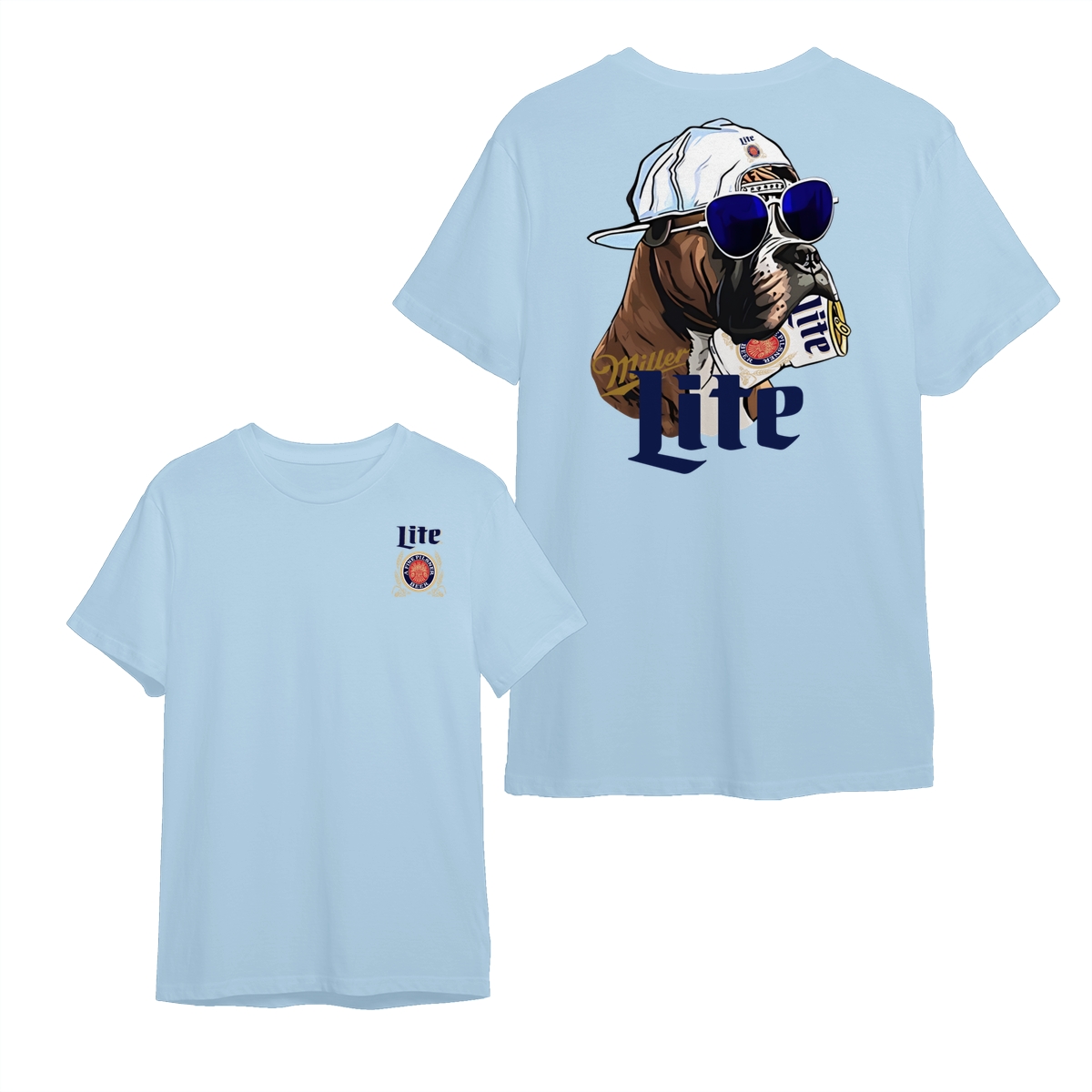 Miller-Lite Hunting Brindle Boxer Dog Unisex Cotton Tshirt 2 sides, Gift for Dad, Mom, Grandpa, Husband, Full Sizes men shirts