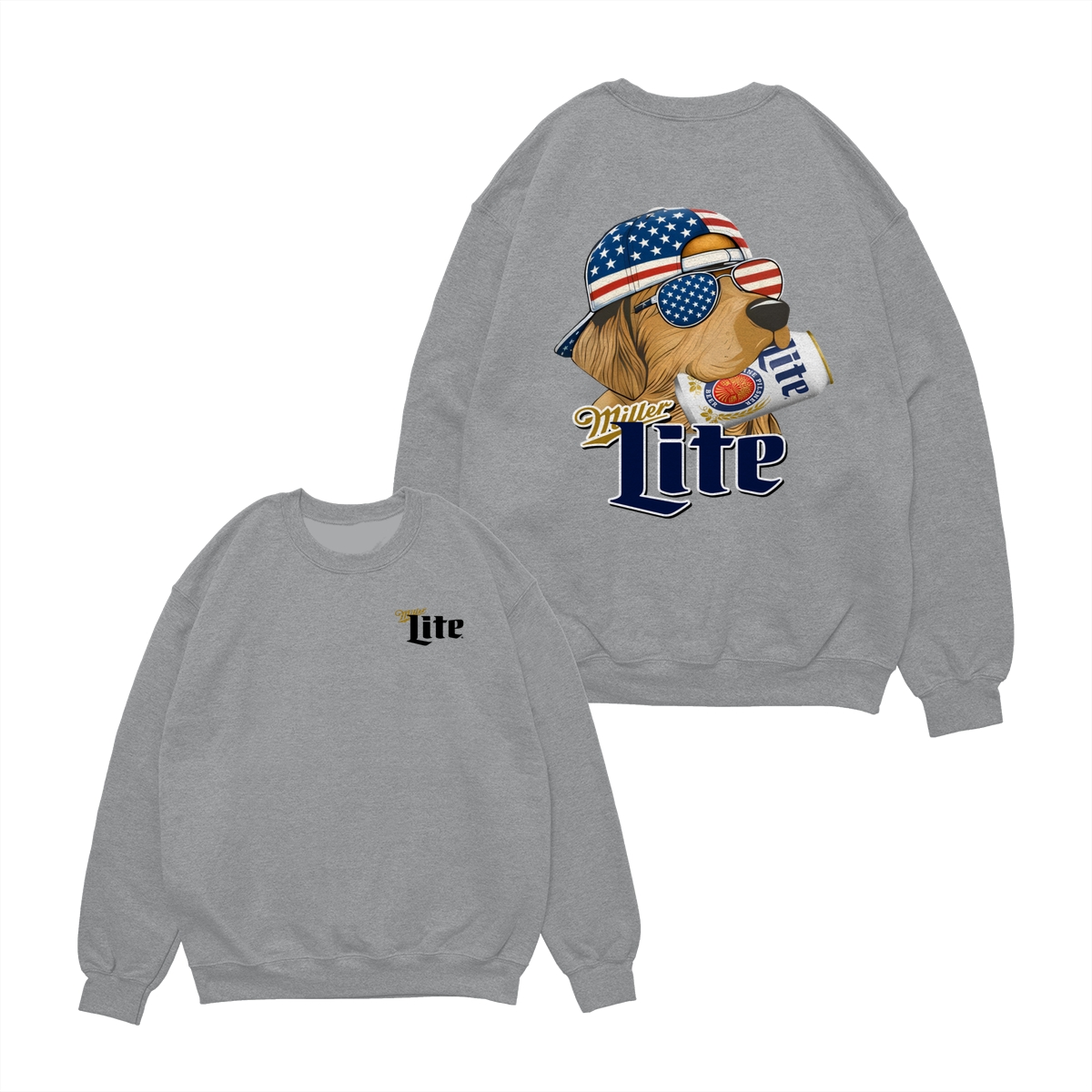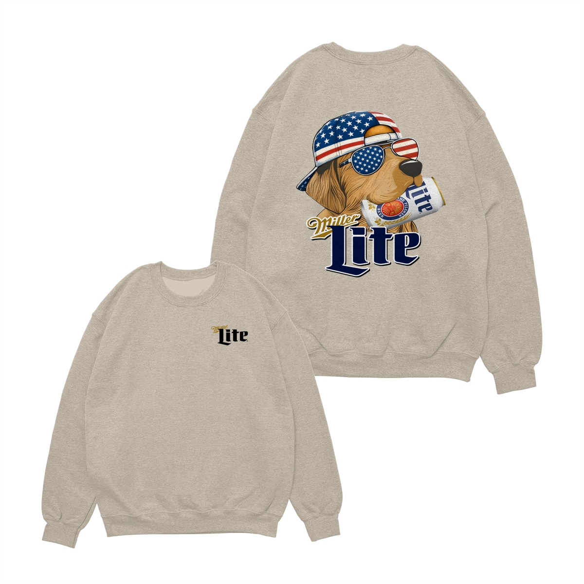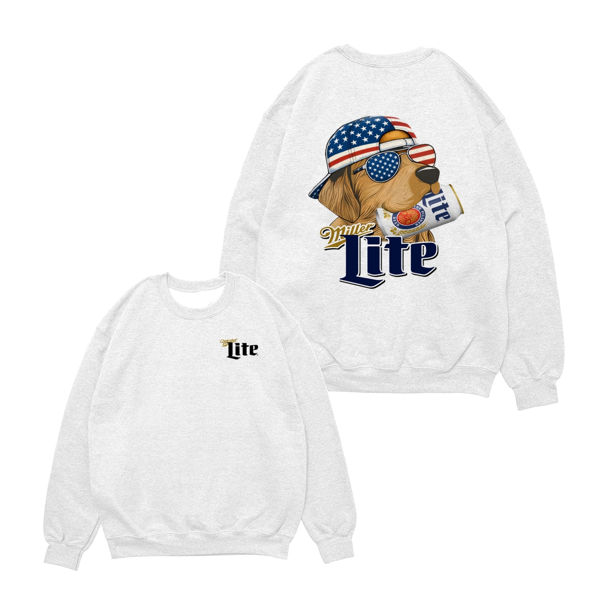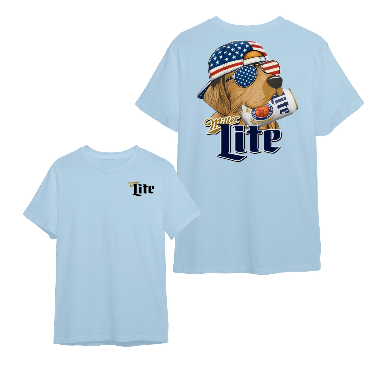 Miller-Lite Hunting Golden Dog Shirt, Miller-Lite 4th Of July Shirt, USA Flag, Unisex Classic Cotton Tee With 2 Side Graphic Print For Men, For Women