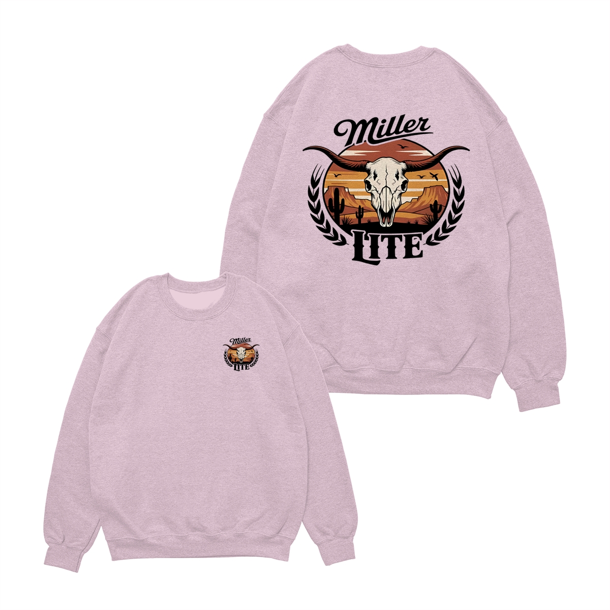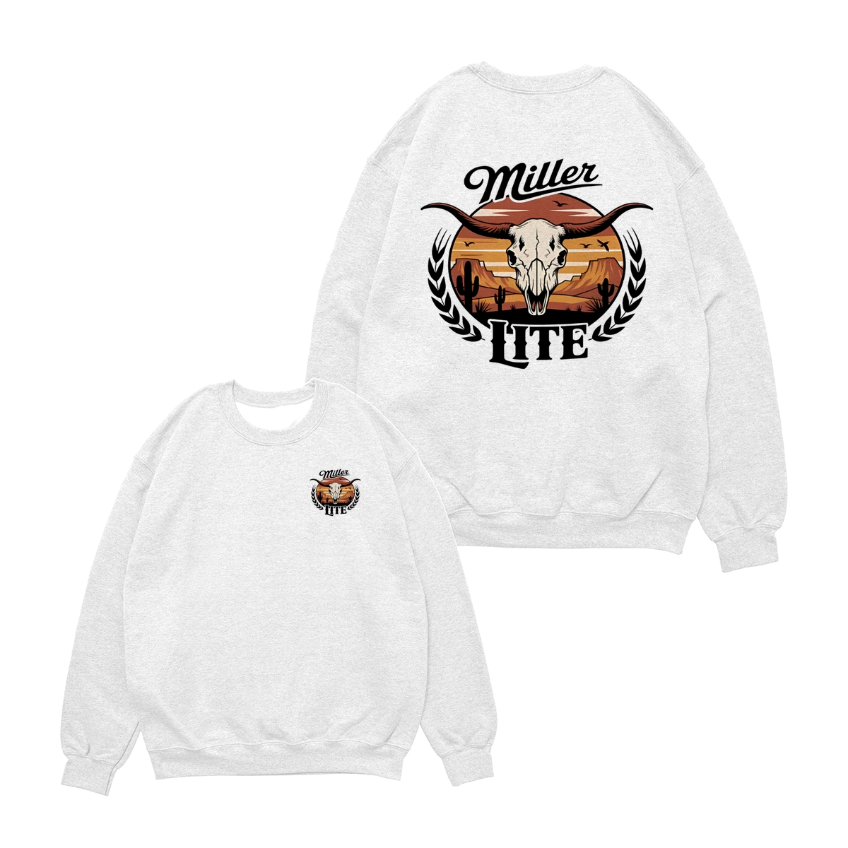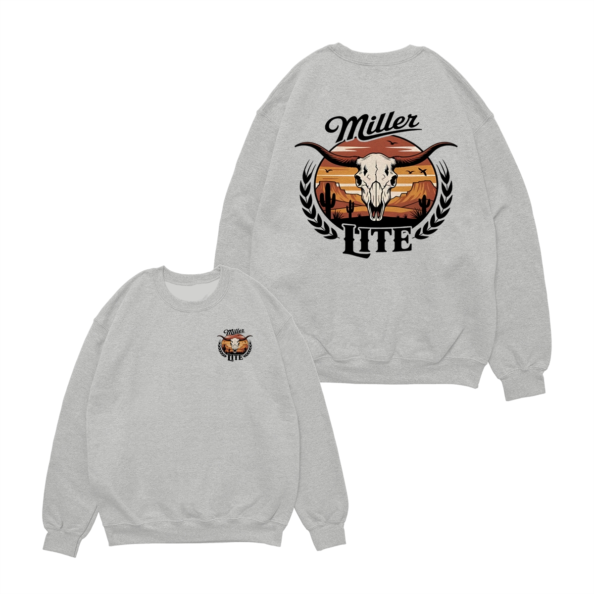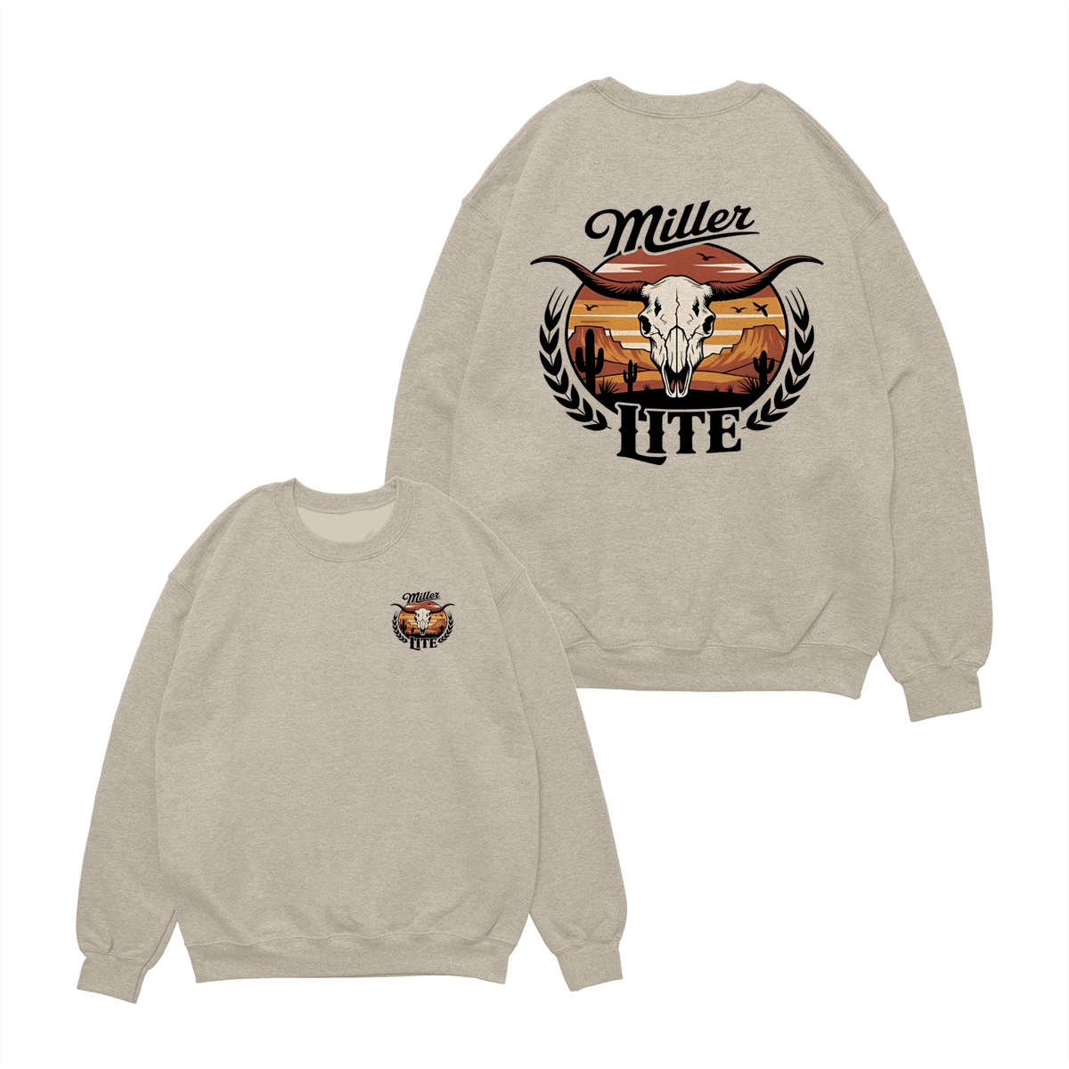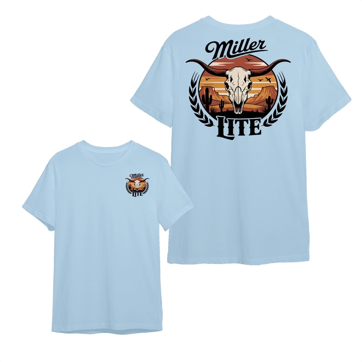 Miller-Lite Longhorn Skull Sunset T-Shirt – Vintage Desert Cactus Western Graphic Tee, Retro Rodeo Cowboy Beer Shirt, Gift for Miller-Lite Fans & Country Lifestyle