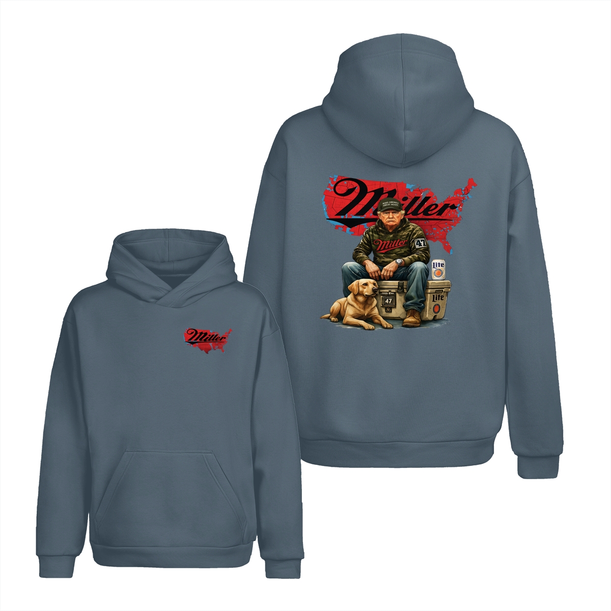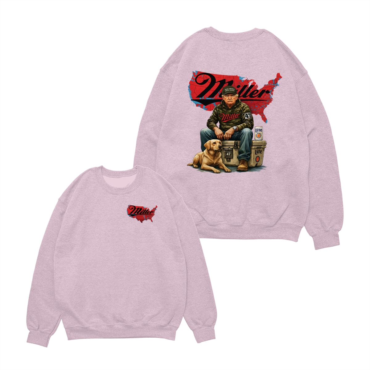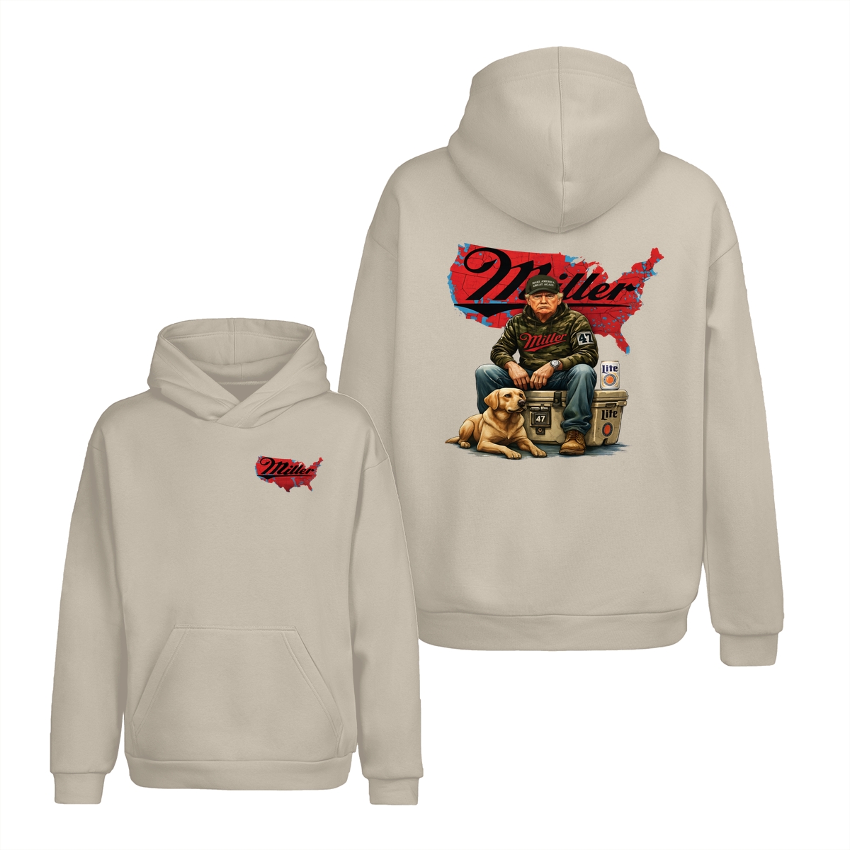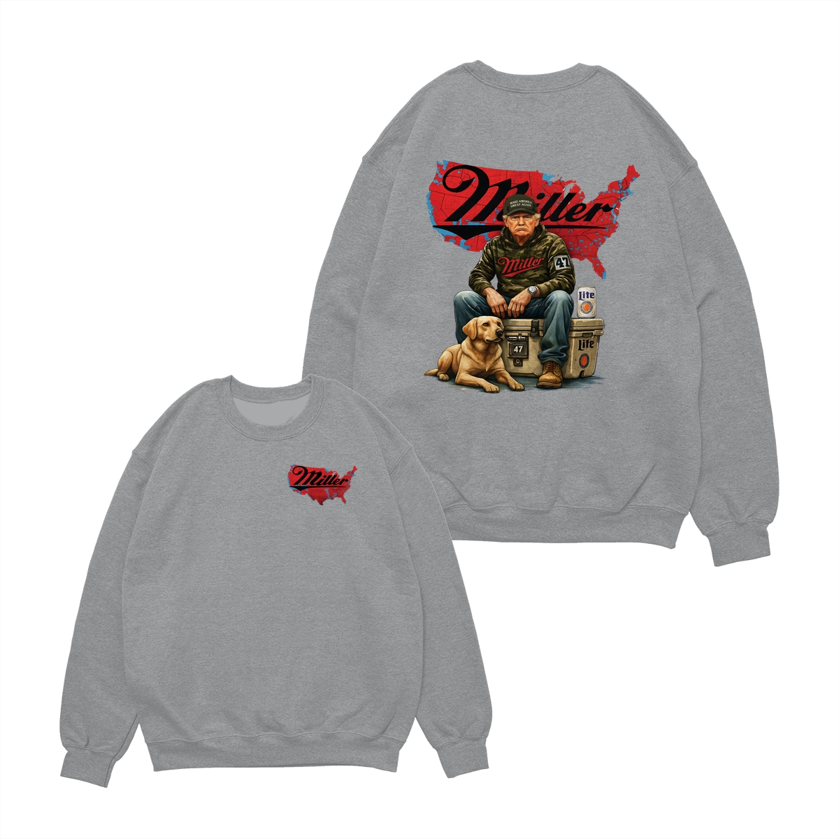 Miller Lite Man and Dog T-Shirt – Patriotic Beer Map Graphic, 2‑Sided Soft Cotton Blend Shirt, Country Lifestyle Apparel for Men & Women, Perfect American Beer Gift