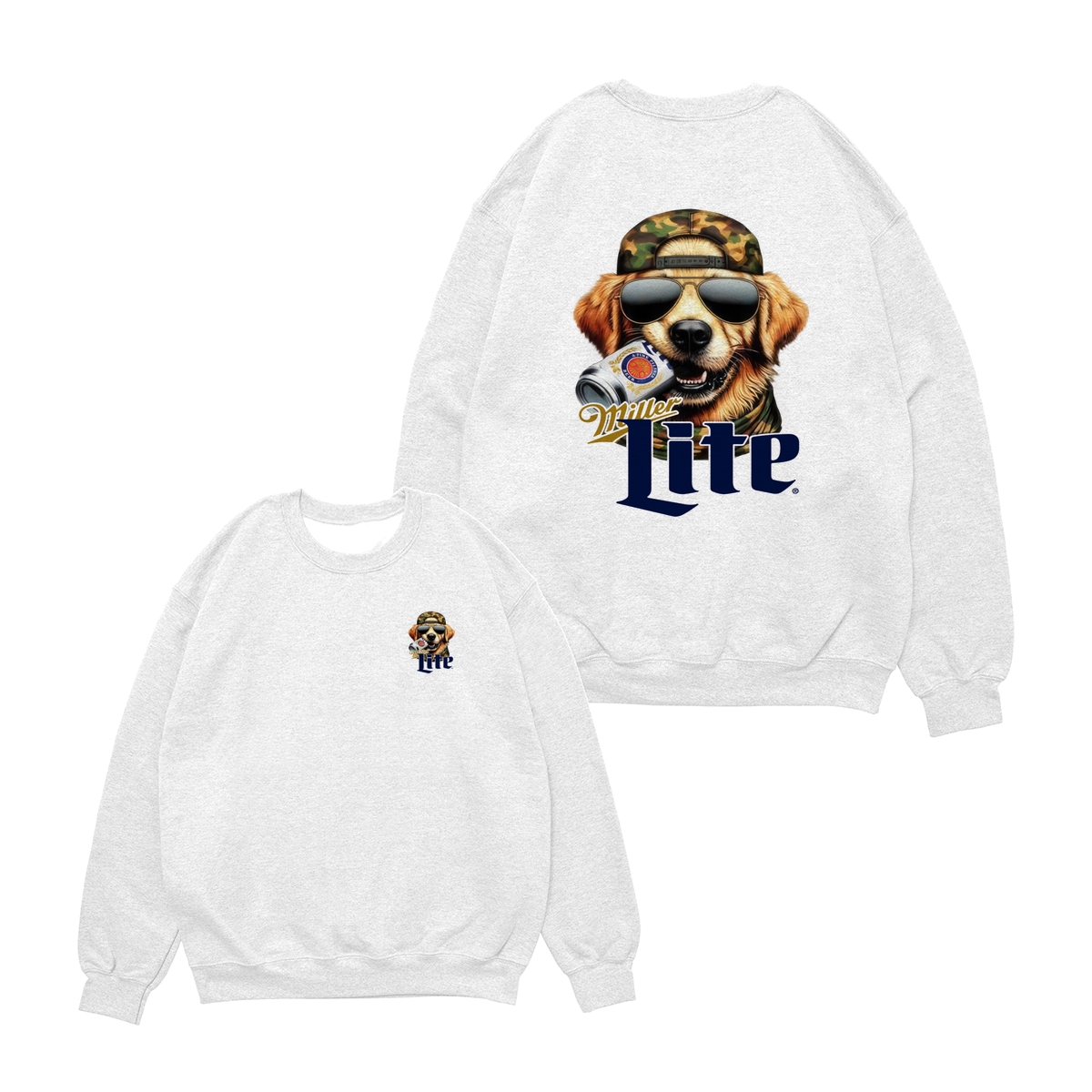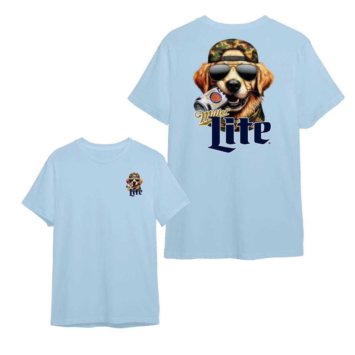 Miller-Lite T-Shirt – Cool Dog with Sunglasses and Beer Can Graphic, Unisex, Relaxed Fit, Short Sleeve, Machine Washable – Boyfriend Gift – Menswear – Streetwear