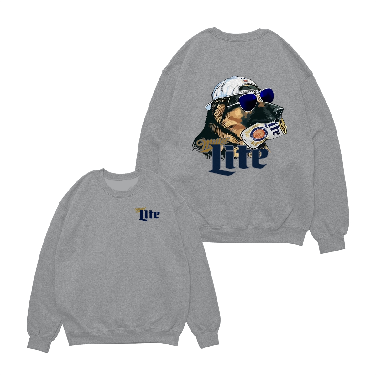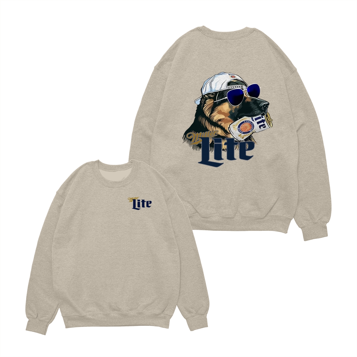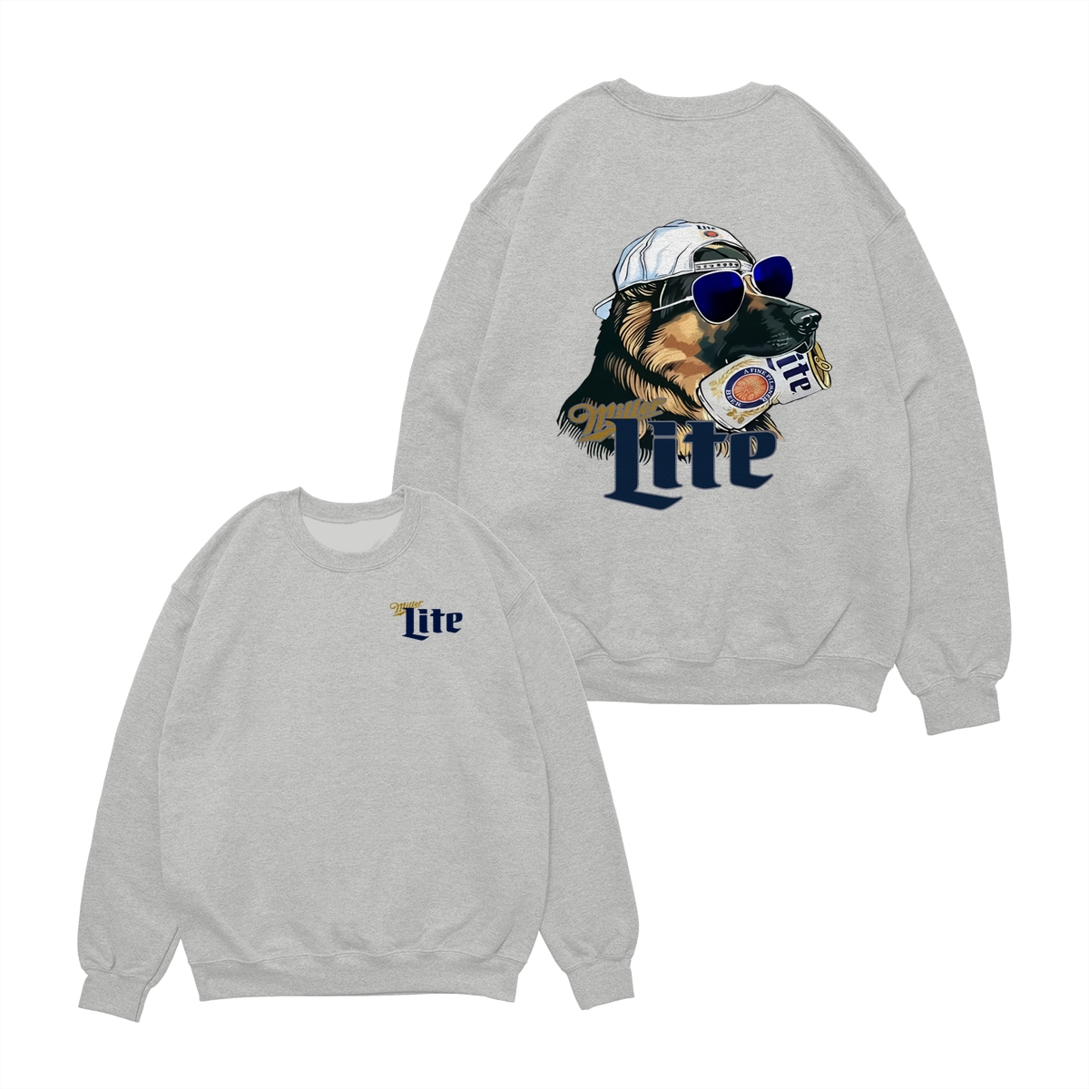 Miller-Lite T-Shirt – German Shepherd with Sunglasses & Beer Can Graphic, Cool Dog Design, Unisex, Relaxed Fit, Short Sleeve, Machine Washable – Boyfriend Gift – Menswear, Streetwear
