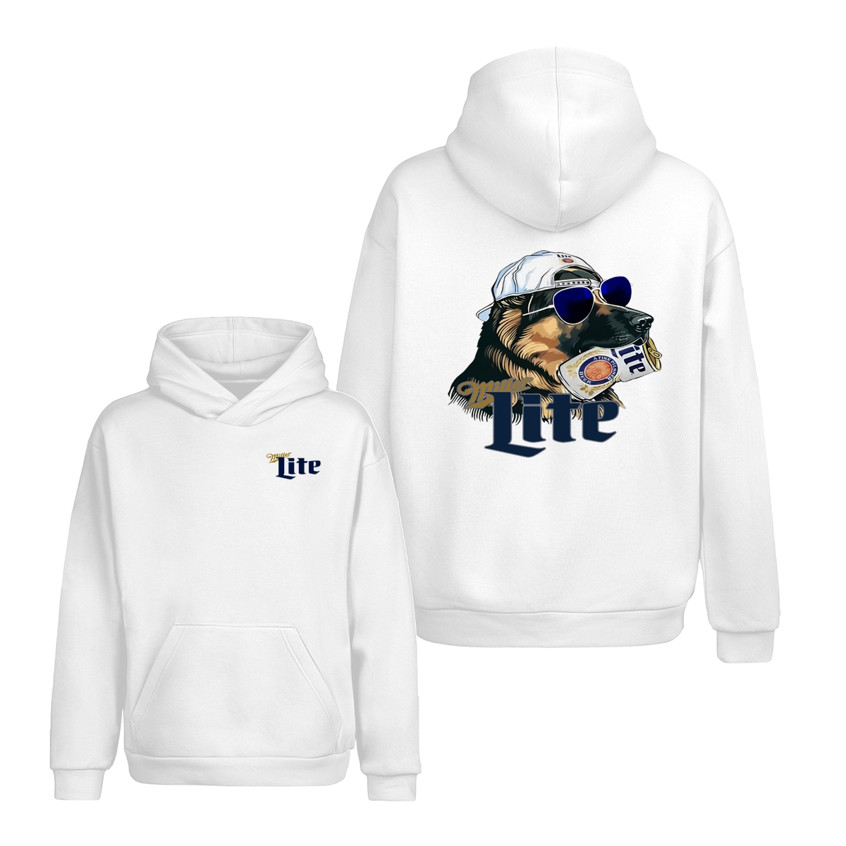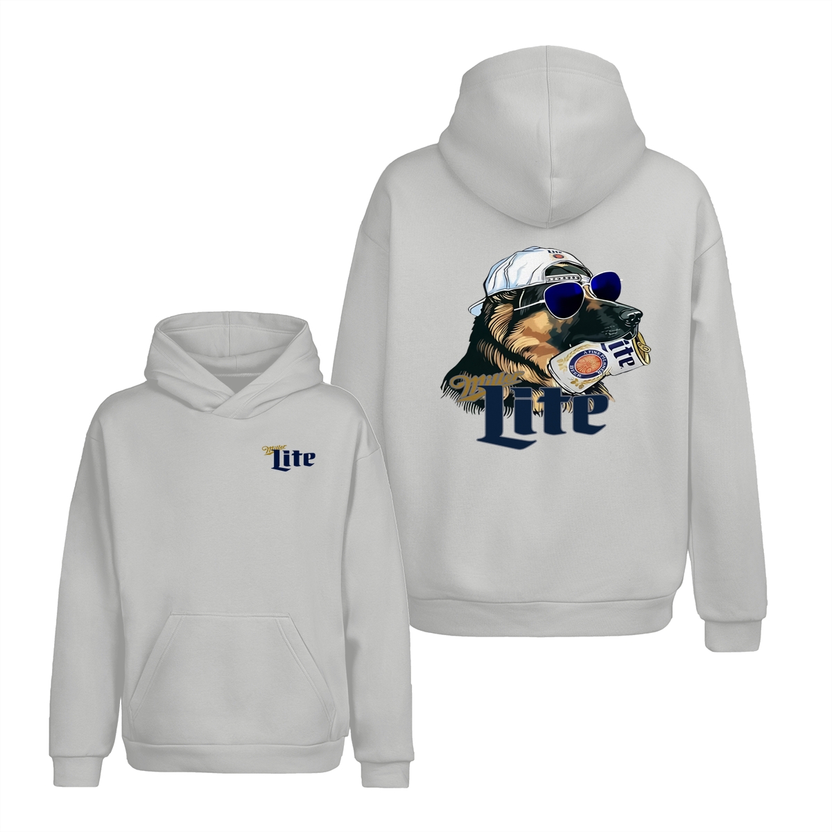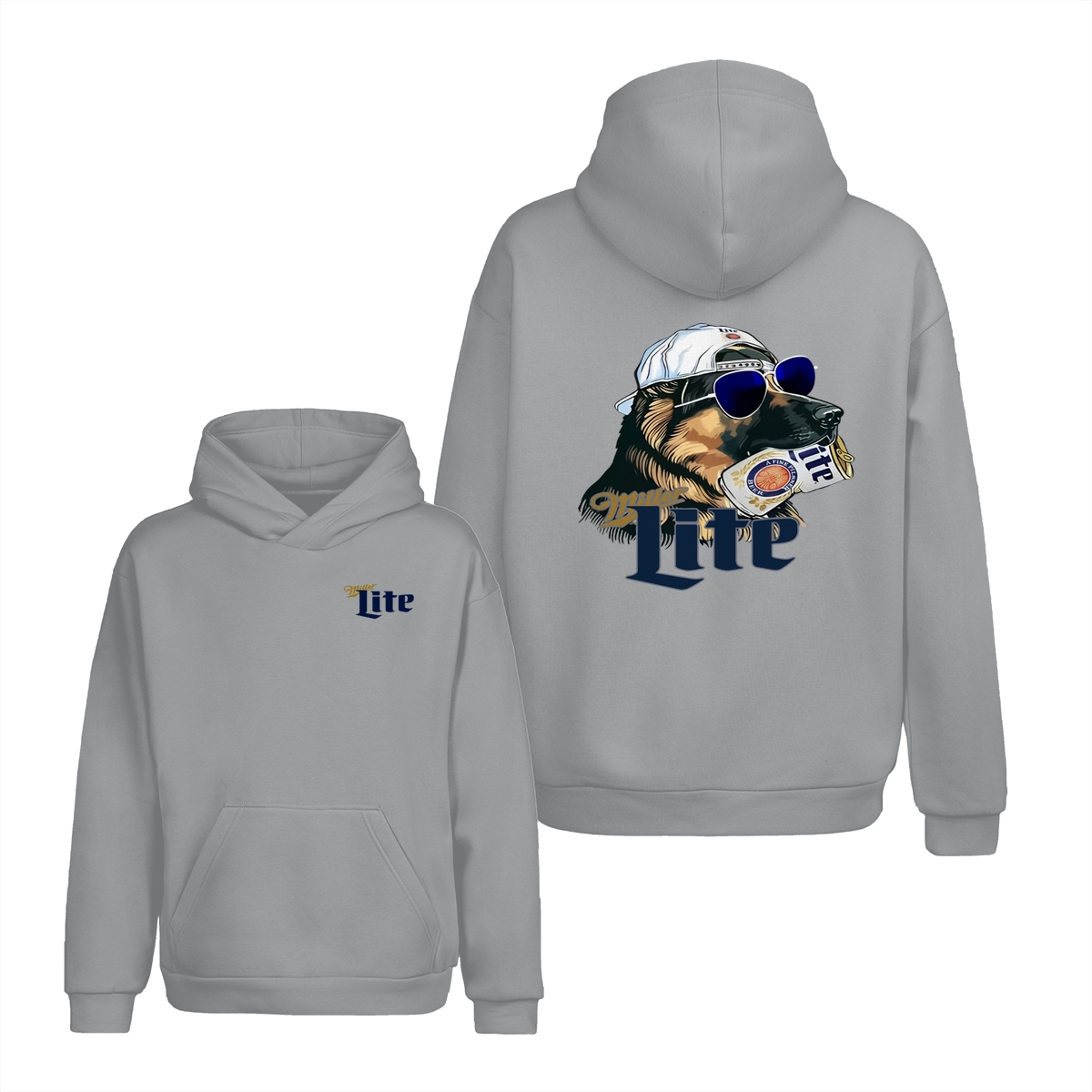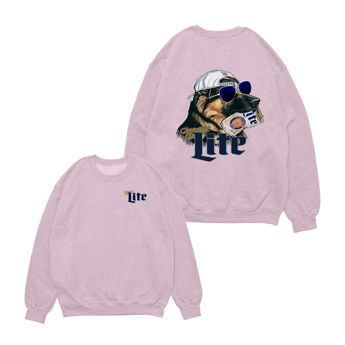 Miller-Lite T-Shirt – German Shepherd with Sunglasses & Beer Can Graphic, Cool Dog Design, Unisex, Relaxed Fit, Short Sleeve, Machine Washable – Boyfriend Gift – Menswear, Streetwear