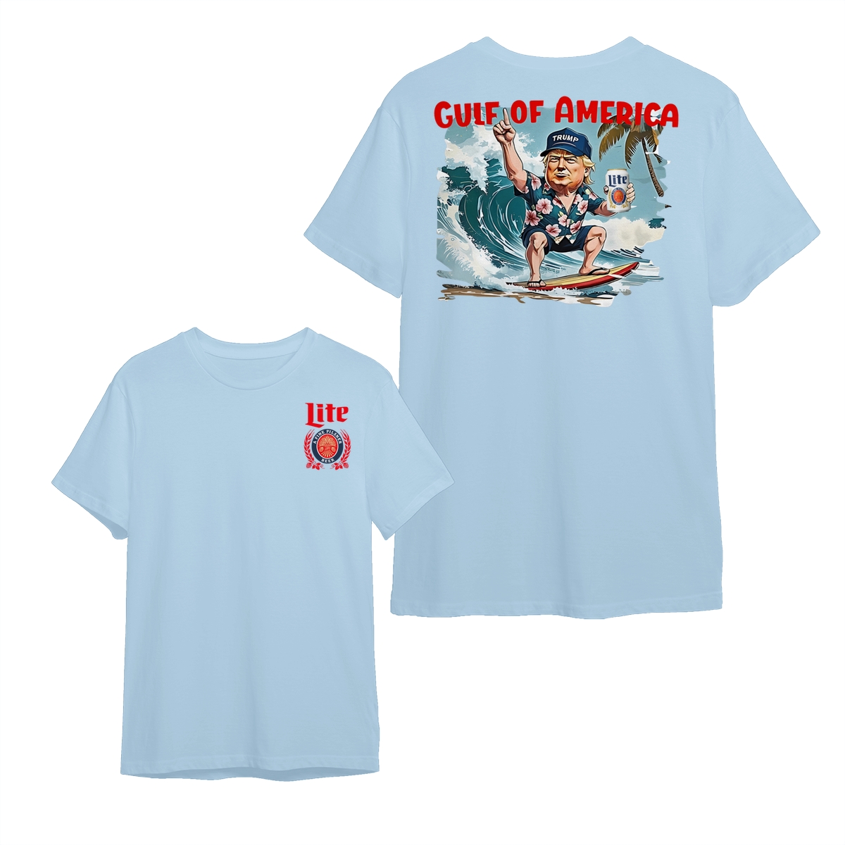 Miller-Lite T-Shirt – Gulf of America Surf Graphic, Vintage Beer Lovers Tee, Classic Summer Beachwear