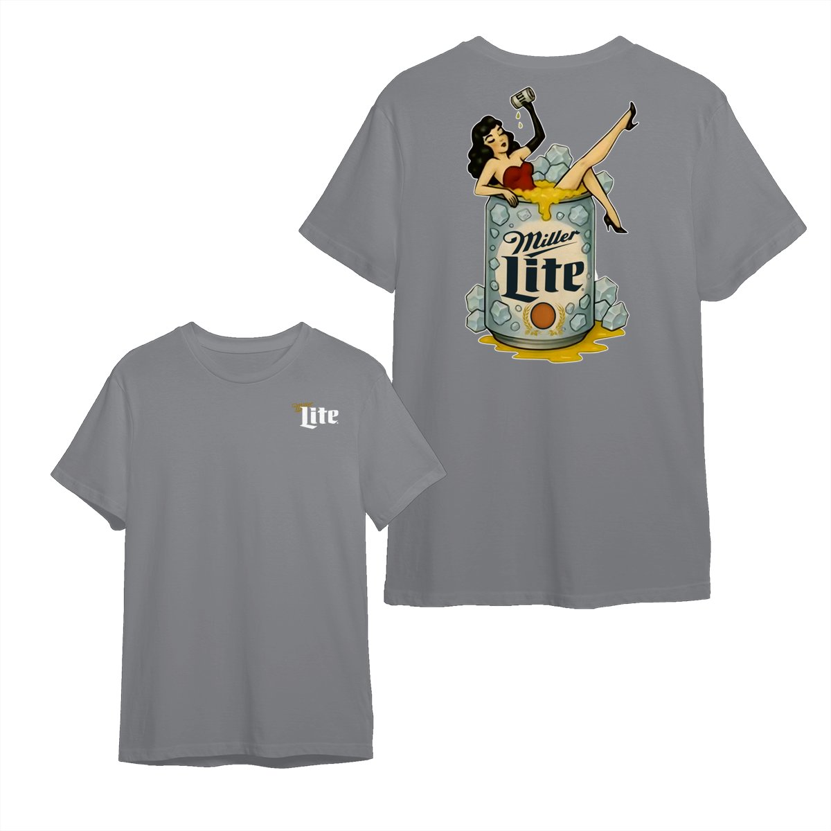 Miller-Lite T-Shirt, “Pin-Up Girl in Beer Can” Graphic, Fun & Playful Unisex Tee for Beer Lovers, Funny Drinking Casual Cotton Top, 100% Cotton Perfect Gift For Menswear – Womenswear Graphic T-Shirt Tee Cotton