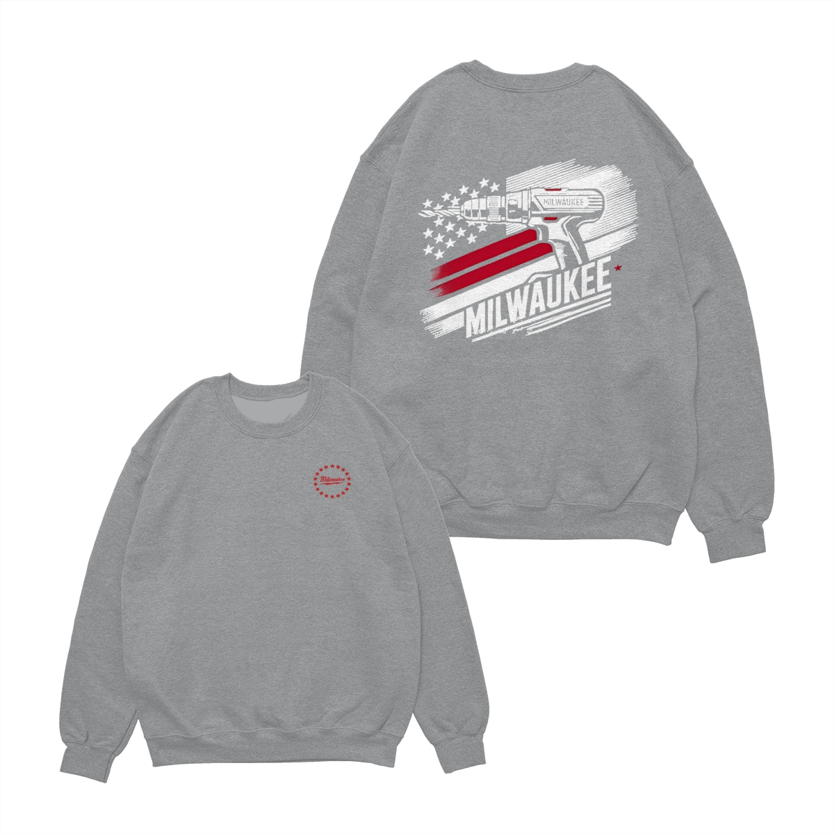 Milwaukee Tool T-Shirt – Bold Graphic Tee with Power Drill Illustration and American Flag Accents, Gift for Dad, Relaxed Fit, Unisex, Casual Wear, Short Sleeve – Men Gifts – Menswear, Top, Streetwear