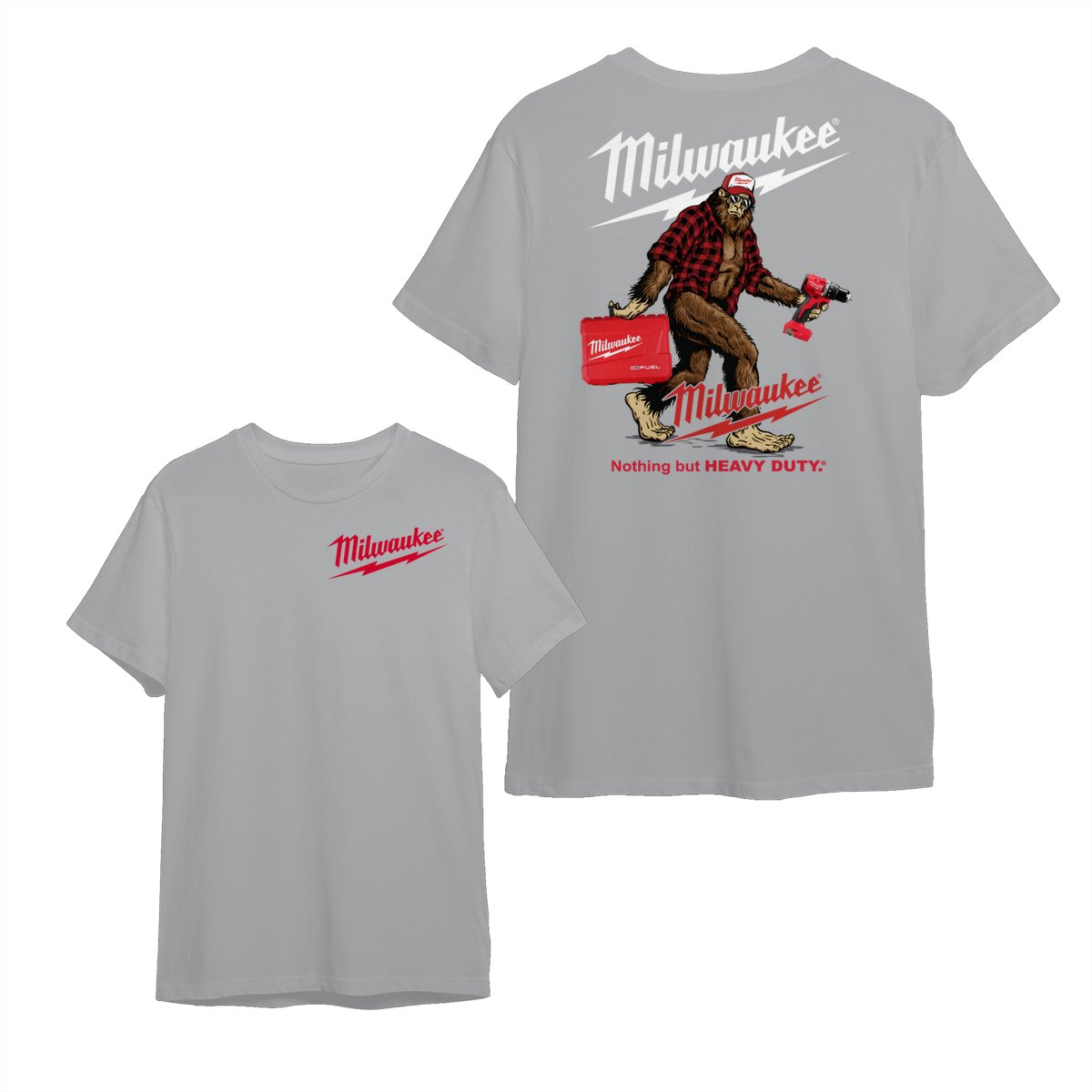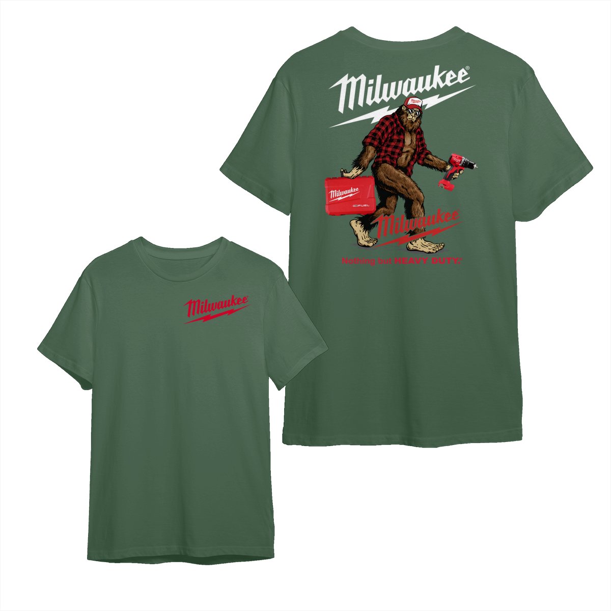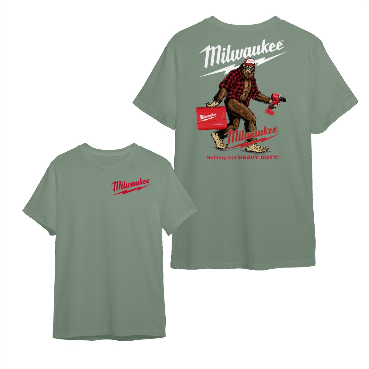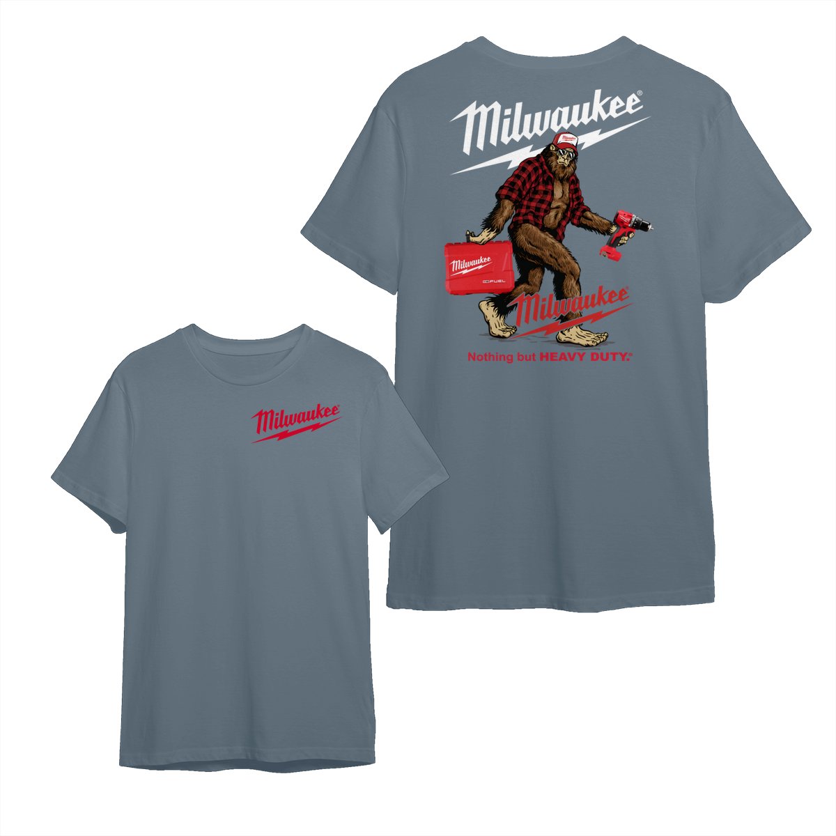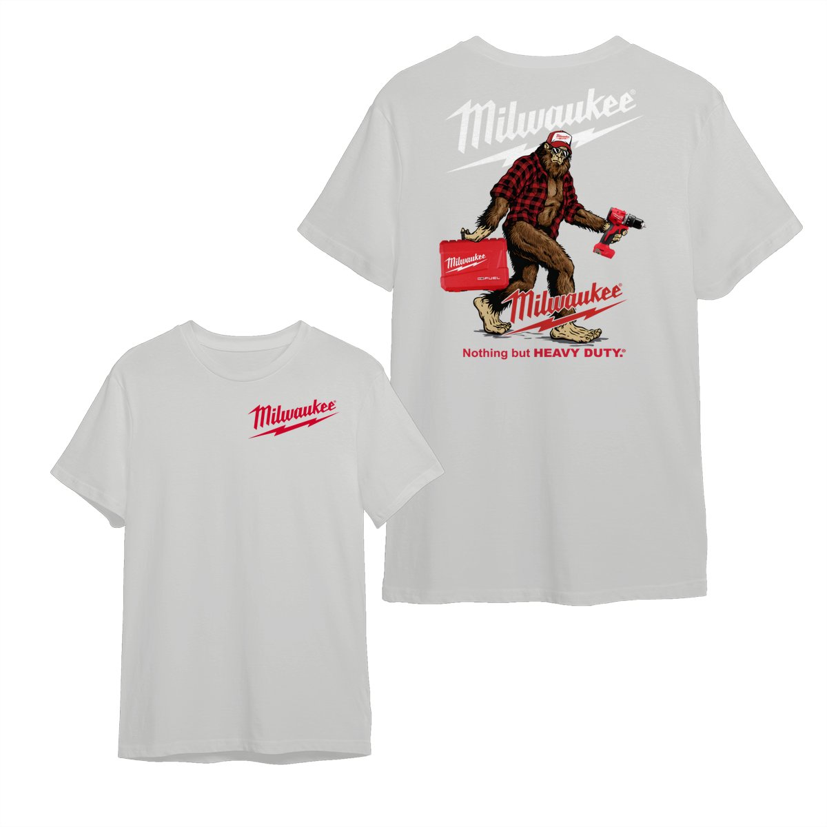 Milwaukee Tools Bigfoot With Drilling Machine 2 Sided Unisex Tee – Halloween Character Graphic Cotton Unisex Shirt
