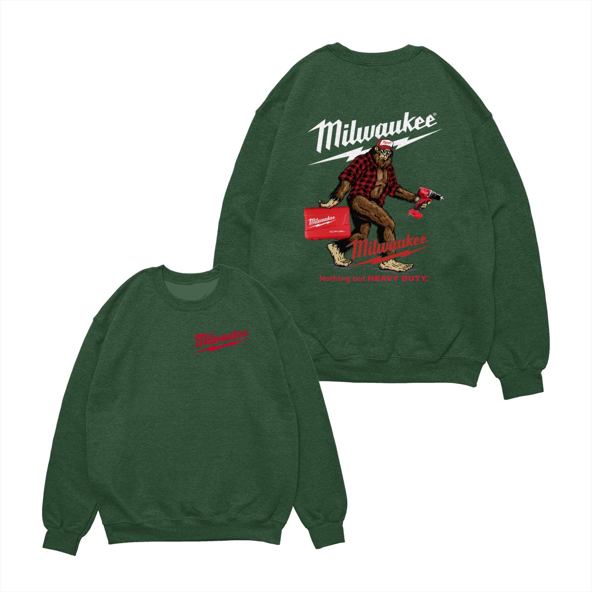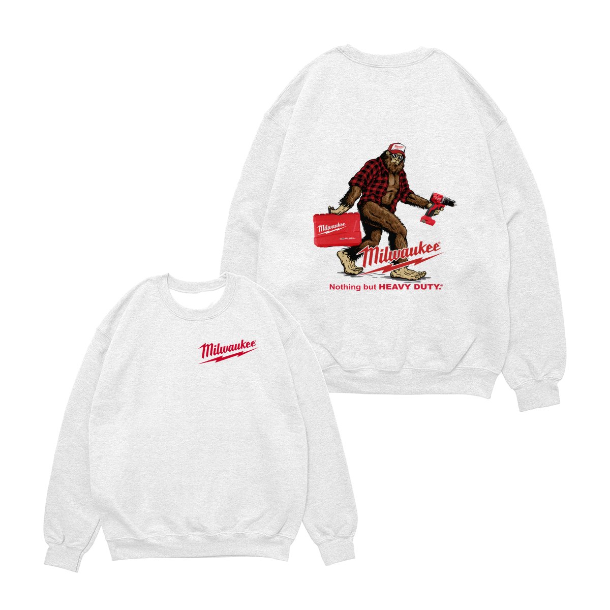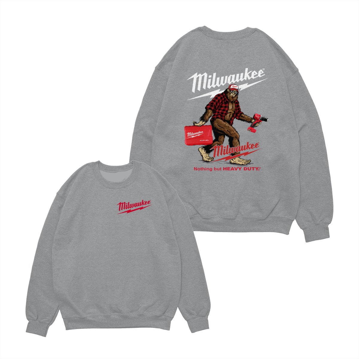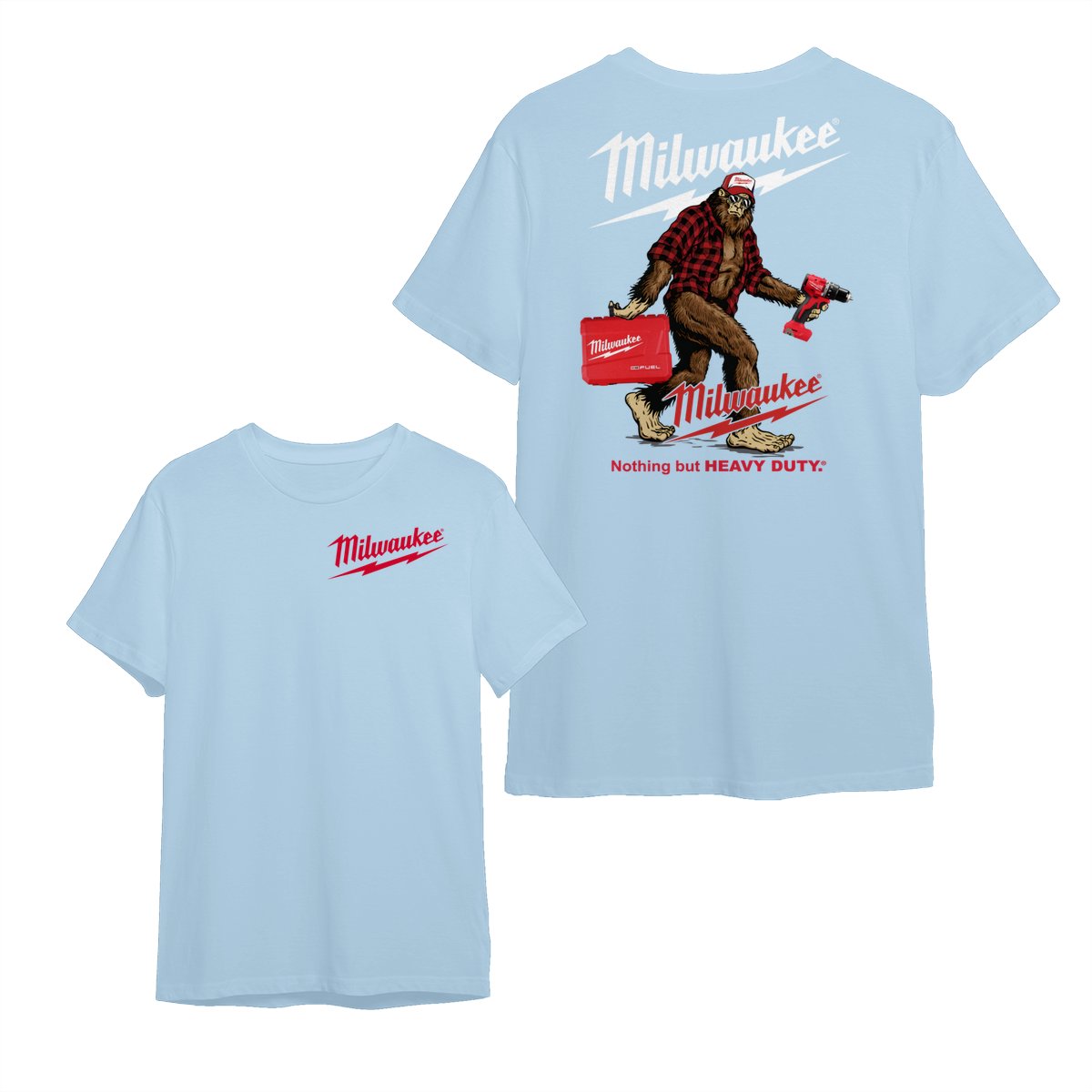 Milwaukee Tools Bigfoot With Drilling Machine 2 Sided Unisex Tee – Halloween Character Graphic Cotton Unisex Shirt
