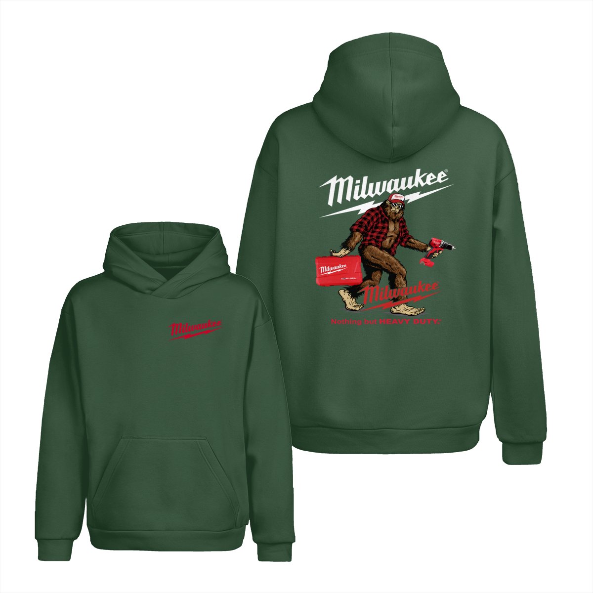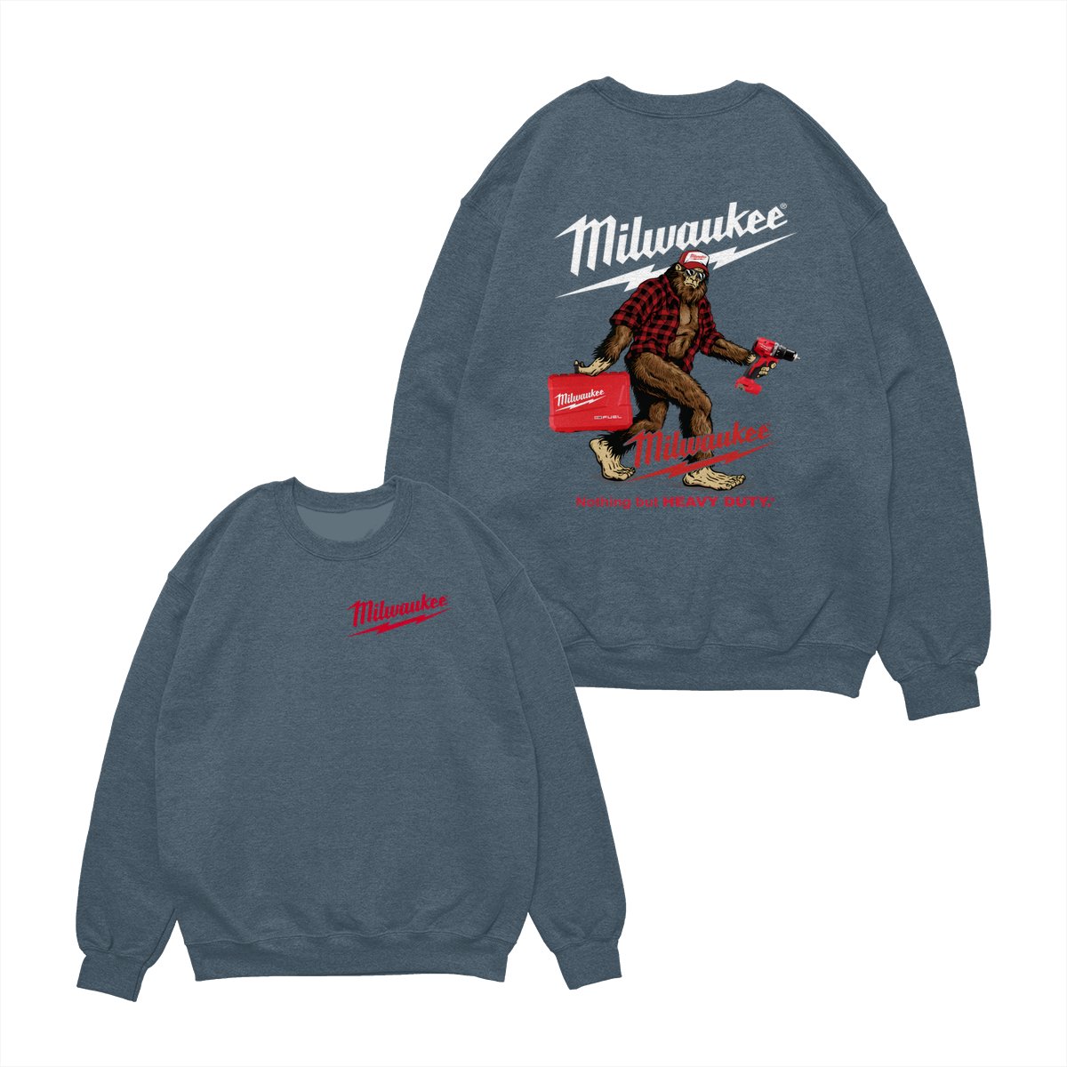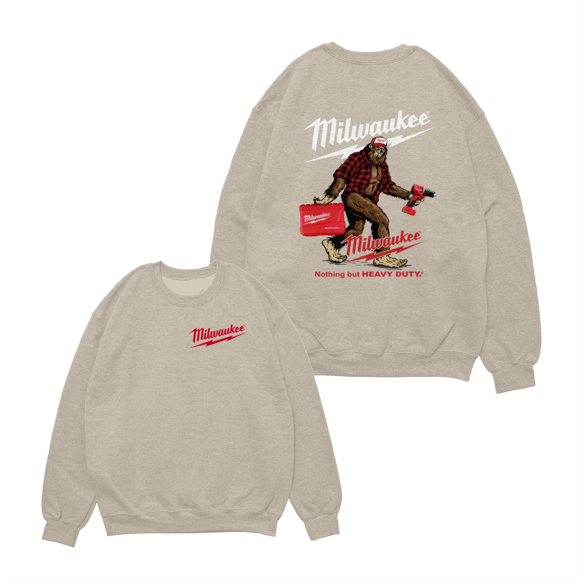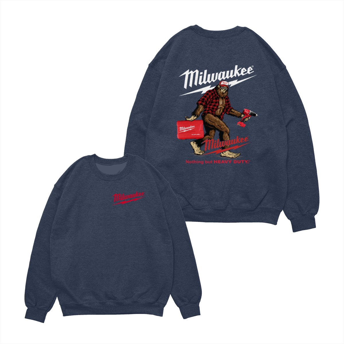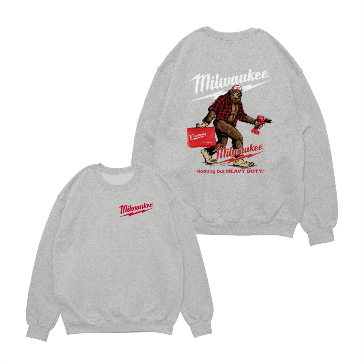 Milwaukee Tools Bigfoot With Drilling Machine 2 Sided Unisex Tee – Halloween Character Graphic Cotton Unisex Shirt
