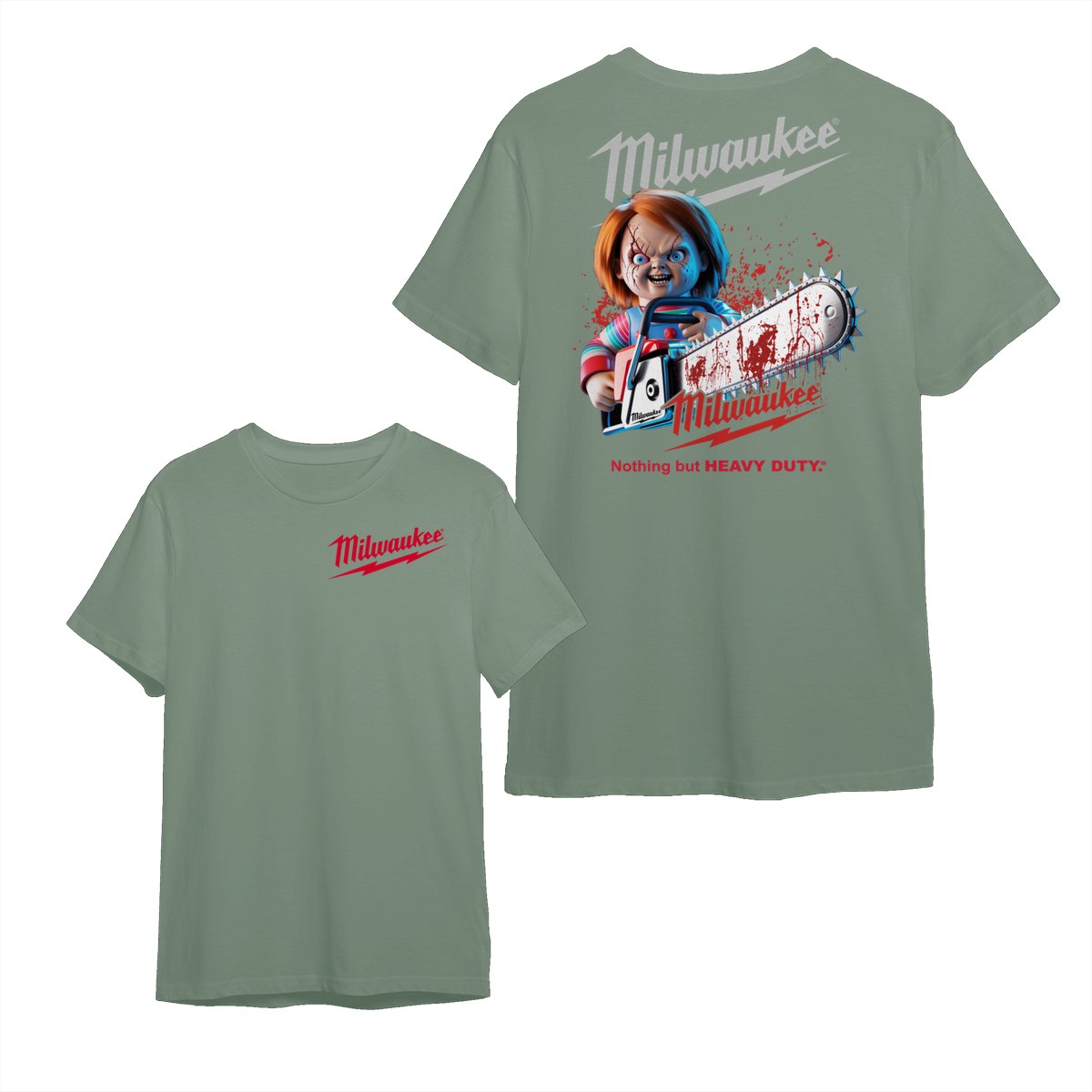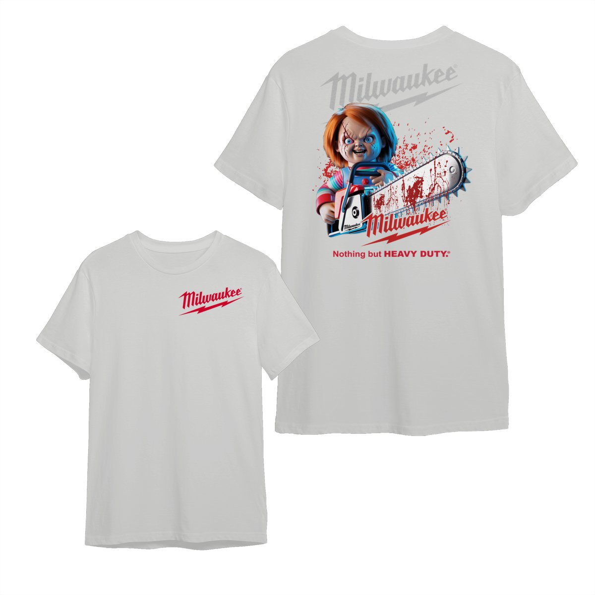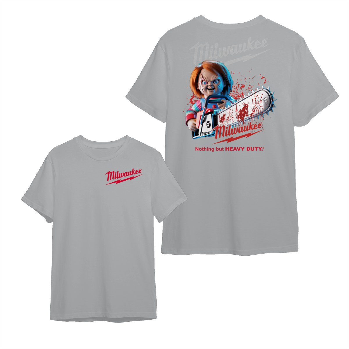 Milwaukee Tools Chucky With Chainsaw 2 Sided Unisex Tee – Halloween Character Graphic Cotton Unisex Shirt