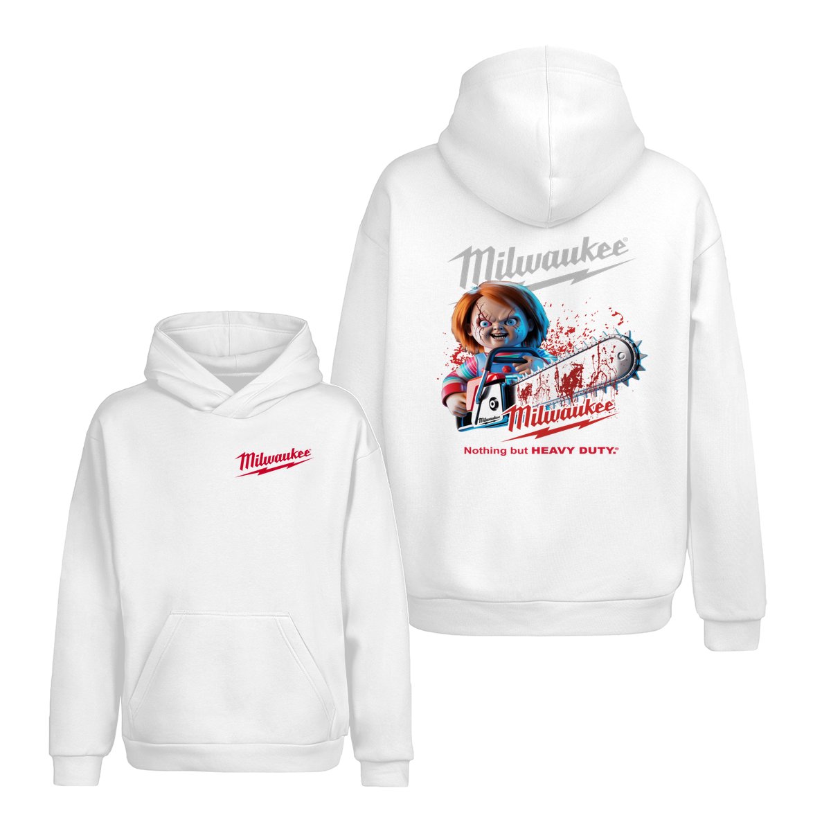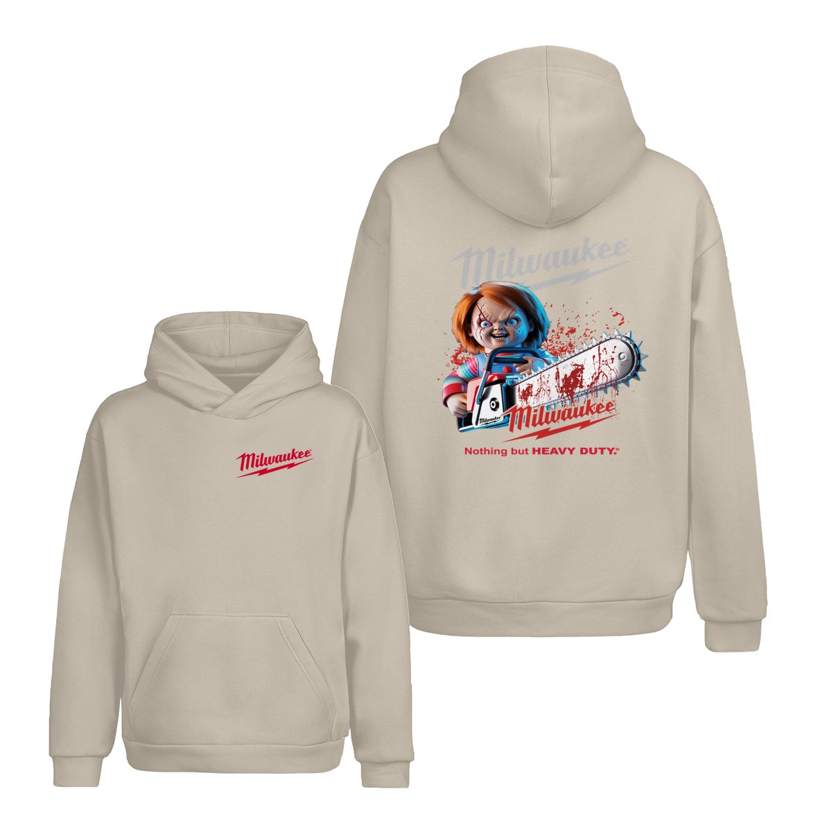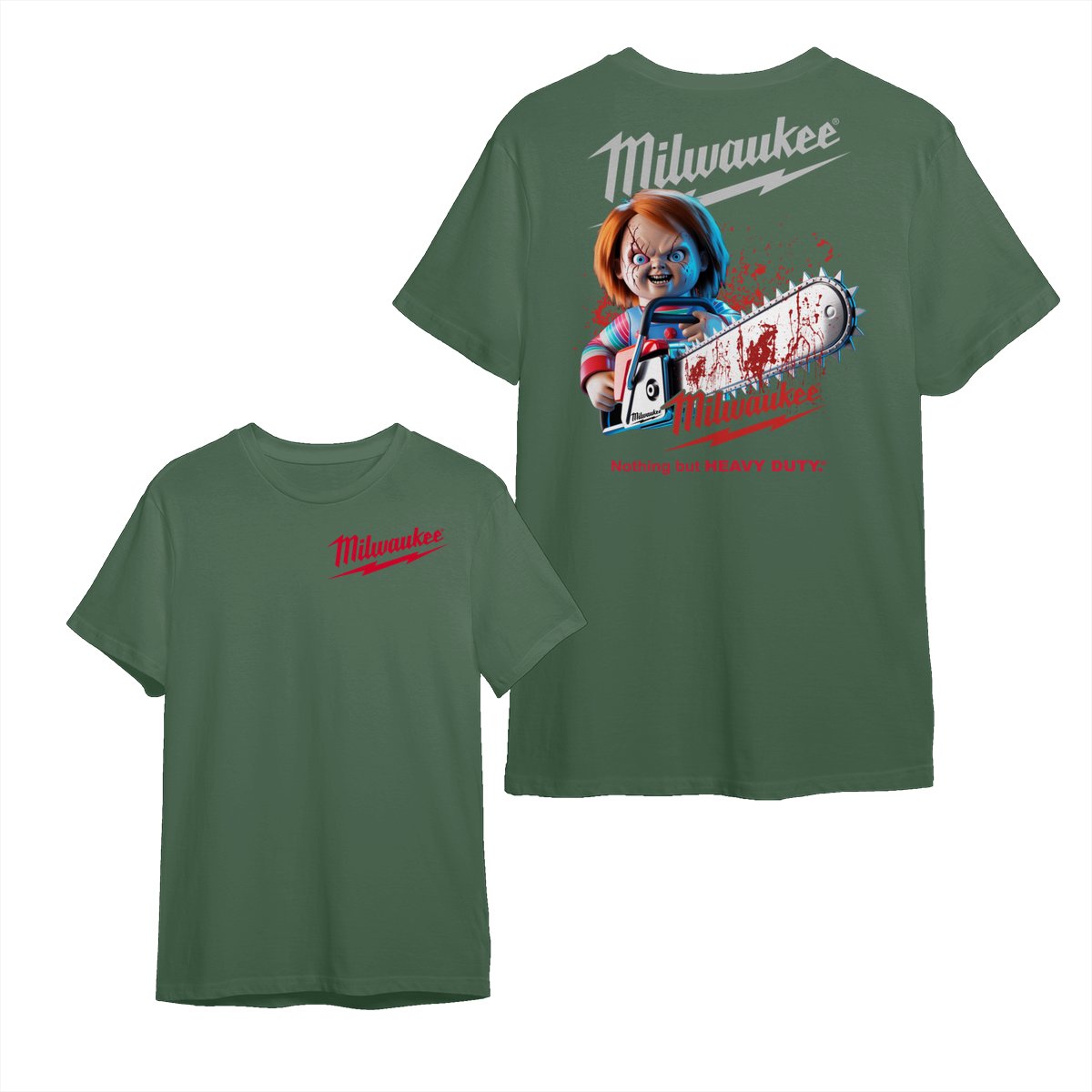 Milwaukee Tools Chucky With Chainsaw 2 Sided Unisex Tee – Halloween Character Graphic Cotton Unisex Shirt
