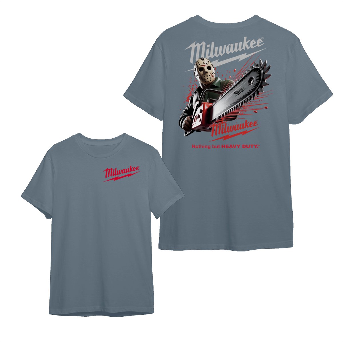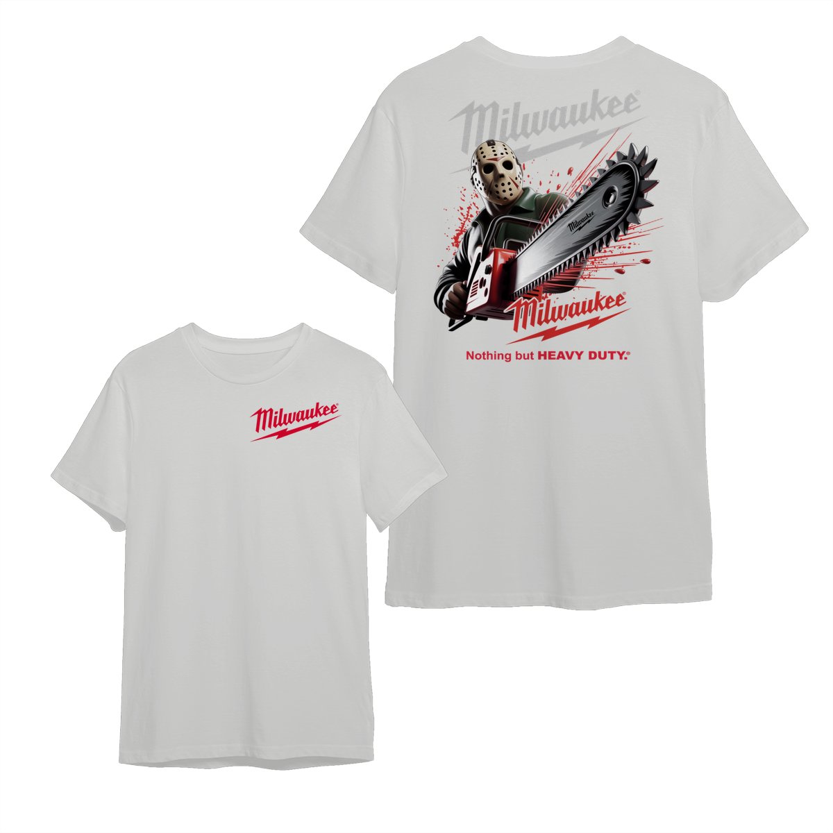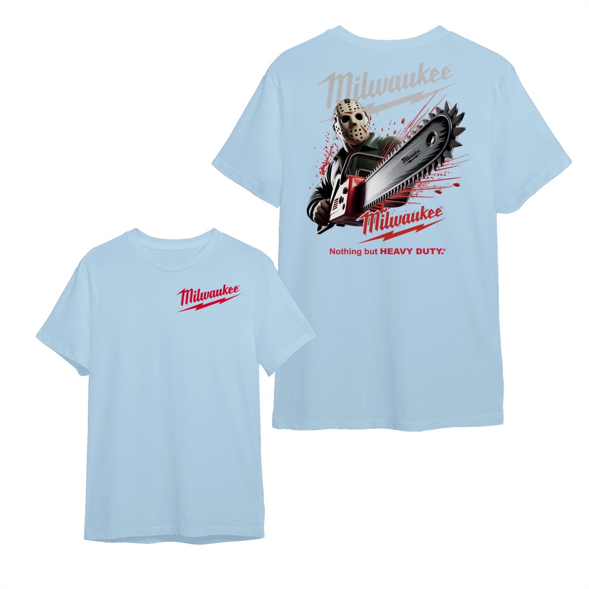 Milwaukee Tools Jason With Chainsaw 2 Sided Unisex Tee – Halloween Series Killer Character Graphic Cotton Unisex Shirt