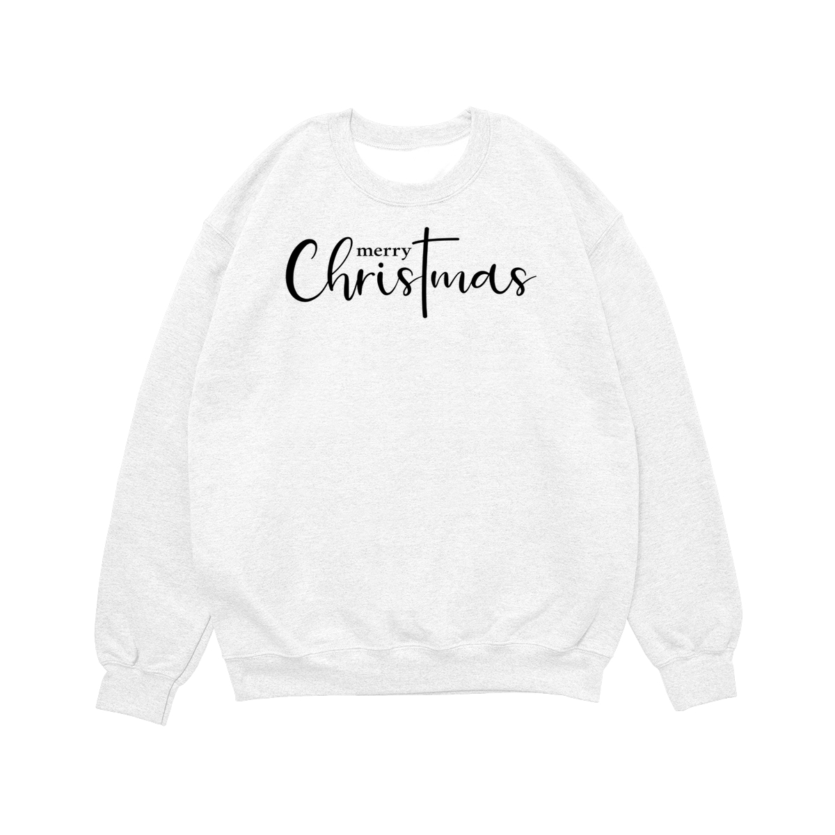 Minimalist Merry Christmas Sweatshirt, Simple Holiday Pullover with Elegant Script Design, Cozy White Winter Sweater for Women & Men, Classic Xmas Outfit, Perfect Casual Holiday Party Gift Top