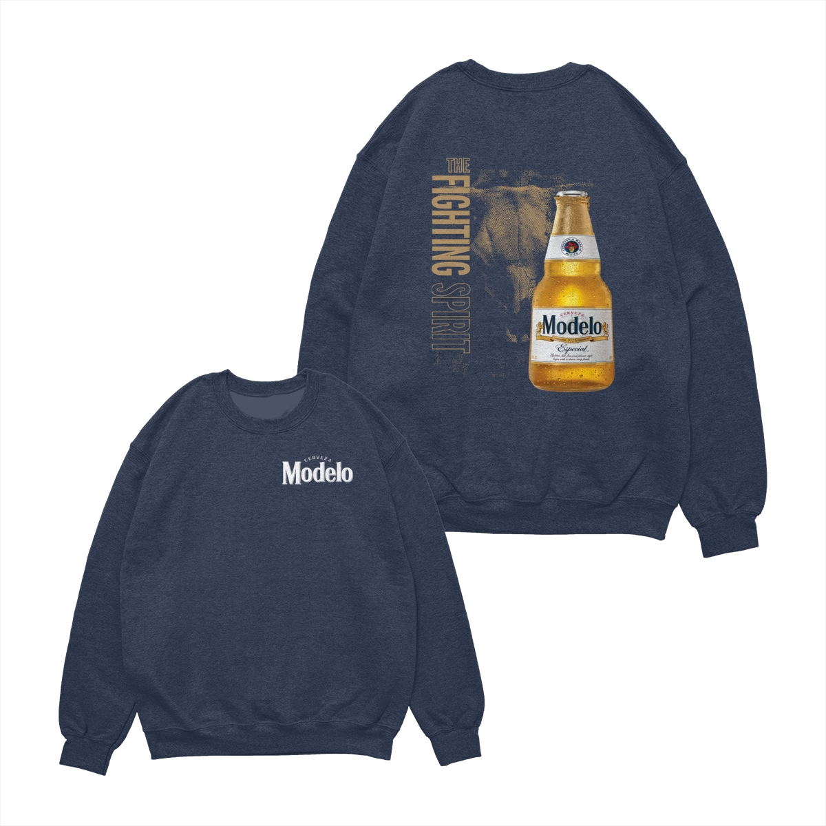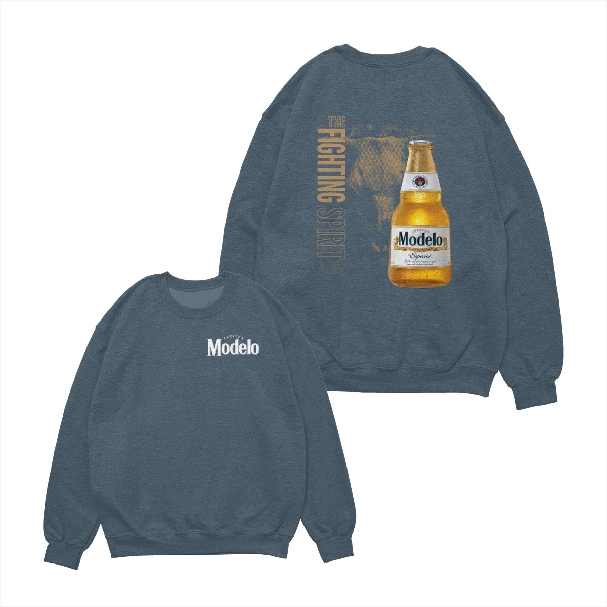 Modelo Beer Hoodie – Fighting Spirit Graphic Hoodies, Streetwear Vibes, Trendy Graphic Tees 2025 Menswear Sweatshirt, Casual Style, Modelo Long Sleeve
